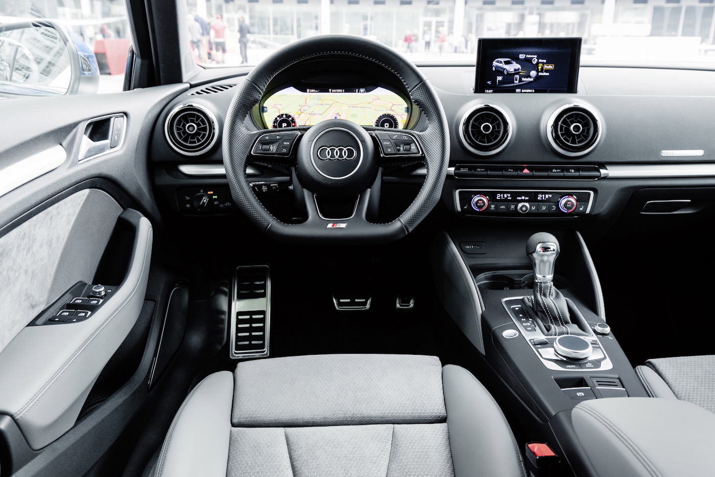 V potniški kabini je največja sprememba na instrumentni plošči, saj je sedaj tudi A3 dobil virtualno instrumentno ploščo v obliki 12,3 palčnega zaslona, na katerem voznik lahko z enostavnim pritiskom stikala na volanu prilagaja prikazovanje raznih podatkov svojim željam. Virtualna instrumentna plošča je del serijske opreme – klasičnih analognih merilnikov ne ponujajo več, na voljo pa je v različnih resolucijah glede na izbrano opremo: najboljša resolucija je v povezavi z MMI navigacijskim sistemom. Ob tem ima A3 še pogrezljiv 7-palčni zaslon na sredini armaturne plošče.