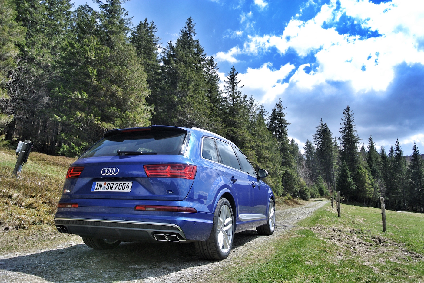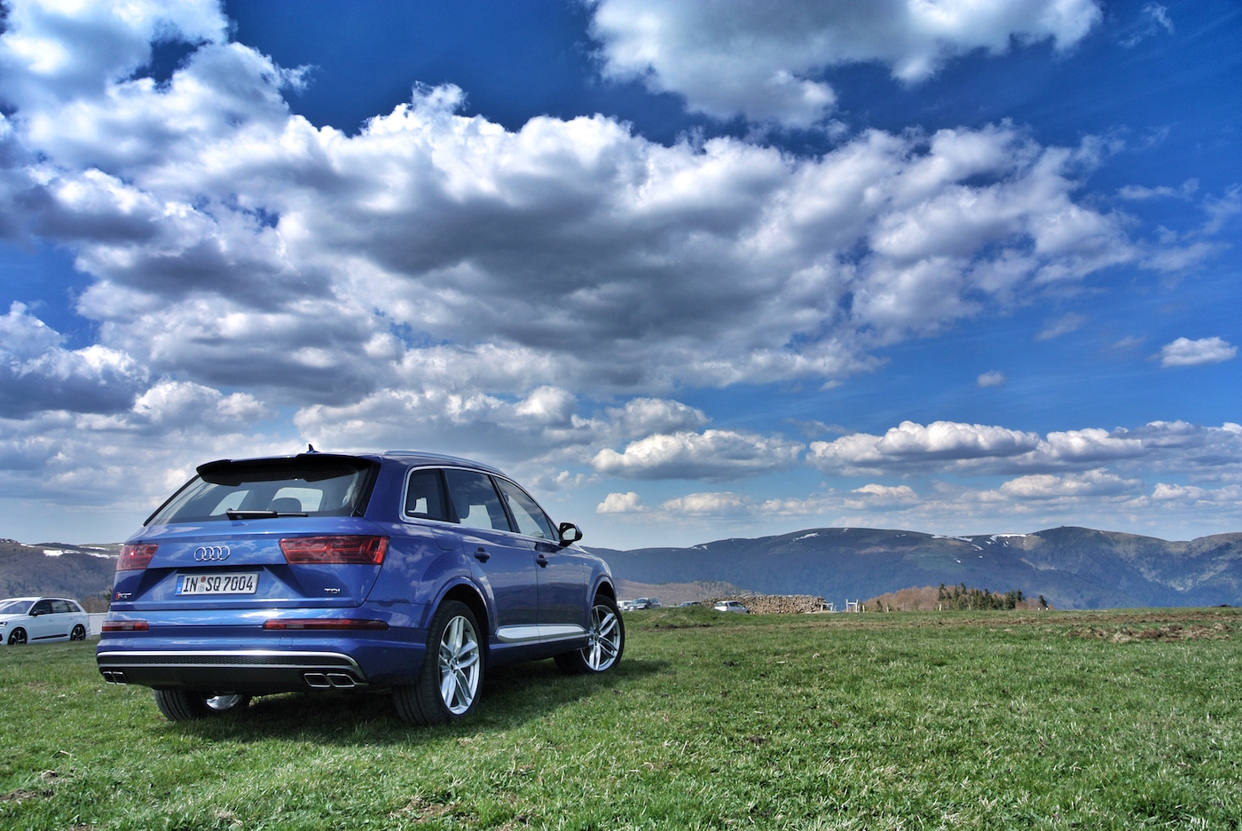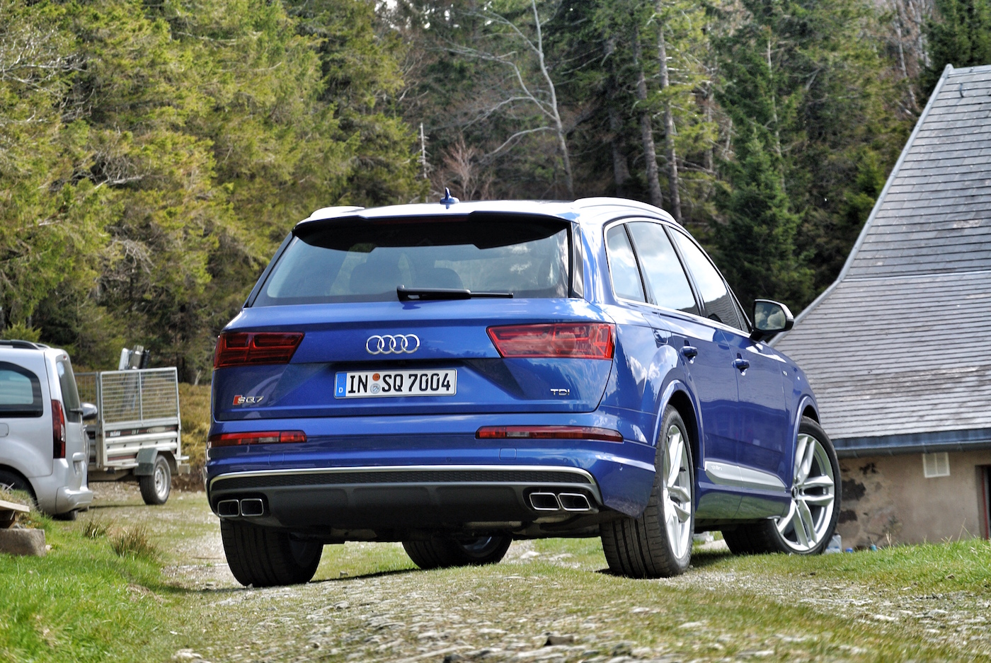 Za vgradnjo dodatnega električnega polnilnika so morali pri Audiju v Q7 vgraditi dodaten električni sistem z napetostjo 48 voltov in z dodatnim litij-ionskim akumulatorjem, saj klasična 12-voltna napeljava ne bi zdržala dodatnih obremenitev – večja napetost omogoča manj tokovnih obremenitev in s tem tudi manj izgub v električnem sistemu. Rezultat so izjemnne zmogljivosti: SQ7 do 100 km/h pospeši v le 4,8 sekunde, največja hitrost je omejena na 250 km/h. Ob tem pri Audiju zatrjujejo, da avto porabi le 7,2 litra plinskega olja na 100 km ( v kombiniranem načinu). Občutki izza volana pritrjujejo tehničnim podatkom; SQ7 je izjemno hiter avto, ki pa kljub odličnim zavoram, elektromehaničnemu prilagodljivemu stabilizatorju, aktivnemu vektorskemu diferencialu med zadnjima kolesoma, aktivnemu blaženju in štirikolesnemu volanu zahteva trezno glavo in zavedanje, da avto tehta 2,3 tone.