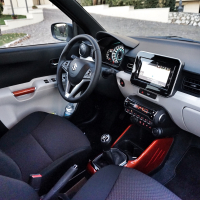 Podobno mladostna kot zunanjost je tudi ignisova armaturna plošča; obdaja jo trda plastika, a z barvnimi vložki prav nič monotona ali dolgočasna. V boljših paketih opreme bo na voljo preskušen Suzukijev multimedijski sistem z na dotik občutljivim zaslonom. Vidljivost iz ignisa je ob majhnih zunanjih merah odlična, volanski obroč je nastavljiv le po višini, položaj za volanom in udobje spredaj pa vseeno dobra.