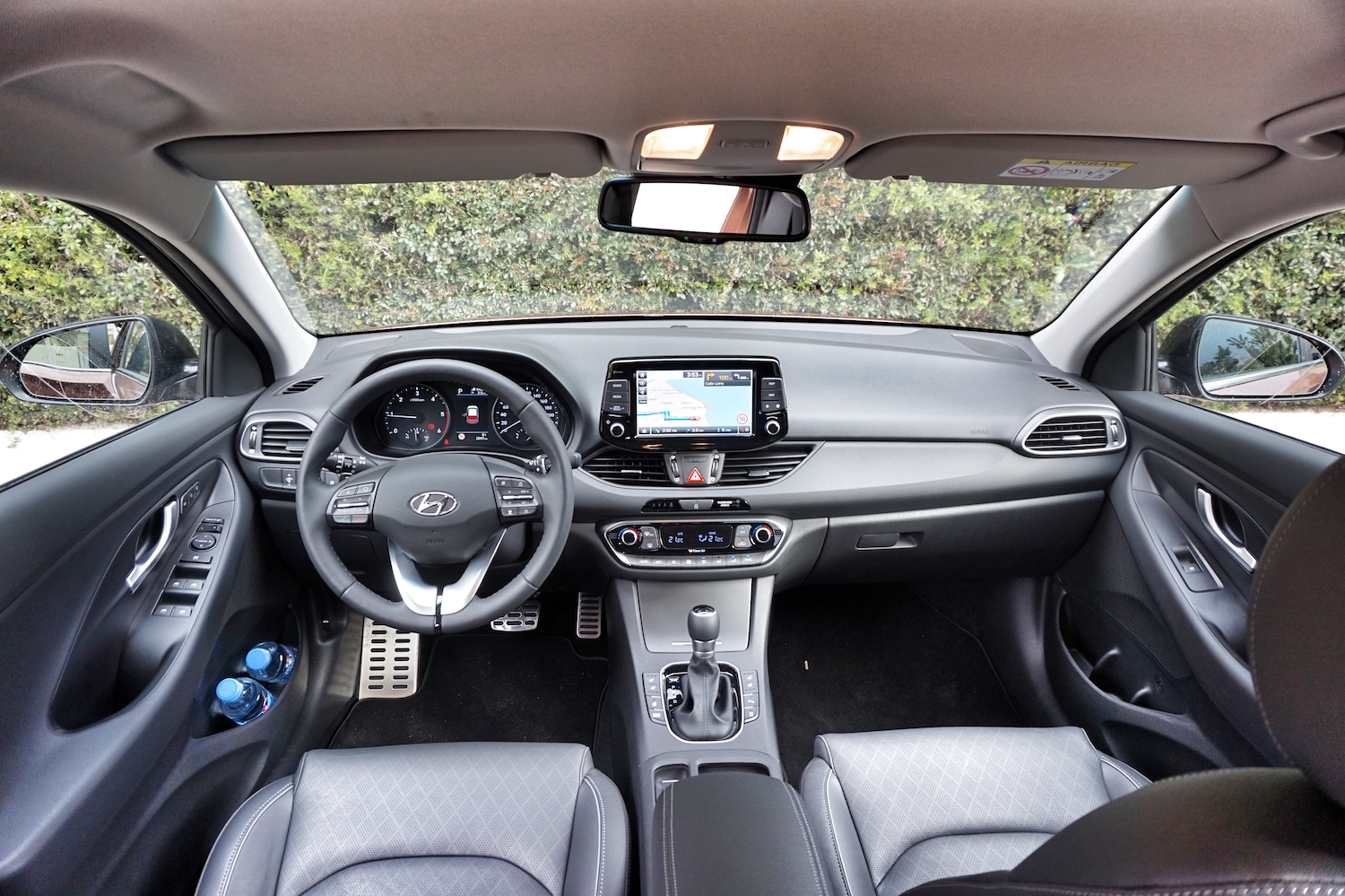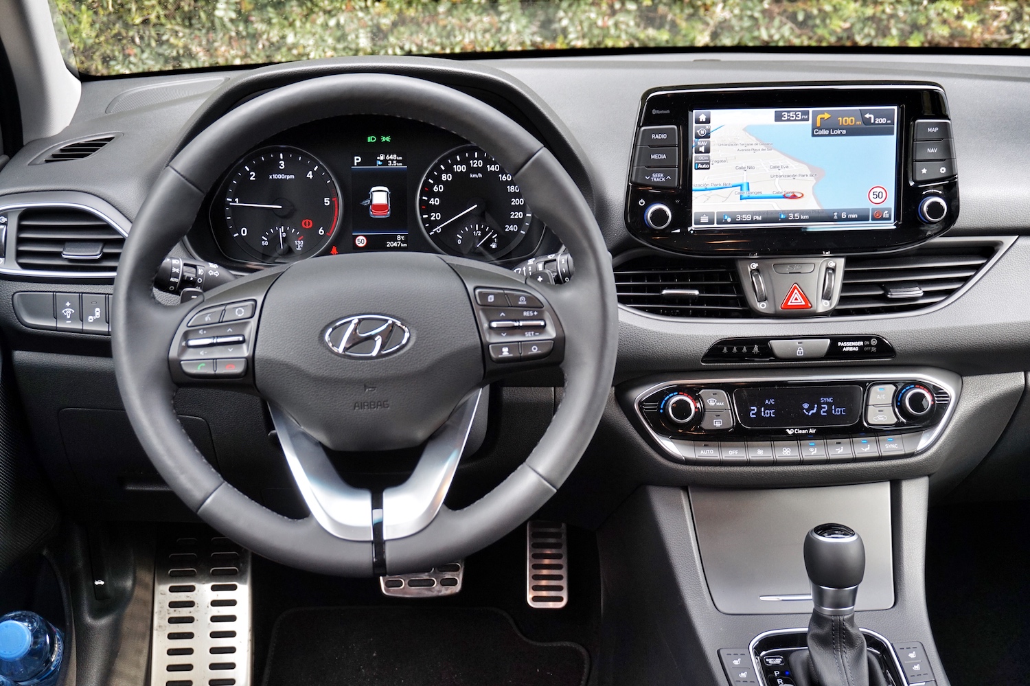 Podobno soliden in učinkovit vtis pusti notranjost s tremi ločenimi upravljalskimi sklopi – merilniki, zaslonom multimedijske naprave in sklopom stikal za gretje in zračenje. Sledenje trendom dokazuje velik (8-palčni) zaslon multimedijske naprave, ki štrli iz gornjega roba armaturne plošče; na zaslon z zelo odzivnimi izbirniki dobro vidita tako voznik kot sovoznik. Pravzaprav je dobro vidno in na dosegu rok prav vse v novem i30, ki je z logično postavitvijo elementov, pa tudi z odlično nastavljivostjo položaja za volanom lahko ergonomski vzor marsikateremu tekmecu.