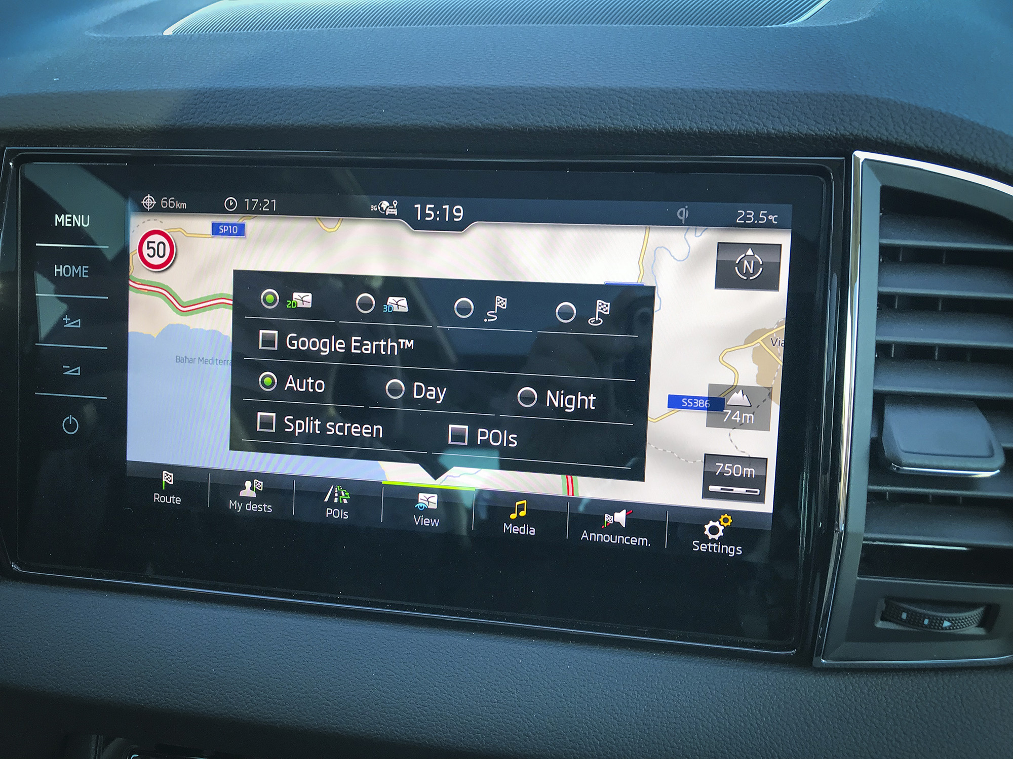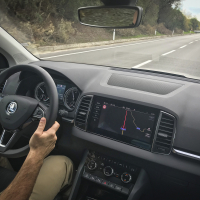| Digitalizacija: Karoq je trenutno digitalno najbolj napreden Škodin model. Je prva škoda, ki ponuja prilagodljive elektronske merilnike s štirimi različnimi prikazi podatkov. Med digitalne novosti sodi tudi krmiljenje določenih funkcij z gestami na katere se odziva senzor gibanja 9,2-palčnega zaslona. Karoq je sprejel izziv sodobnega pretoka podatkov in omogoča povezavo s svetovnim spletom preko širokopasovnega mobilnega vmesnika LTE. Ta je osnova za delovanje prikaza navigacijskih in prometnih informacij v realnem času in uporabe vseh storitev sistema Škoda connect - pregled vozila na daljavo preko telefona ali računalnika, naročanje na servis … V primeru nesreče avto sam pokliče na pomoč preko klica v sili. Na voljo pa je tudi do 20 aktivnih vozniških pripomočkov. |