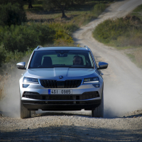 | Indijansko ime ohranja terenski pogum: karoq je bil “krščen” pri staroselcih na odročnem otoku Kodiak, ki leži pred obalo Aljaske. Za vožnjo po slabih poteh z malo oprijema in celo malce avanture po lažjem brezpotju karoserija dovoljuje 19.9-stopinjski vstopni kot (spredaj) ali 27,8 stopinj na zadnjem previsu. Od tal je avto oddaljen 18,3 centimetra prilagodljivemu štirikolesnemu pogonu pa pri oprijemu pomaga še elektronska zapora diferenciala EDL na zadnji premi. Pogon pri prenosu navora, kjer ni zamud deluje povsem samodejno. Strmino obvladuje s pomočnikom za nadzor hitrosti pri spustu in pomočnikom za speljevanje. Ima terenski program in program posebej prilagojen za vožnjo v snegu. |