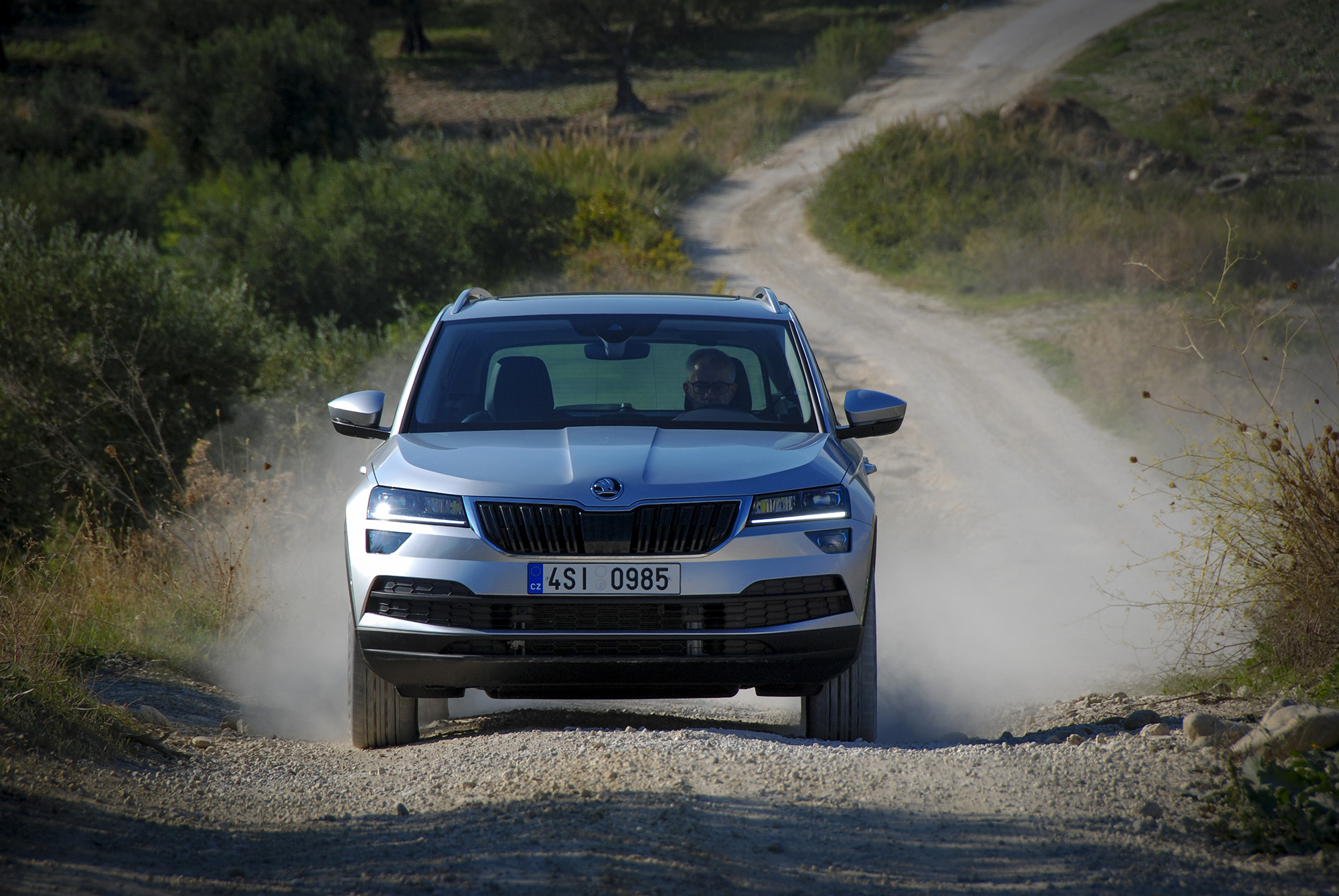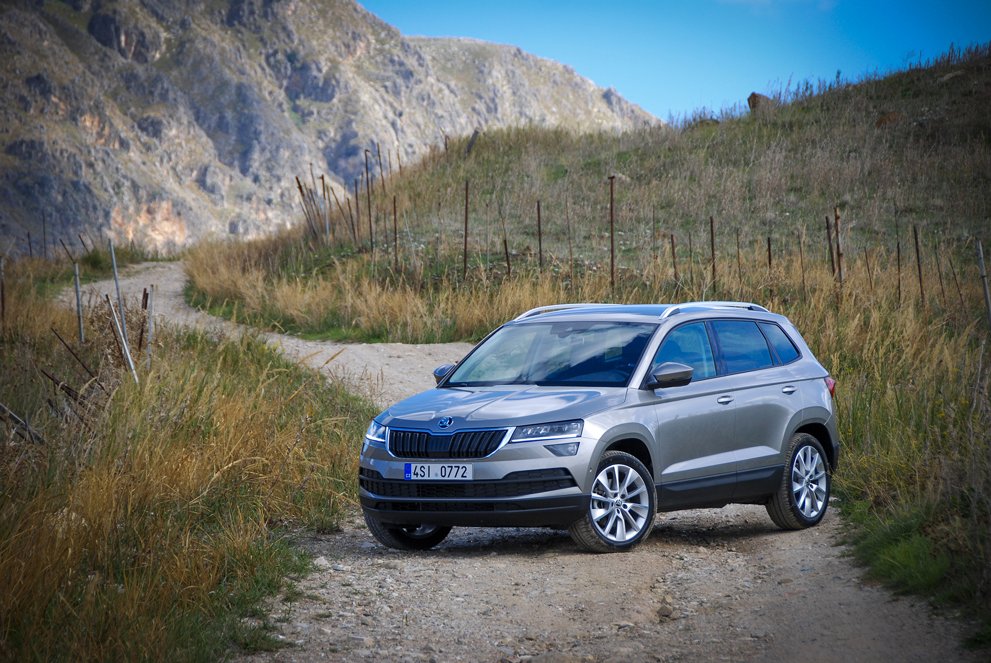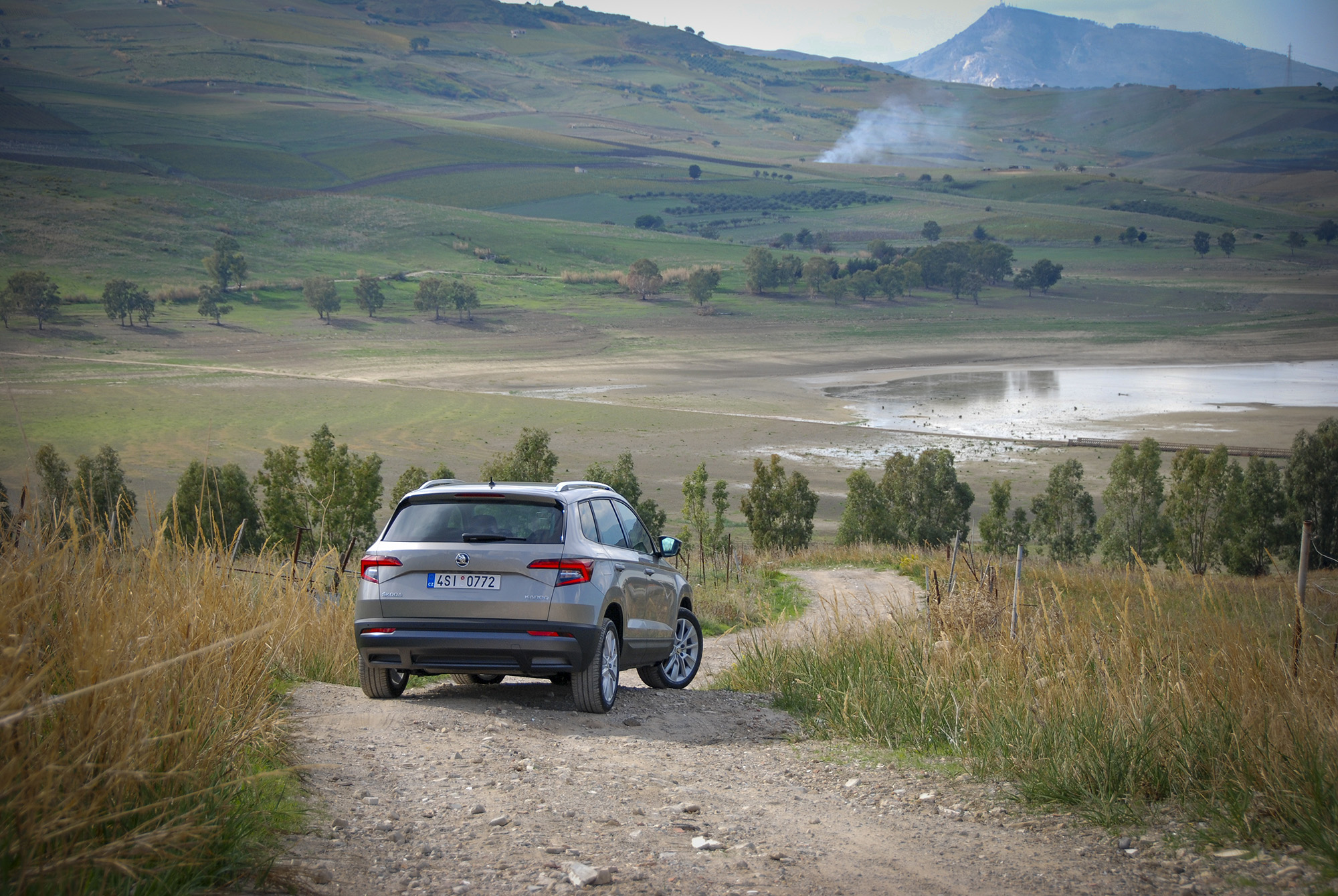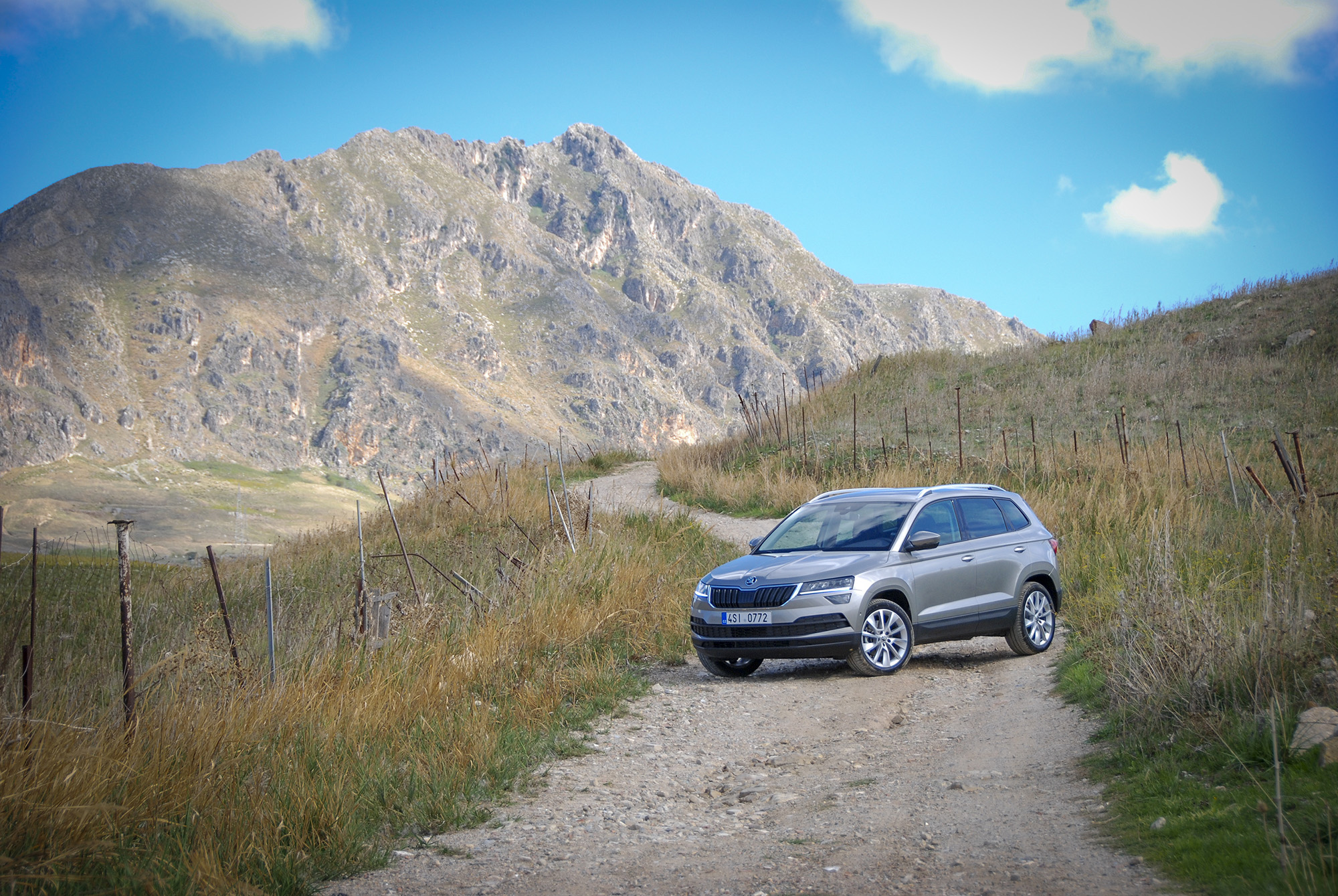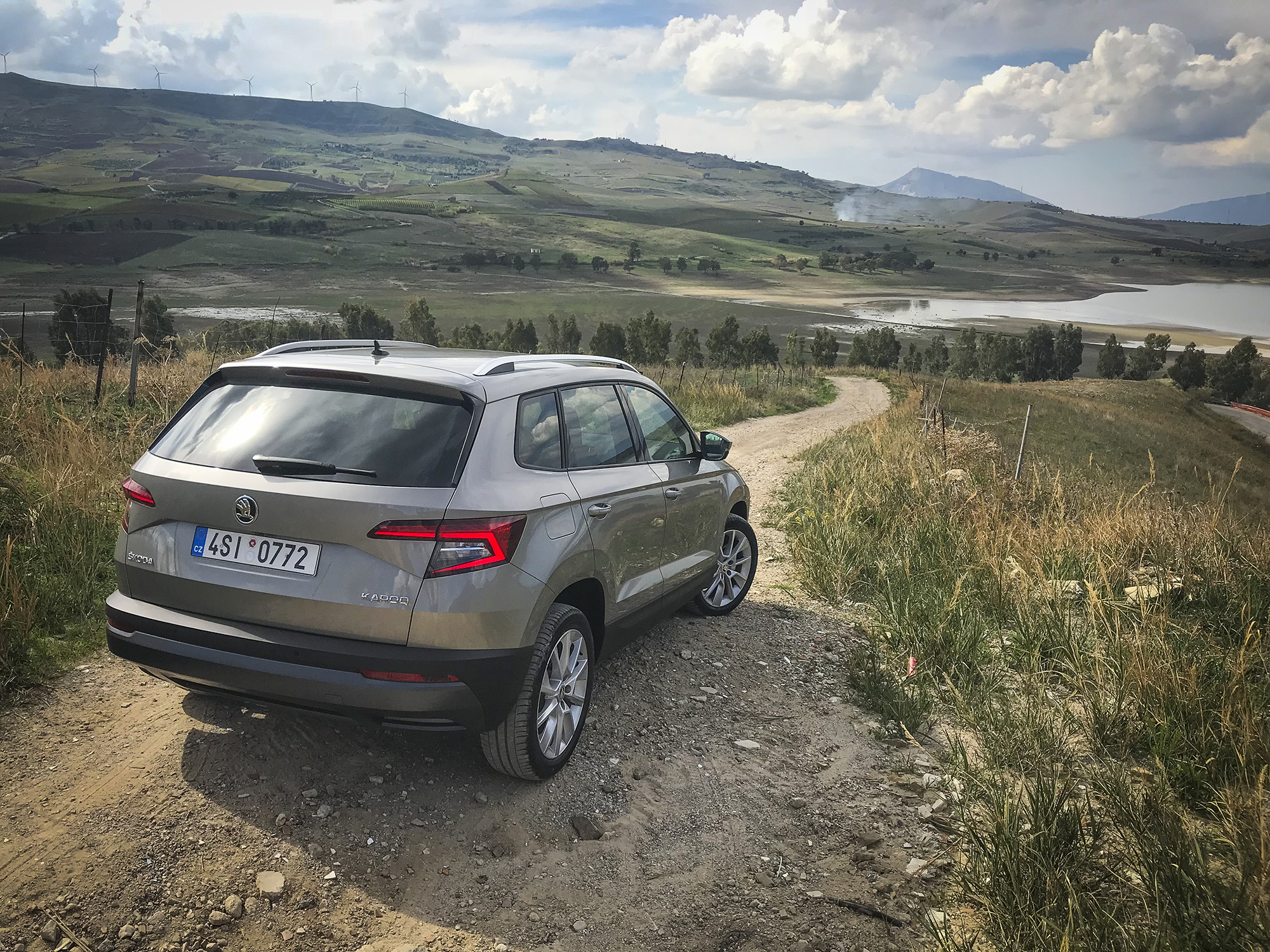 Na mestoma res zelo kočljivih in do mehanike prav nič prizanesljivih cestah Sicilije, se je karoq izkazal z odličnim blaženjem. Inženirji so temeljito nastavili podvozje, ter za vsako opremo in motor zaradi razlik v kilogramih opravili fine nastavitev, kar se še kako pozna na slabi vozni površini. Vožnja je res zelo udobna. Avto je nastavljen nekoliko bolj na mehko, čeprav je zaradi tega nagibanje pri dinamični vožnji malce bolj izrazito. Ni moteče. Treba se je zavedati da, karoq ni športni avto, se pa zna suvereno peljati ne glede na to kako kakovostna je podlaga pod kolesi. Vozno je to zagotovo eden bolj prepričljivih kompromisov v tem razredu cestnih terencev s poudarkom na dejstvu, da v ospredje postavlja udobje in zanesljivo lego. Na voljo je tudi dinamično uravnavanje podvozja s štirimi programi: varčni, običajni, športni in individualno nastavljivi.