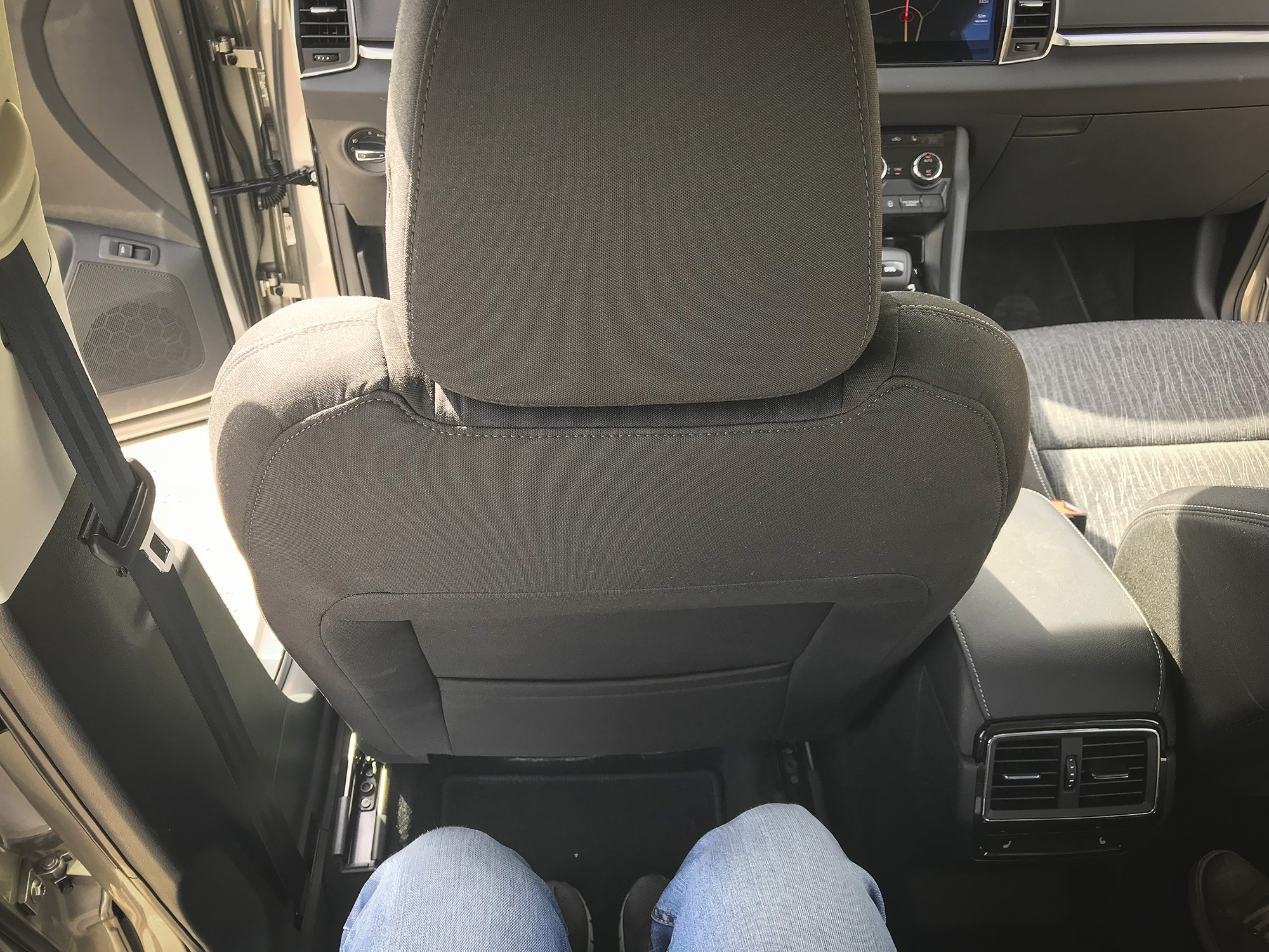 S 4,38 metra dolžine, je za 30 cm krajši od svojega velikega brata kodiaqa. To pomeni več okretnosti na parkiriščih in stranpoteh, manjšo težo in manjšo porabo goriva ter na drugi strani še vedno veliko prostora za kolena in prtljago. Karoq ob tem postreže tudi z enoprostorskimi triki. Na seznamu dodatne opreme je namreč prilagodljiv sistem sedežev varioflex. Trije ločeni sedeži v zadnji vrsti so vzdolžno pomični, imajo nastavljiv naklon naslona in vsakega posebej je relativno enostavno mogoče odstraniti iz avtomobila. Ta prilagodljiv tloris bo na kožo pisan aktivnim ljudem. Ven vzameš en sedež in nastane prostor za kolo, smuči ali sup. Iz osnovnih 479 litrov oziroma 521 litrov prtljažnika, ob običajni zadnji klopi, lahko karoq ponudi vse do 1810 litrov prostora. Ob tem ne gre pozabiti, da zmore vleči še do dve toni težko prikolico. Škoda, ker Škoda od matičnega koncerna zanj, ob sicer izdatno odmerjenih vozniških pripomočkov - skupaj jih je na voljo 20 -, denimo ni dobila aktivnega sistem za vzvratno vožnjo prikolice. Razumemo, saj bo karoq nedvomno trn v peti tudi Volkswagnovemu tiguanu, ki to ima. Razlika med tihimi tekmeci koncerna se pokaže tudi v podrobnostih kabine. Karoq je narejen kakovostno, a razlika v ceni se vidi v materijah. Niso slabi, le bolj “ljudski” na otip. Prvi vtis nam je dal občutek, da je karoq prostornejši od tiguana, bomo pa slednje temeljito preverili na testu.