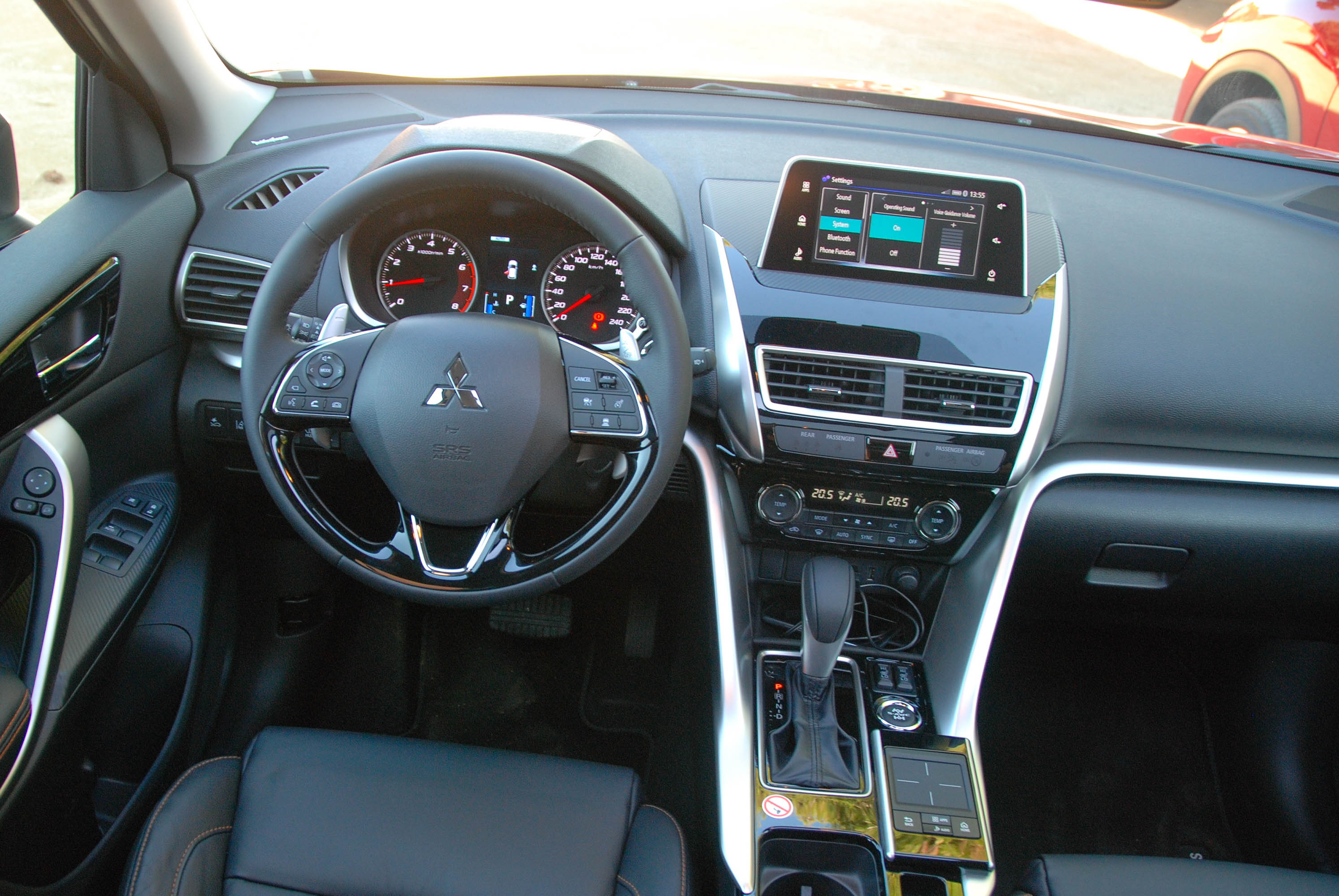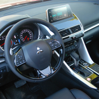 4,4 metra dolg eclipse cross je 29 cm krajši od outlanderja. 2,67 metra med osema je dovolj, da se na vseh sedežih sedi precej udobno. Zadnjo klop, deljivo v razmerju 60 : 40, je mogoče vzdolžno pomakniti za kar 20 cm in nastavljati naklon naslonjal. To pomeni prilagodljivo prostornino prtljažnika. Na voljo je od 341 do 448 l, kar je manj od največjih prtljažnikov tekmecev, ki sežejo čez mejo 500 litrov. Omeniti velja še podobo armature. Skupaj z nepraktičnim drsnikom za upravljanje 17,8-centimetrskega zaslona spominja na Lexusovo. Pripombo si zasluži navigacija. V bistvu je ni. Kdor jo želi, jo mora imeti na telefonu in telefon povezati z avtom, da bo poti lahko sledil na osrednjem zaslonu. Android auto v Sloveniji še ne deluje.