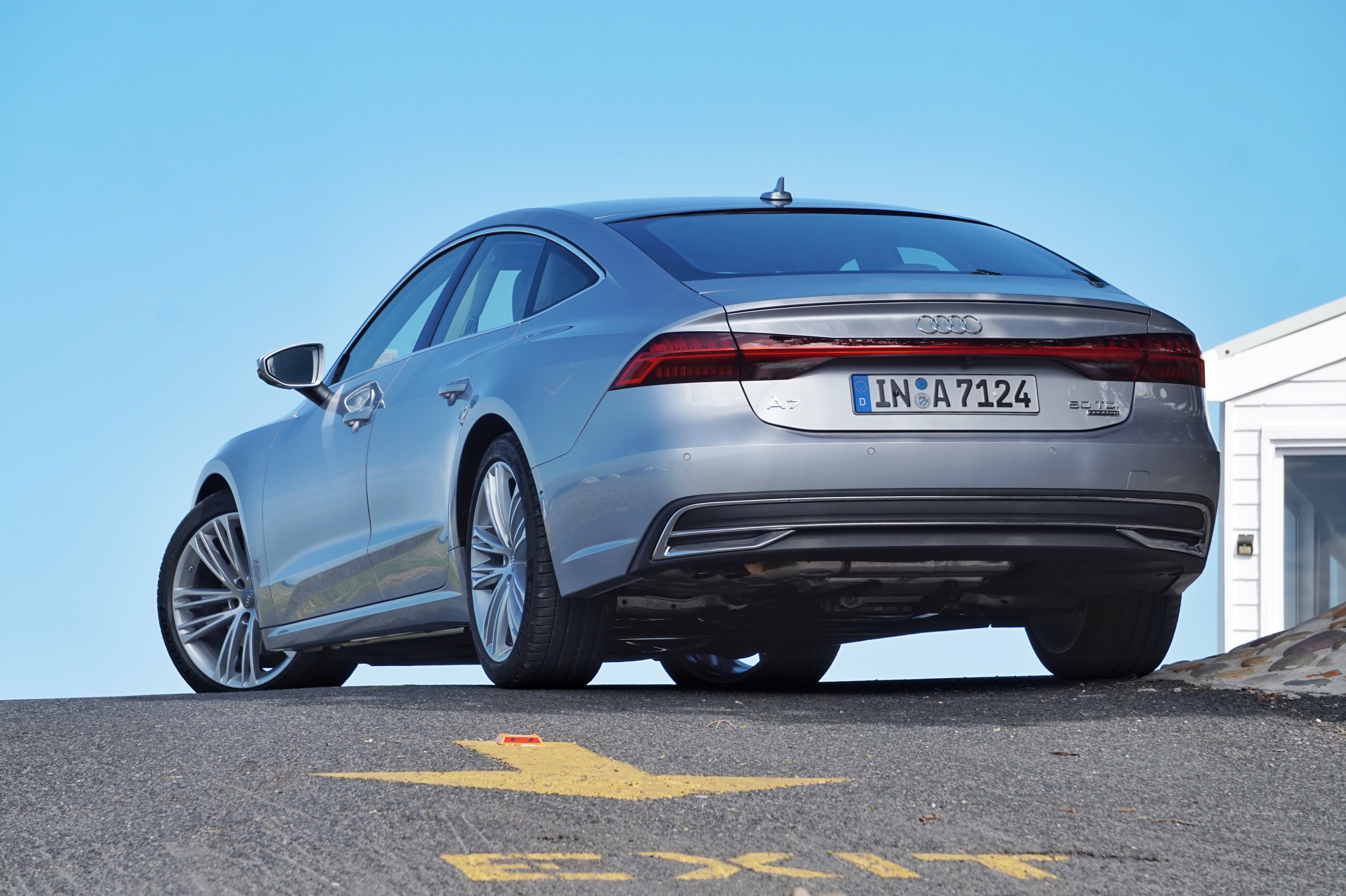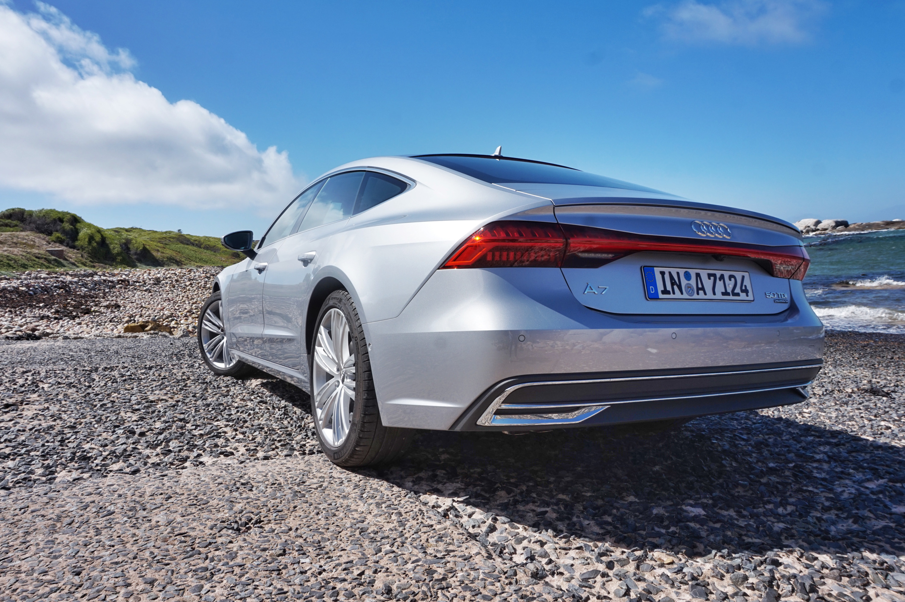 Najmanj tako velik korak kot pri obliki so Audijevi inženirji naredili pri tehniki; ob začetku prodaje je A7 na voljo z dvema trilitrskima šestvaljnikoma; bencinski (z oznako 55 TFSI) zmore 250 kW, dizelski (z oznako 50 TDI) pa 210 kW. Oba motorja imata 48-voltni generator in s tem enostavno hibridno tehniko (s sistemom rekuperacije zavorne energije), oba vsa štiri kolesa (quattro) poganjata prek avtomatiziranega (bencinski motor) ali samodejnega menjalnika (dizelski motor). Oba tudi do 100 km/h pospešita v približno petih in pol sekundah in pri obeh je največja hitrost omejena na 250 km/h. V vožnji je živahnejši in odzivnejši seveda bencinski motor, a tudi ta ne bo zadovoljil dirkaških okusov – ti bodo morali počakati na različice S in RS.