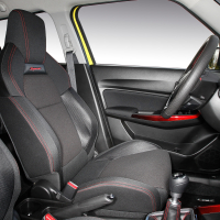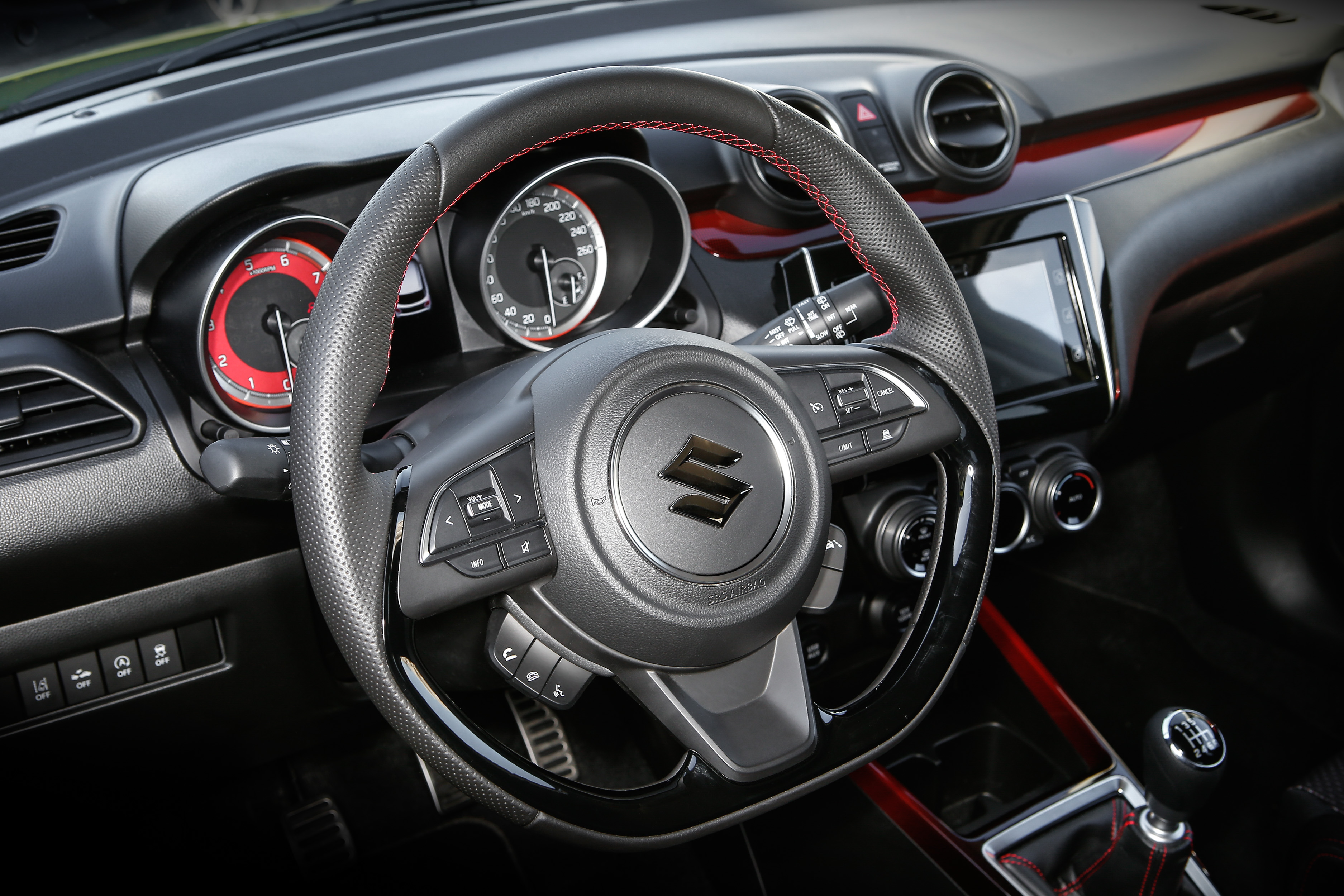 V notranjosti so z rdečimi dodatki - del oblog in šivi na volanu ter prestavni ročici - poudarili športnost. Vozniški položaj je dober in športna sedeža dovolj velika. Piko na i - videzu in občutkom - dodajajo še neposreden volan in merilniki z bogato grafiko ter zaslonom, ki prikazuje tudi moč, navor, mrežo gibanja G sile … Ker mora biti dober športni avto najprej varen, ima swift vse ključne varnostne vozniške pripomočke. V serijski opremi so: sistem proti naletu, aktivni tempomat, sistem za nadzor smeri znotraj voznega pasu, aktivno krmiljenje svetlobnega snopa … Najhitrejši swift se bo med slovenske ovinke zapodil predvidoma junija, pri uvozniku pa pričakujejo, da bo cena krepko pod 20 tisočaki. Če bo to res, bo swift sport eden najbolj dostopnih, a hkrati prepričljivih paketov vozniških užitkov.