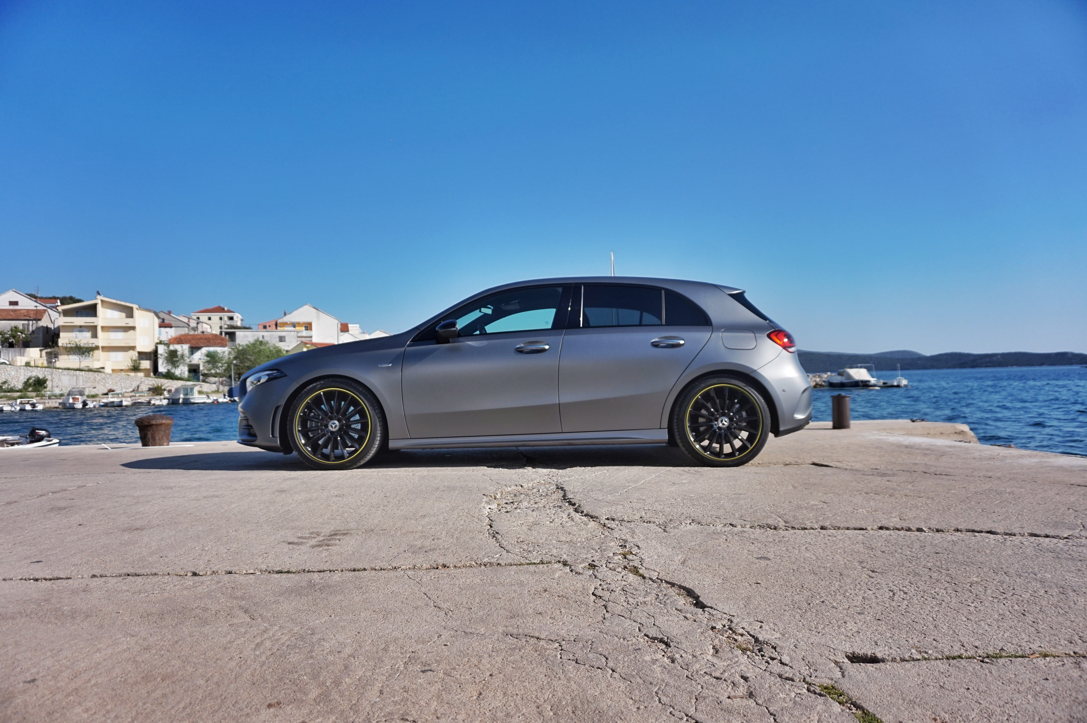 | Po začetnem navdušenju nad digitalno podobo avta mercedes A navduši tudi v vožnji; ustrezno čvrst in odlično sestavljen ter narejen avto razveseli z vodljivostjo in visoko postavljenimi mejami zdrsa. Športnega značaja ne prikriva niti z najšibkejšim motorjem pod pokrovom motornega prostora. |