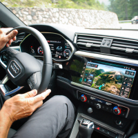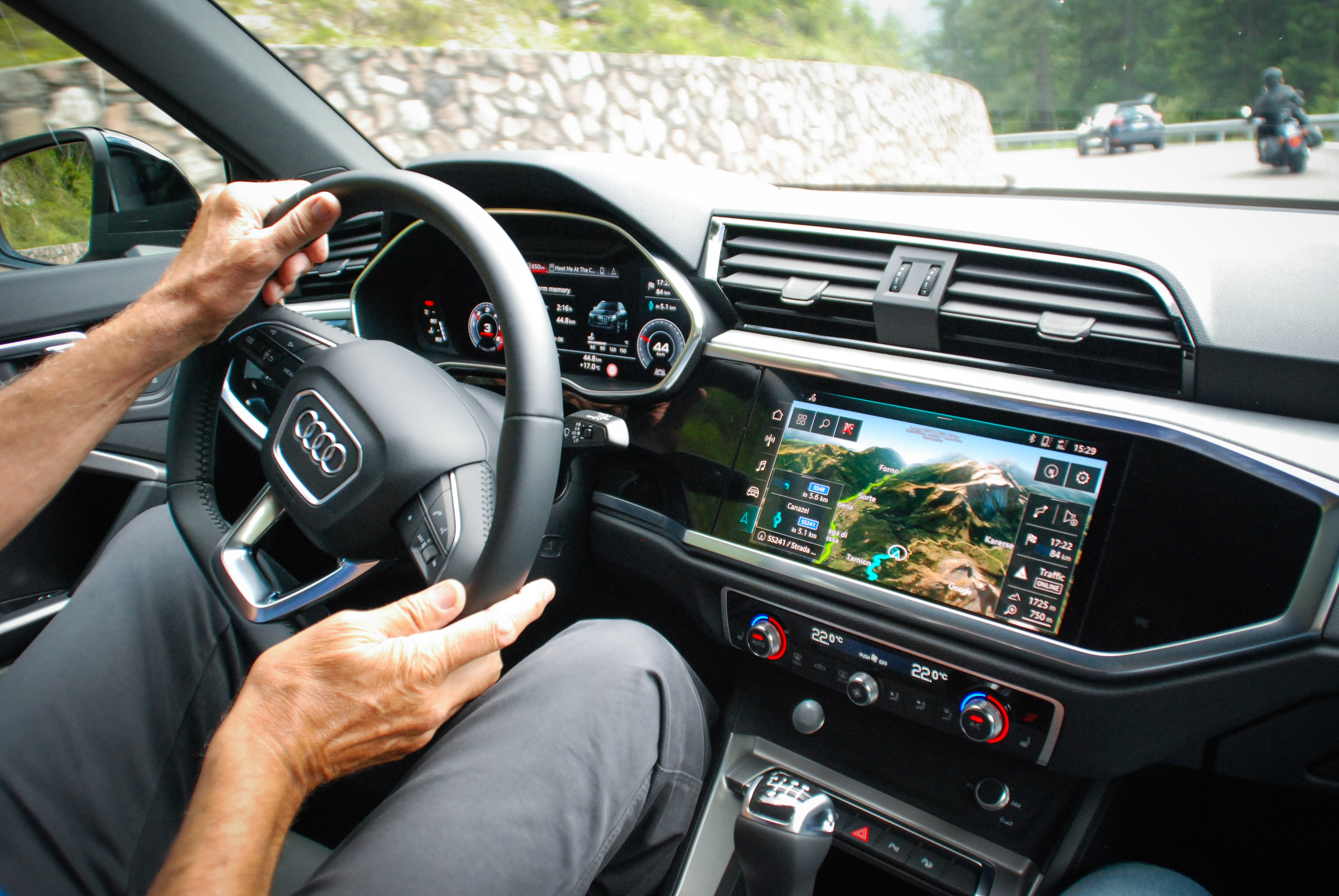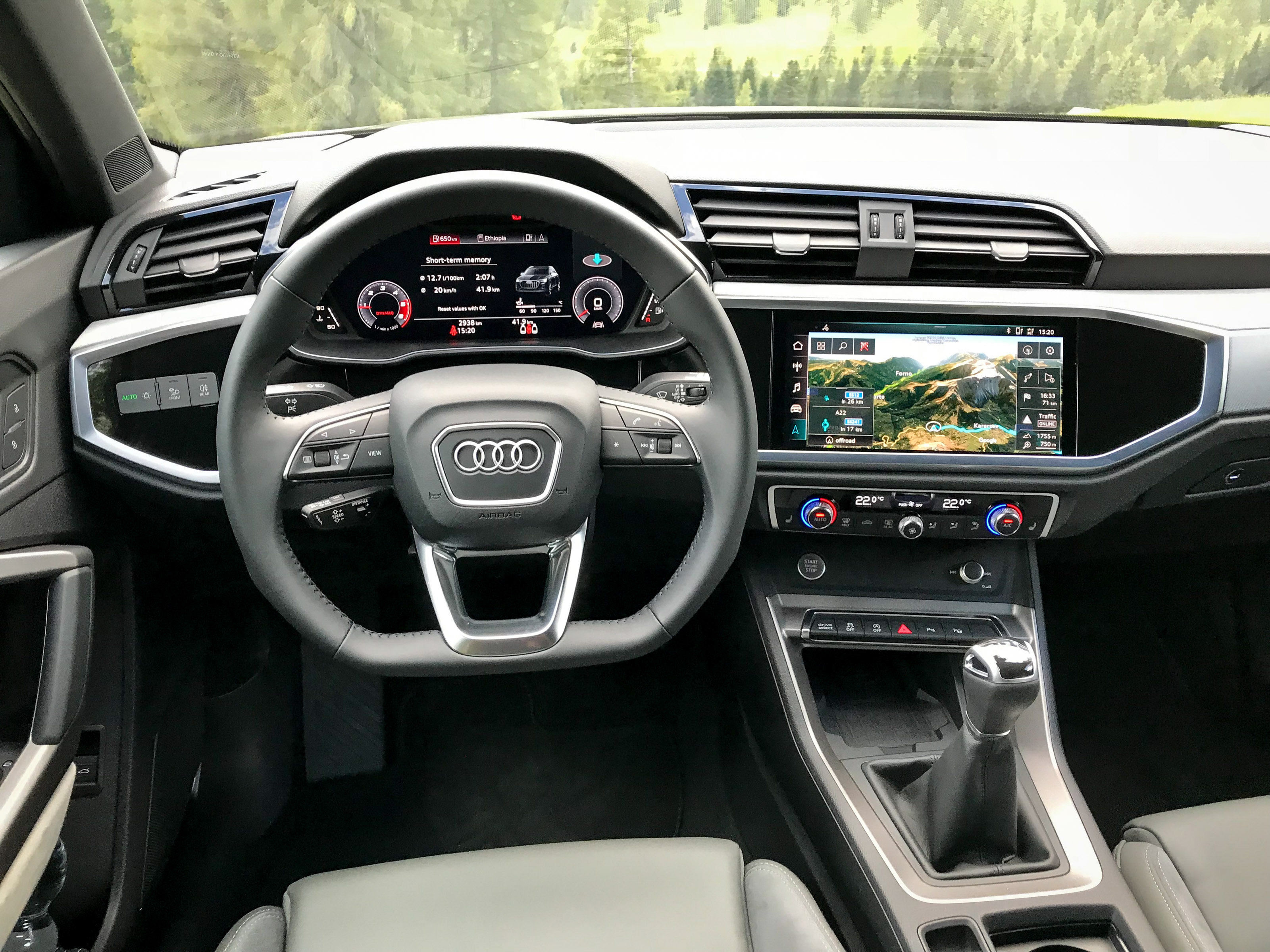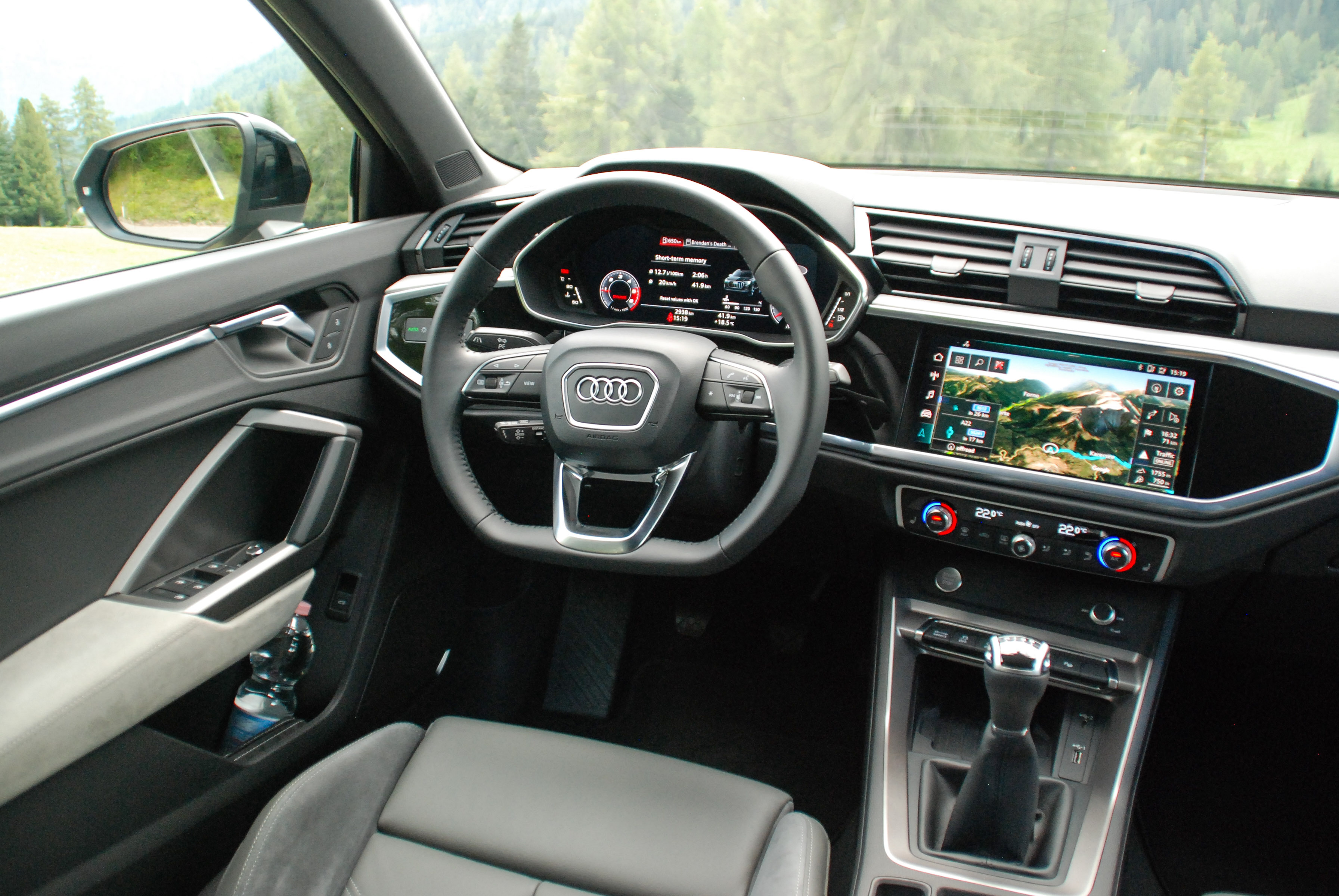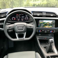 Da je Audi še vedno znamka tehničnega napredka, je jasno takoj, ko odpreš vrata novega Q3. Analognih merilnikov ni več, kakovost izdelave in vgrajenih materialov sledi pričakovanjem visokega razreda. Kljub napredni digitalizaciji - z umetno inteligenco in temeljitim radarskim ter video nadzorom okolice sledi zgledu treh najpametnejših A6, A7 in A8 - pa je Q3 ob serijskem 10,25-palčnem zaslonu prilagodljivih merilnikov zadržal nekaj ključnih, priročnih mehanskih stikal za upravljanje voznih programov, klimatske naprave, sistema ESC … Slednje bo všeč vsem vozniškim zanesenjakom - mladim in starim - , ki jim več kot vsebina digitalnih zaslonov pomeni dogajanje na cesti. Sedežni položaj za volanom je odličen, znova po meri dinamičnih voznikov. Avto je pregleden in omogoča udobno vstopanje oziroma izstopanje. S svojim digitalnim vmesnikom je Q3 pripravljen na povezano prihodnost: ponuja širokopasovno povezavo LTE in obvlada tudi izmenjavo podatkov v oblaku povezanih vozil. V Audijev podatkovni oblak nalaga in z njega sprejema informacije o stanju na cestah, vremenu, izrednih dogodkih, obvlada socialna omrežja, navigira v realnem času in komunicira z lastnikovim telefonom na daljavo. A vseh storitev in funkcij tehnologije Audi connect ob prihodu v Slovenijo na naših cestah še ne bomo mogli uporabljati.