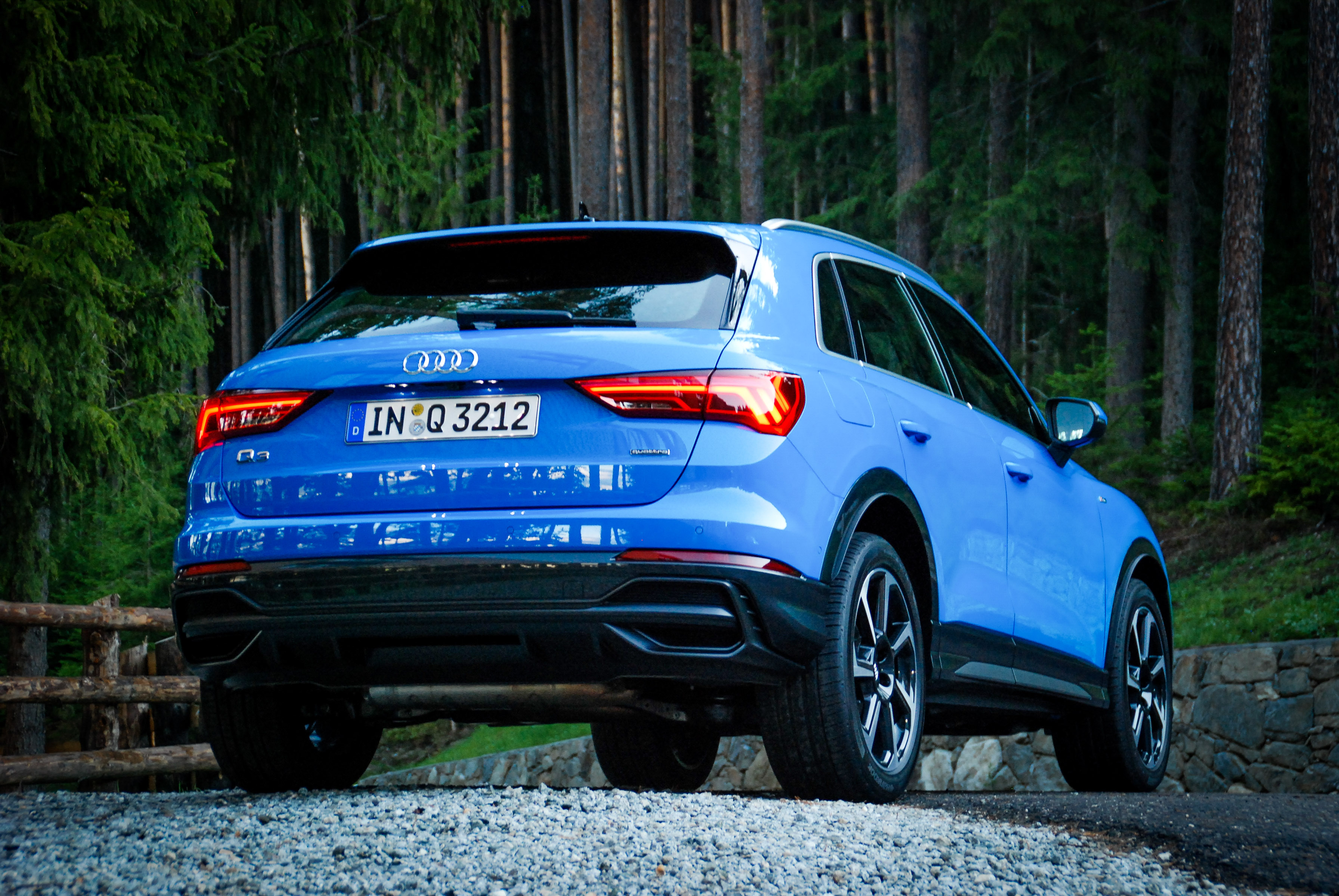 | Motorji (štirivaljniki) in oznake on prihodu na trg: Q3 45 TFSI quattro (2,0 l bencin 169 kW in 350 Nm), Q3 35 TDI quattro (2,0 l dizel 110 kW in 340 Nm), Q3 30 TFSI (1,5 l bencin 110 kW in 250 Nm). Ročni 6-stopenjski in 7-stopenjski S-tronic menjalnik ter elektronsko nadzorovan štirikolesni pogon quattro. |