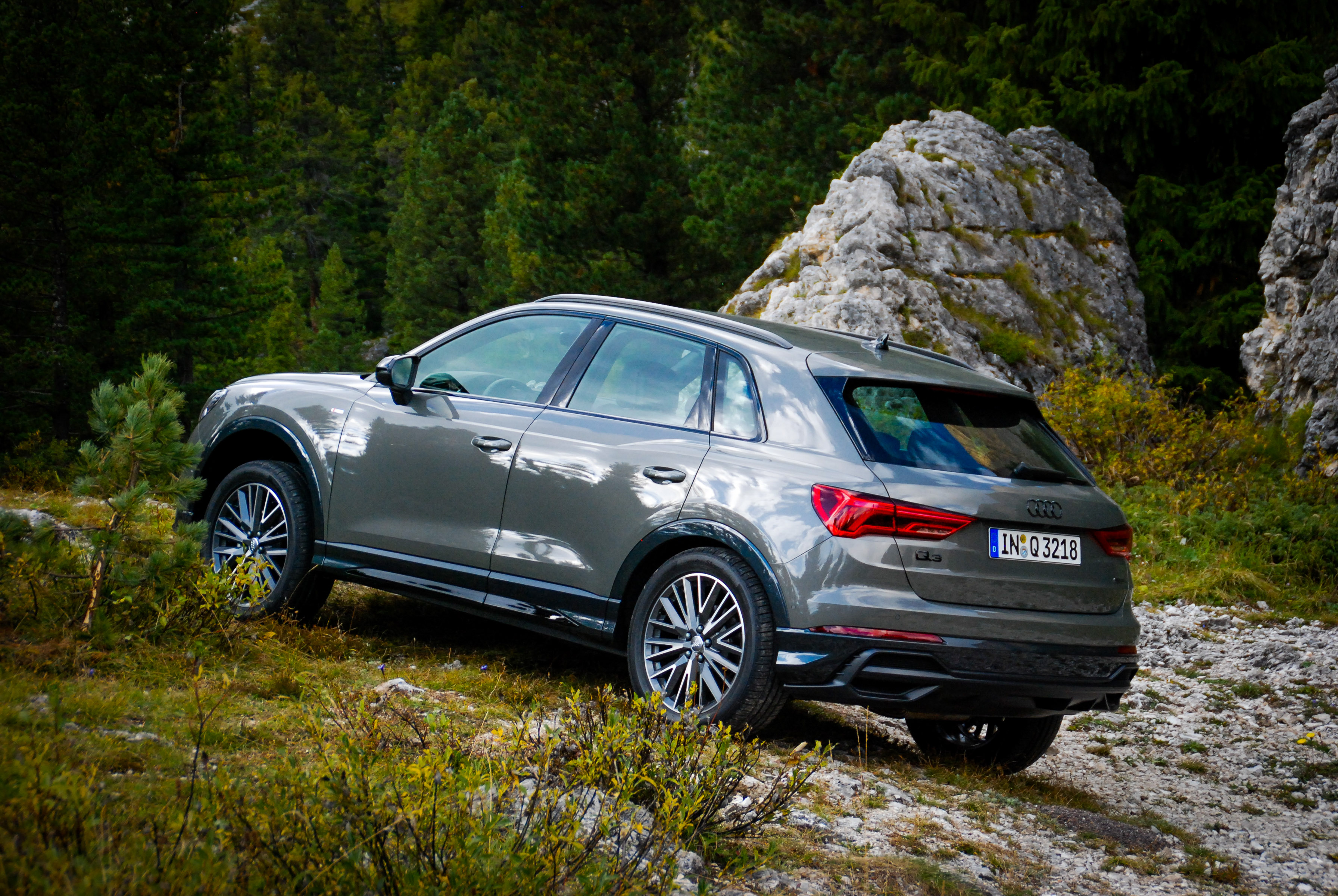 Nekoč najmanjši Audijev Q - do prihoda še manjšega Q2 pred dvema letoma - je v drugi generaciji postal občutno večji avto, pa tudi elegantnejši od svojega predhodnika. Očitno je, da se po prostoru in vsebini želi jasneje ločiti od manjšega Q2. V dolžino je zato zrasel za skoraj 10 cm (448,5 cm), medosna razdalja je daljša za 7,7 cm (268 cm), v širino je pridobil slab centimeter. Oblikovalci so z bolj razburljivo začrtanimi linijam, ki močno spominjajo na velikega Q8, poskrbeli, da je kompaktni Q3 na cesti videti bolj samozavesten.