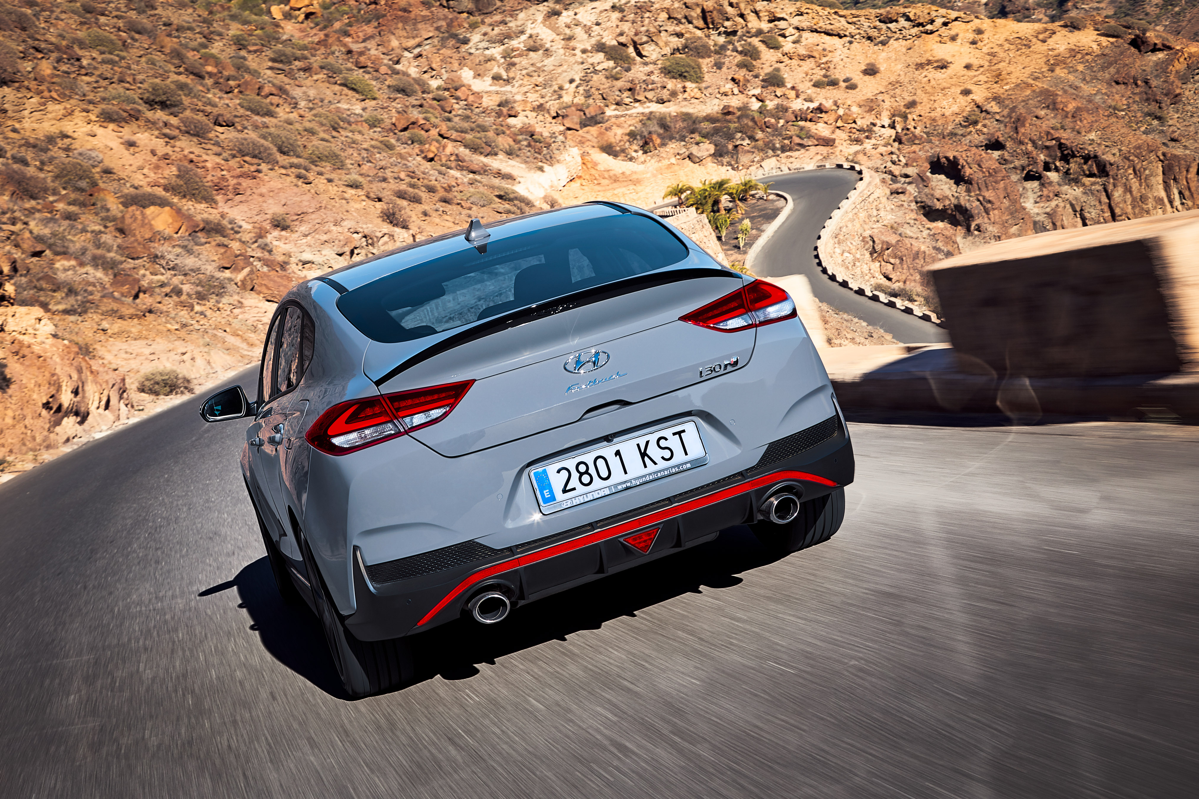 Novi i30 fastback N je 12 centimetrov daljši od 5-vratne kombilimuzine. Daljši zadek z diskretnimi zračnim usmerjevalnikom prinaša dve ključni prednosti: elegantno obliko in večji, 450- oziroma 436-litrski prtljažnik, če je vanj nameščen še dodatni prečni stabilizator različice performance. Daljša in za 2,1 cm nižja strešna linija pomeni tudi bolj učinkovito uravnavanje zračnih tokov: fastback ima boljši aerodinamični količnik - 0,29 namesto 0,32. Daljši zadnji del pomeni sicer dodatnih 12 kilogramov, a se jih med ovinki ne čuti. Inženirji ničesar niso prepustili naključju, zato imata prednji kolesi malce mehkejše vzmetenje z nekoliko daljšimi gibi, zadaj pa sta posamično vpeti kolesi dobili dodatni stabilizator. Vozniška izkušnja je izjemna: fastback se na dirkališču zdi še bolj natančen in predvidljiv. Na meji oprijema je avto zelo suveren, obvladljiv in zabaven, zato omogoča varno uživanje tudi manj izkušenim voznikom: volan odlično bere cesto in diferencialna zapora z omejenim zdrsom odločno deli navor na kolesi. Spredaj je oprijema veliko in tudi ob hitro razbremenjenem zadku avto ostaja igrivo stabilen. Sistem ESC je v petih voznih programih mogoče prilagoditi vozniškemu znanju.