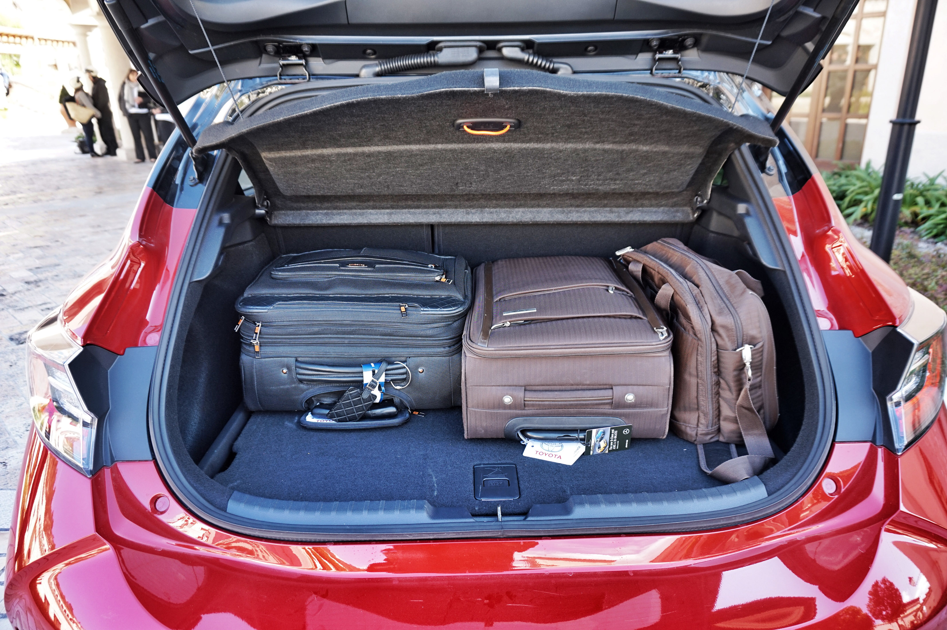 Petvratna corolla ima najkrajšo medosno razdaljo in zato tudi najmanj prostora v kabini in prtljažniku. Zadaj se s koleni hitro dotakneš naslonjal prednjih sedežev, 361-litrski prtljažnik tudi ni med najprostornejšimi v razredu - pri močnejši hibridni različici je ta zaradi dodatnega akumulatorja zadaj še malce manjši (in plitkejši). Kdor želi več prostora, bo moral seči po corolli TS - v njen avto lahko naložimo od skoraj 600 do več kot 1600 litrov prtljage.