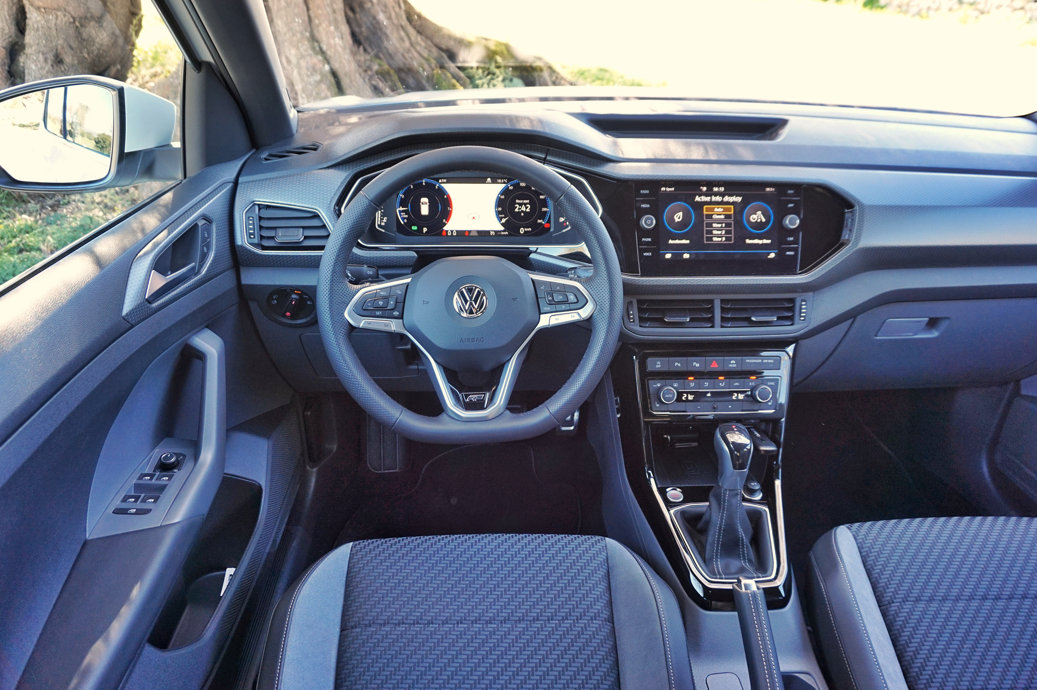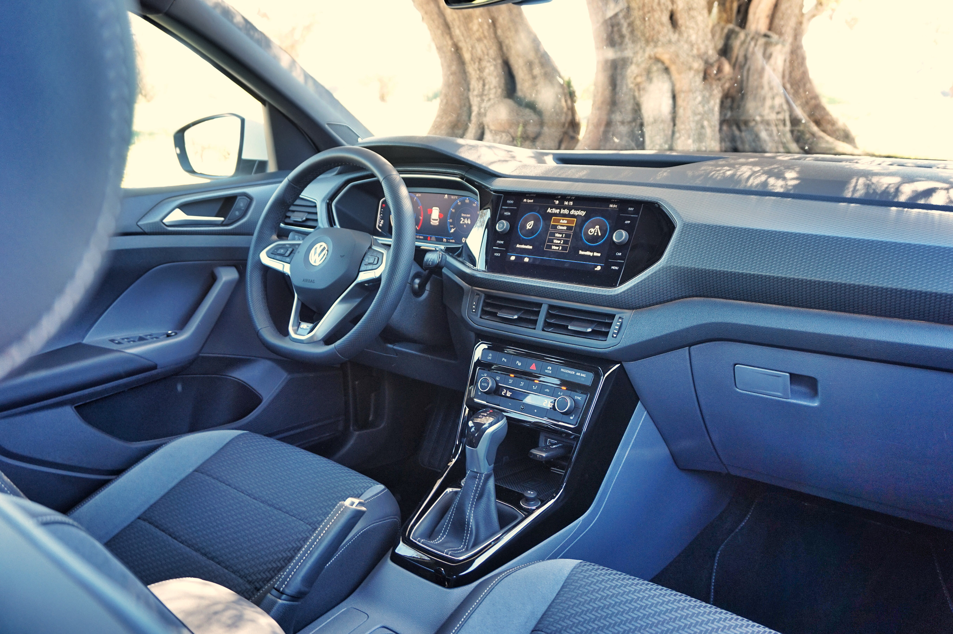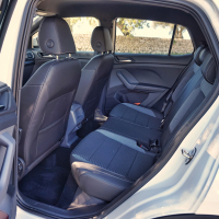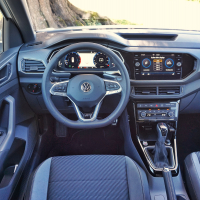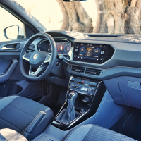 Kdor se znajde v sodobnih volkswagnih, se bo tudi v T-crossu: v grobem je notranjost podobna kot v polu in T-rocu, tudi pri T-crossu si je mogoče omisliti digitalne merilnike in barvite plastične vložke, ki poživijo notranjost. Ergonomija je izvrstna, vidljivost iz avta zaradi višjega sedenja zelo dobra.