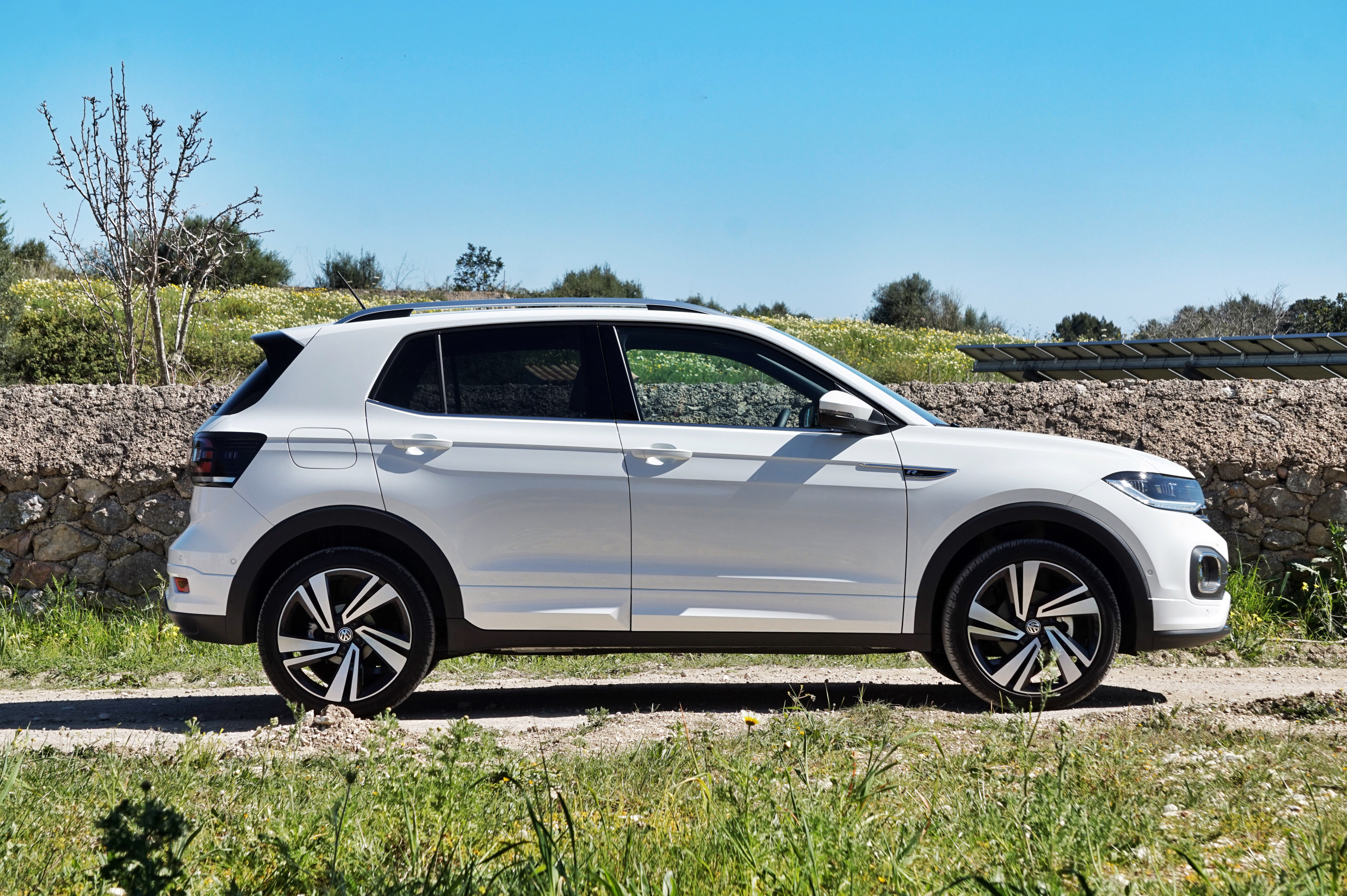 Potniki v T-crossu sedijo 10 cm višje kot v polu, ustrezno večja je tudi karoserijska oddaljenost od tal. A to je tudi edina uporabna lastnost T-crossa zunaj asfaltiranih cest: kljub avanturističnemu značaju in videzu si T-crossa ne moremo omisliti s štirikolesnim pogonom. Škoda. Na cesti T-cross pusti zelo suveren vtis z lahkotno in natančno vodljivostjo, skrbno uravnoteženim vzmetenjem in lego na cesti, ki uspešno prikrije višje težišče.