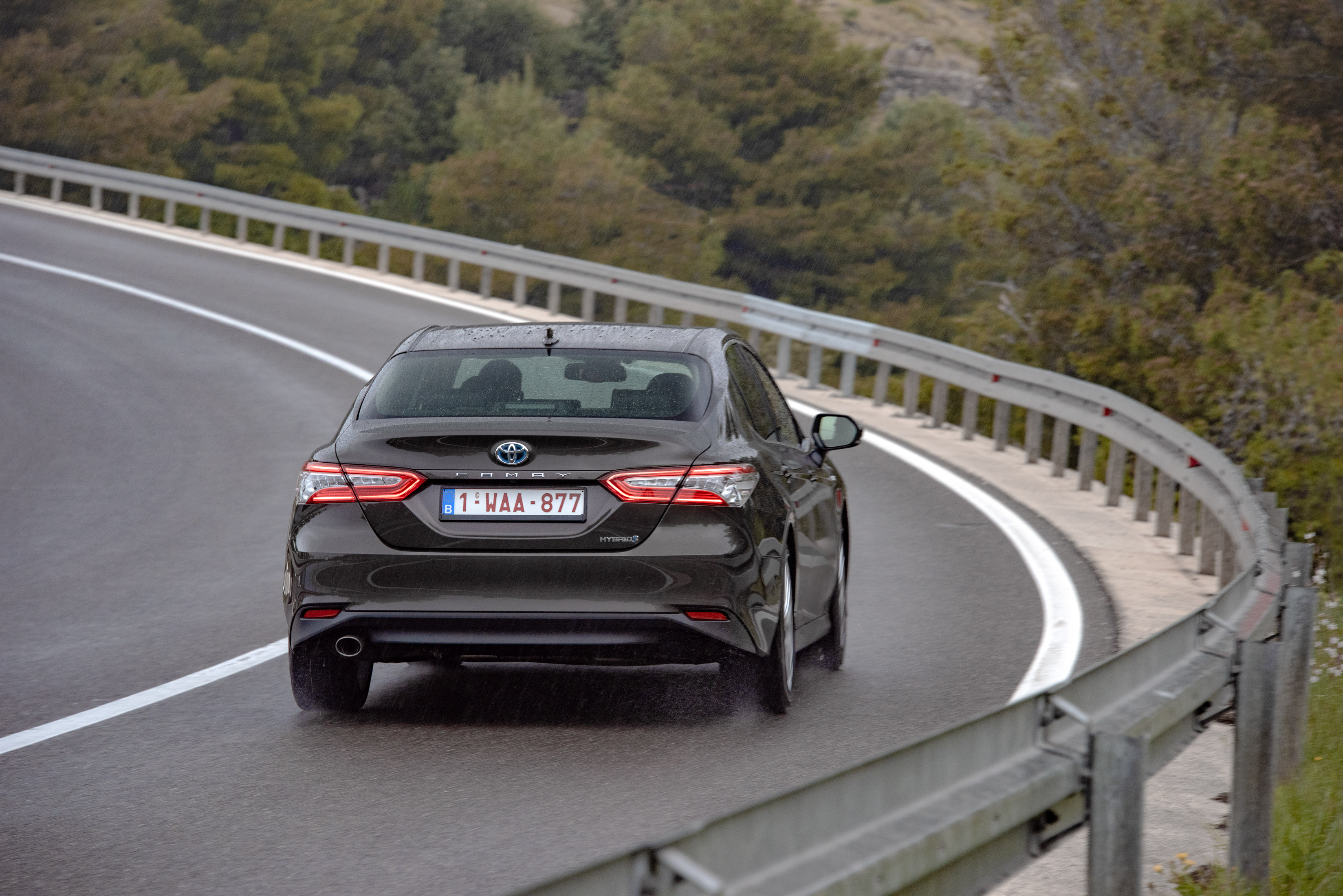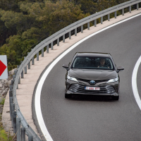 Velika limuzina brez dizelskega motorja? Nova generacija hibridnega pogona, ki smo ga nedavno dodobra opisali že pri novemu RAV4, tudi v camryju ne razočara. 2,5-litrski bencinski štirivaljnik (133 kW) in elektromotor oziroma generator (88 kW) na kolesa preko brezstopenjskega menjalnika (planetno gonilo) pošljeta 160 kW sistemske moči. Bit tega je seveda napredno sodelovanje dveh energijskih tokov in zajetje dela izgubljene energije iz zaviranja za električno samooskrbo pogona za manjšo porabo goriva in manj izpusto. Camry je dovolj zmogljiv (8,3 s do 100 km/h) in hkrati varčen: na testnih trasah se je poraba gibala od 5,8 do 6,5 litra na 100 kilometrov. Velika limuzina brez dizla ima možnosti postati konkurenčen izbor.