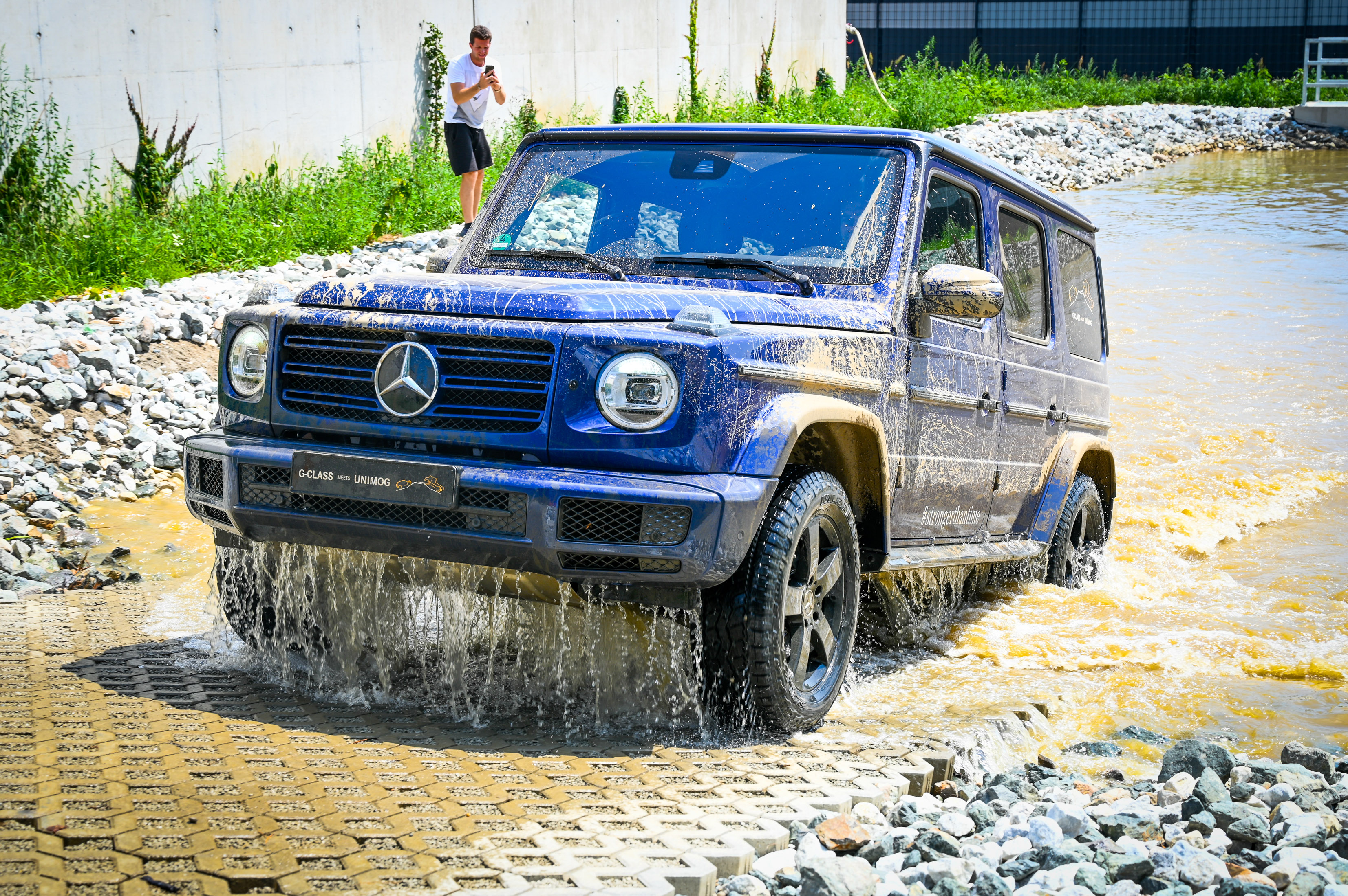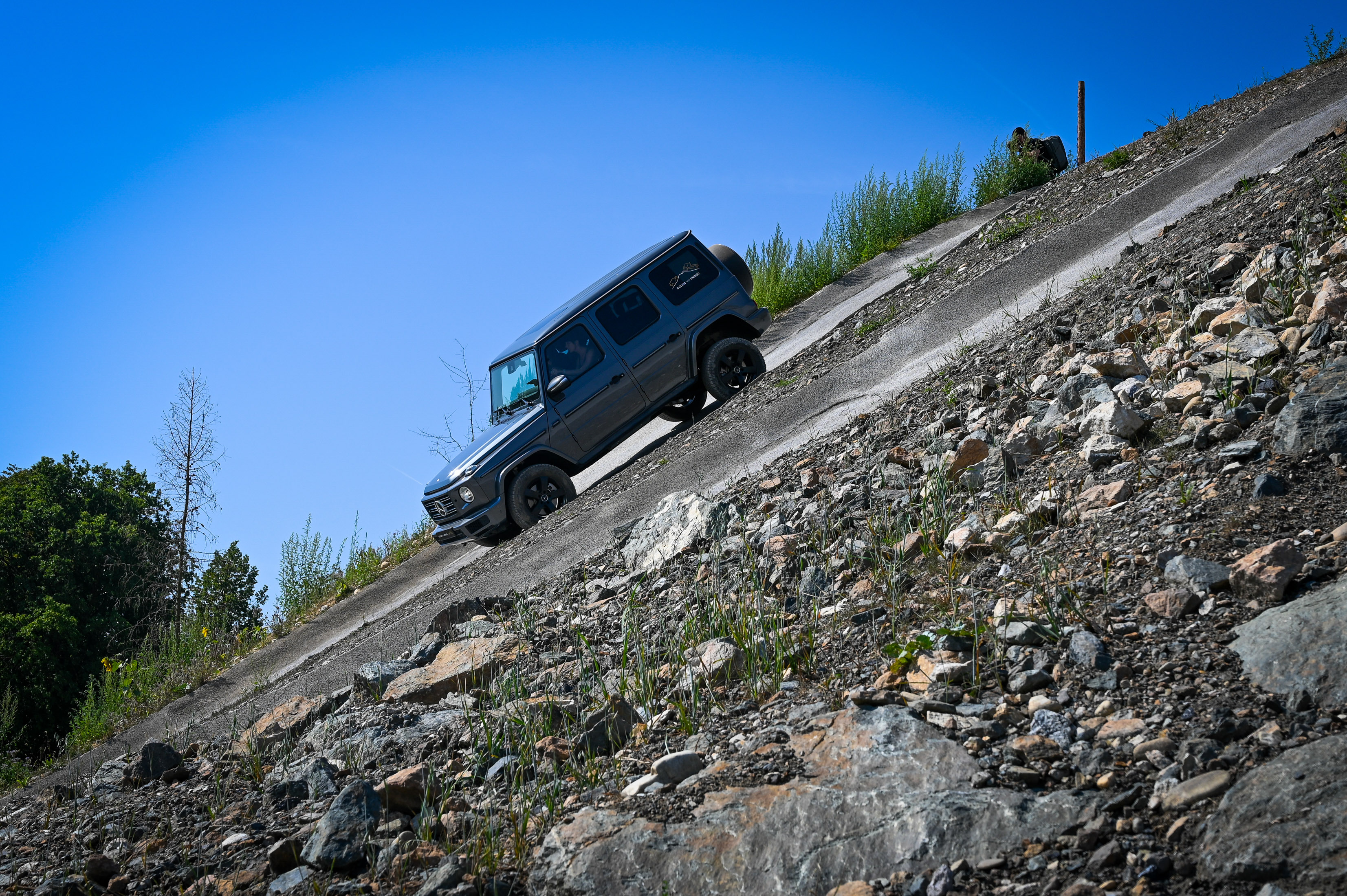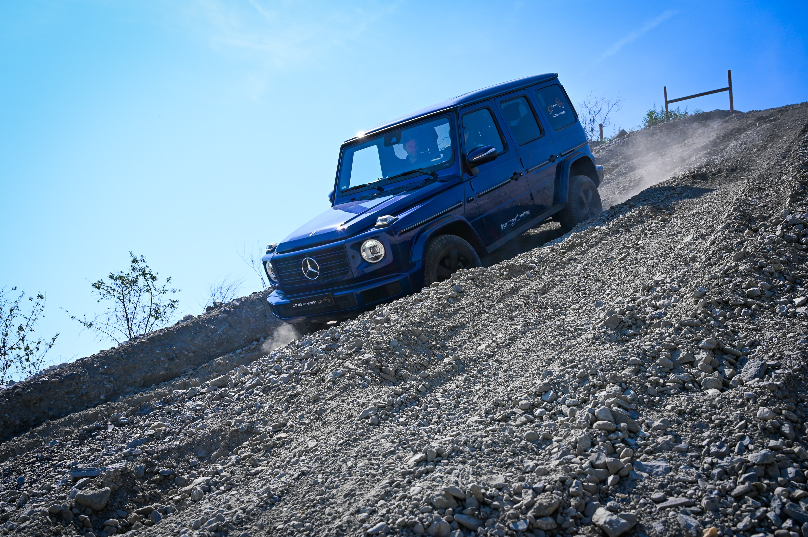 Terenska vožnja ne glede na vse tehnične presežke razreda G ni učinkovita, če voznik nima izkušenj in znanja obvladovanja avtomobila v ekstremnih razmerah kot so: strmi vzponi in spusti, bočni nakloni, plazenje oziroma plezanje preko skal, debel, bredenje po vodi ali blatu … še tako zmogljiv avto ob nepravilni ali nepravočasni uporabi pomagal lahko obtiči ali se na strmem pobočju prevrne celo pri hitrosti manjši od pešca. Mercedes je zato le streljaj od od mednarodnega letališča v Gradcu zgradil zelo atraktiven in tehnično zahteven terenski poligon z pravo goro na katero vodijo strme poti različnih podlag. Marsikateri kupec mercedesa G sploh ne zna uporabljati diferencialnih zapor in svojega terenca še nikoli ni preizkusil v razmerah, za katere je bil dejansko narejen. Na poligonu, ki ga bo od oktobra dalje lahko obiskal vsakdo, ki se bo prijavil na spletni strani, bo mogoče pod nadzorom izkušenih testnih voznikov opraviti celovit program terenske vožnje, ki vključuje tudi tiste najtežje elemente: denimo vzpone in spuste po 100-odstotni strmini in plezanje preko skal, ki simulirajo zahtevnost gore Schöckl.