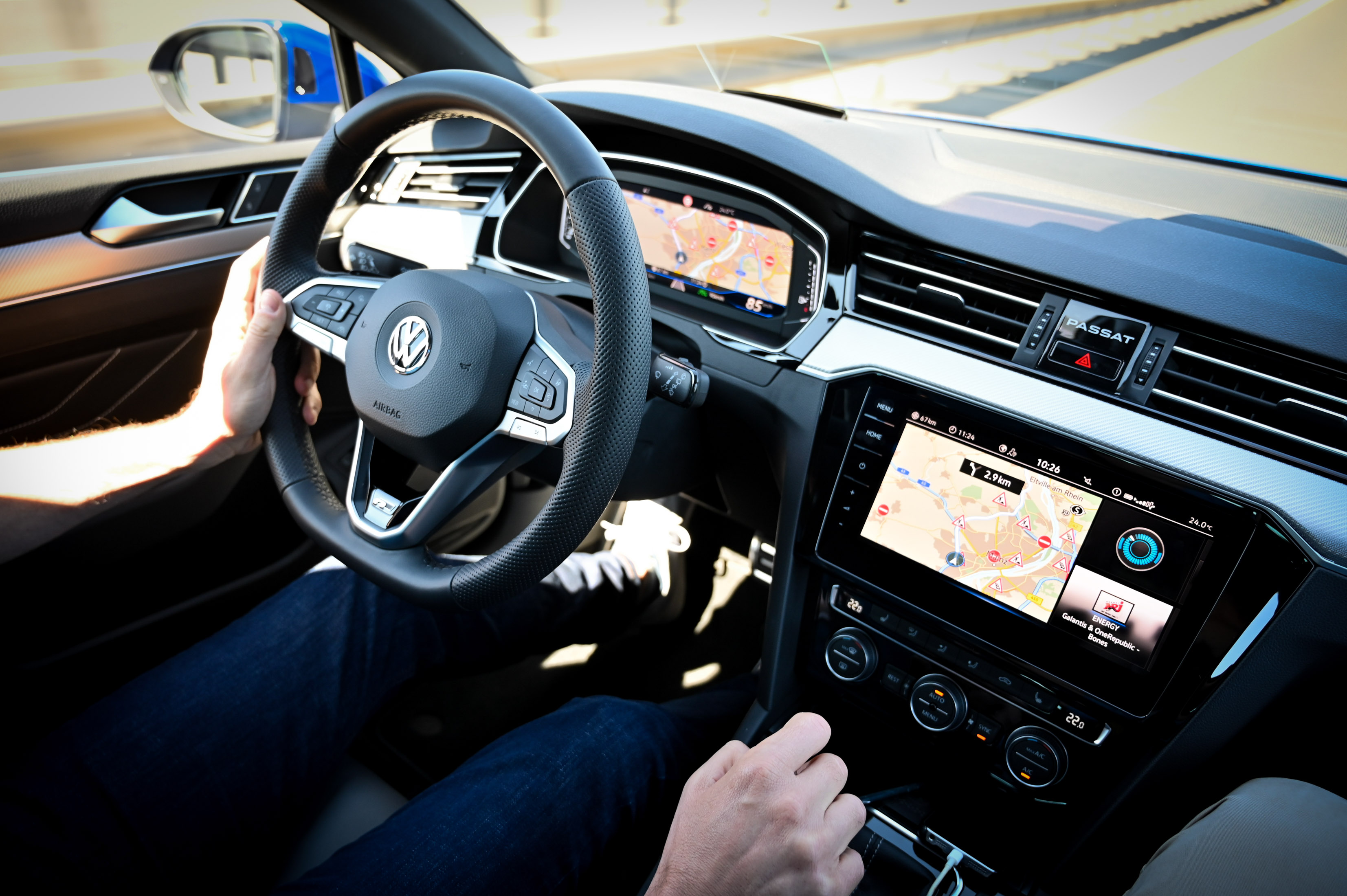 V notranjosti bolj kot izbor dopolnjenih materialov prepriča nabor nove elektronike. Voznikov delovni prostor je estetsko digitalen in - kot smo v passatu vajeni - ergonomsko brezhiben. Stikal je manj, a so točno tam, kjer morajo biti. Nova generacija uporabniškega vmesnika MIB3 digitalne merilnike dela še odzivnejše, preglednejše in bolj ločljive.
