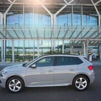 Precej bolj kot s podobo kamiq izstopa s prostorom in nekaterimi drugimi lastnostmi. V Mladá Boleslav so znova odlično izkoristili prilagodljivost platforme MQB-A0, na kateri sta narejena tudi VW T-cross in seat arona. Kamiq je namreč s 424,1 centimetra za dobrih deset centimetrov daljši od obeh neposrednih koncernskih tekmecev. Medosna razdalja 265,1 centimetra je za 2 centimetra daljša kot v scali in za dober centimeter daljša celo od medosne razdalje večjega brata karoqa.