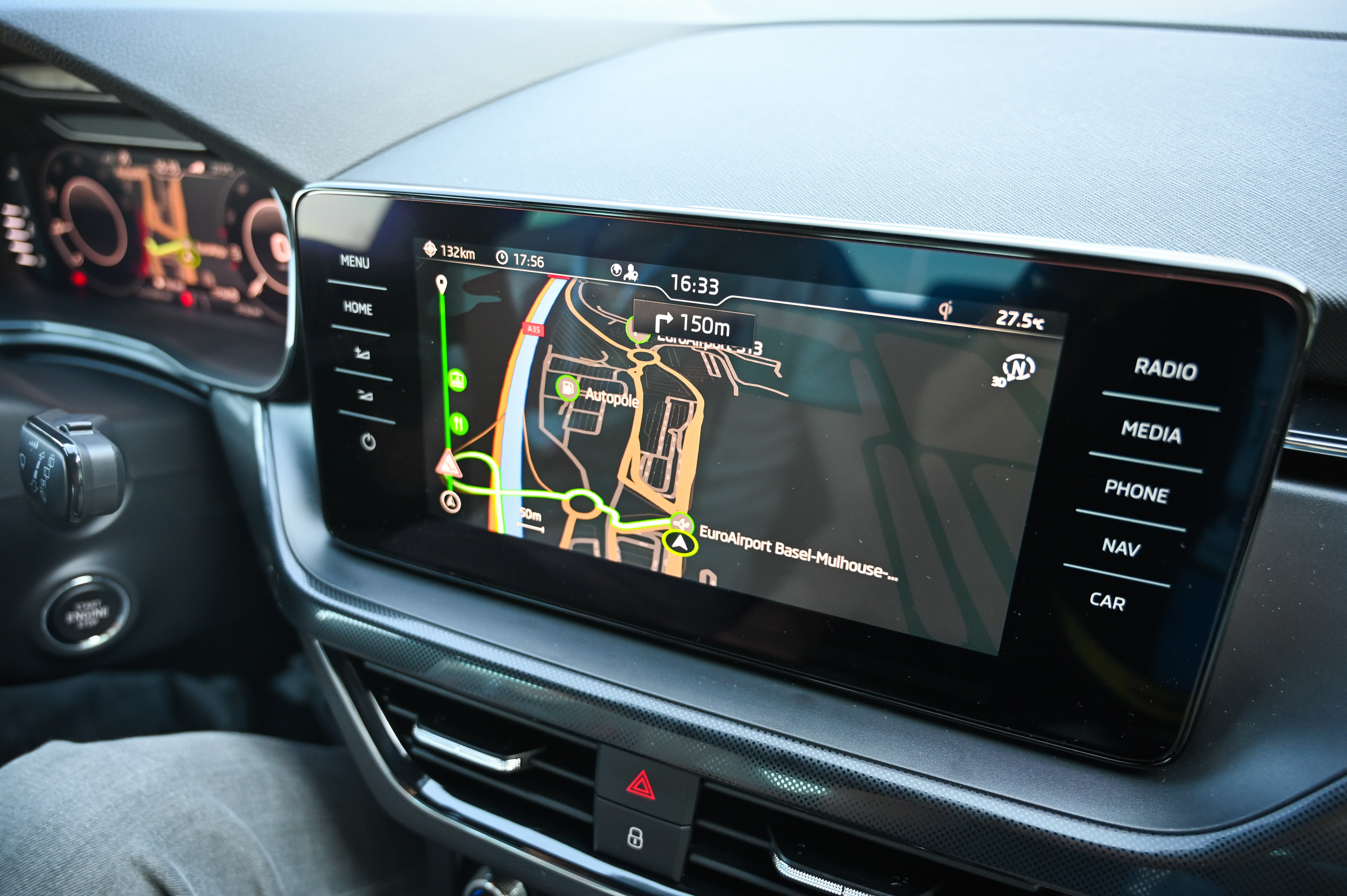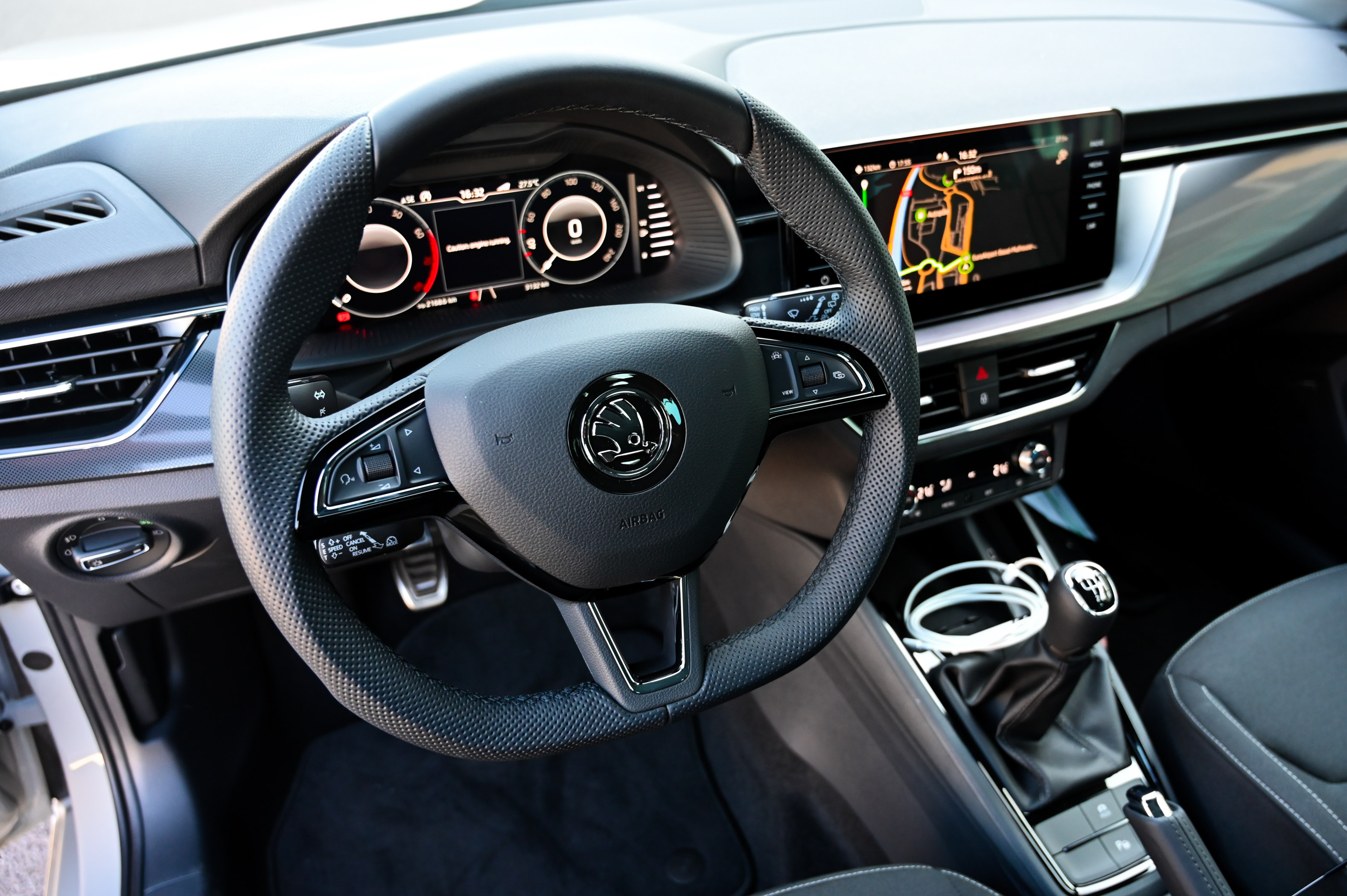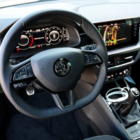 V potniški kabini velja izpostaviti preglednost, ergonomsko doslednost in dobro izdelavo. V Škodinem malem velikanu se sedi razmeroma visoko, saj v primerjavi s scalo stoji skoraj 4 centimetre višje nad cesto, kar pomeni, da zmore “prestopiti” kakšen višji robnik in predvsem omogoča udobno sedanje v avto.