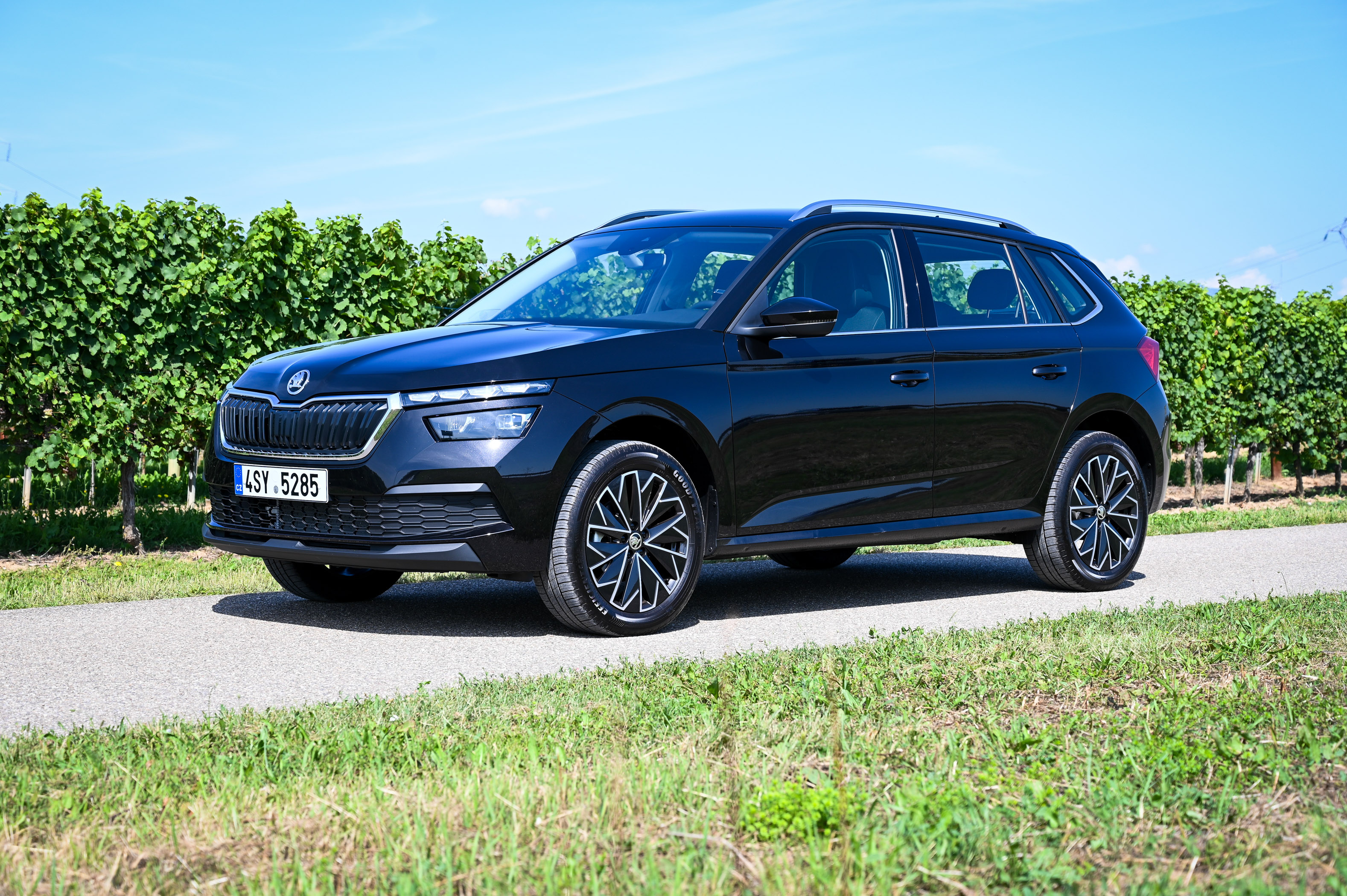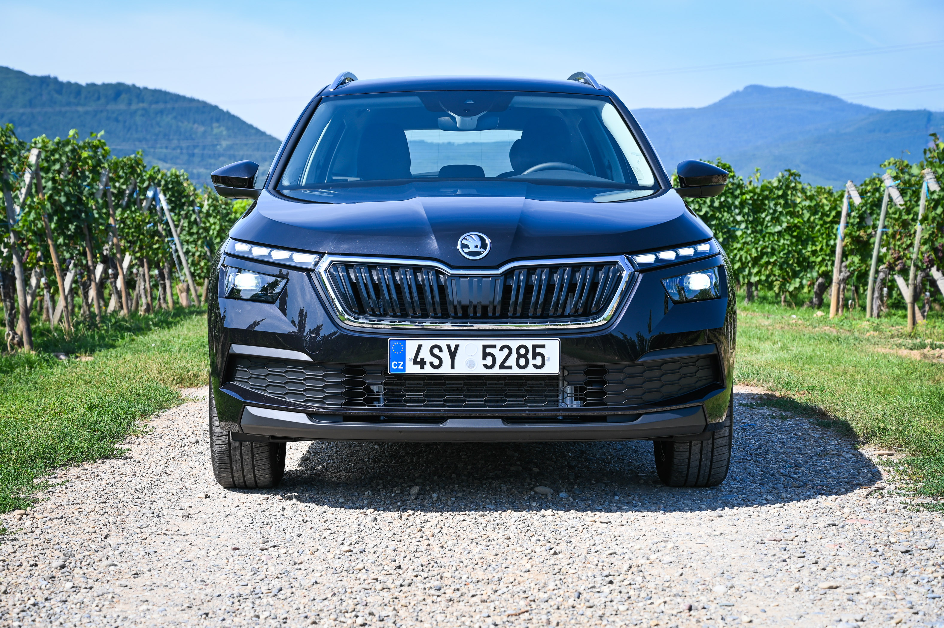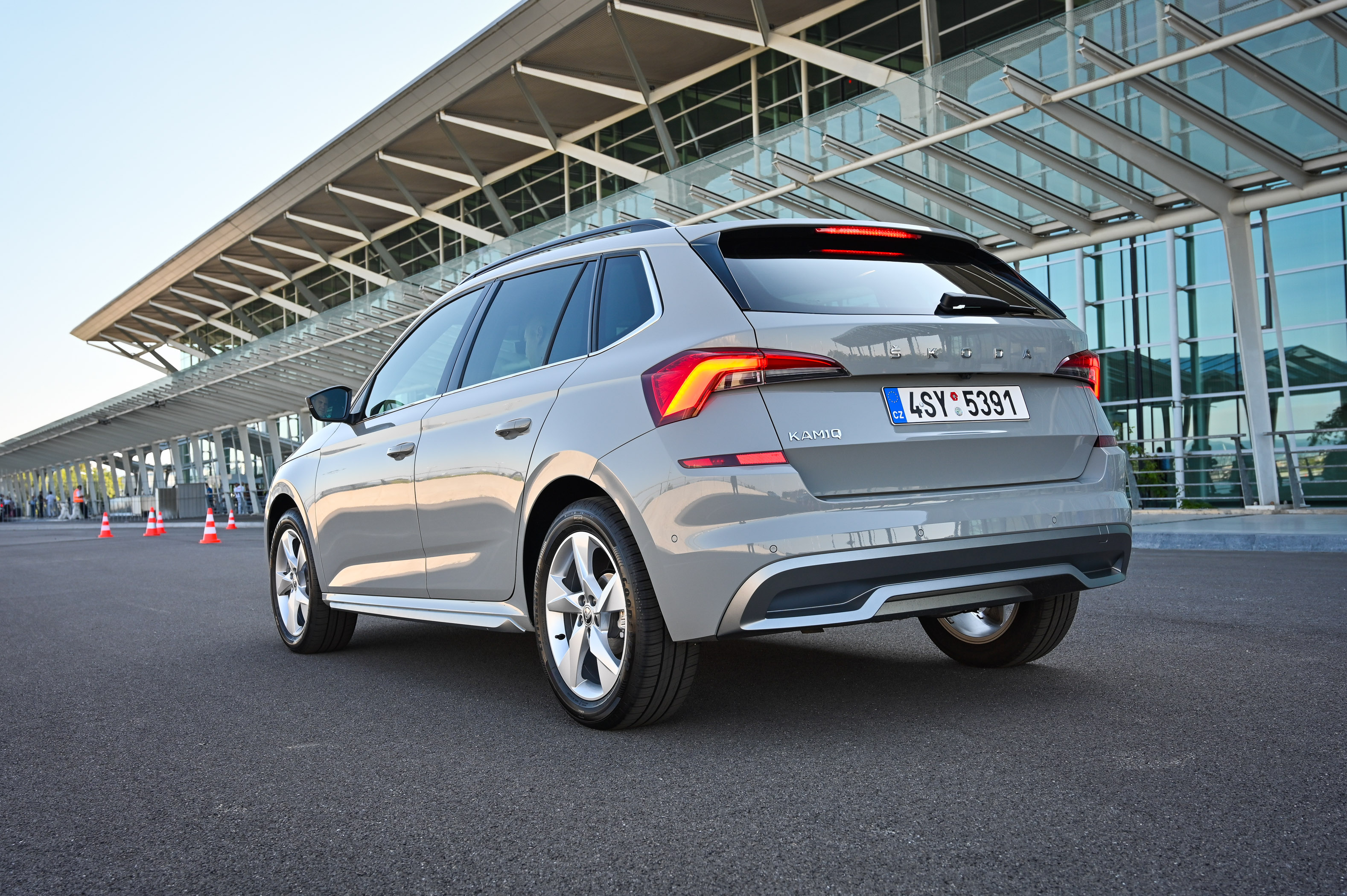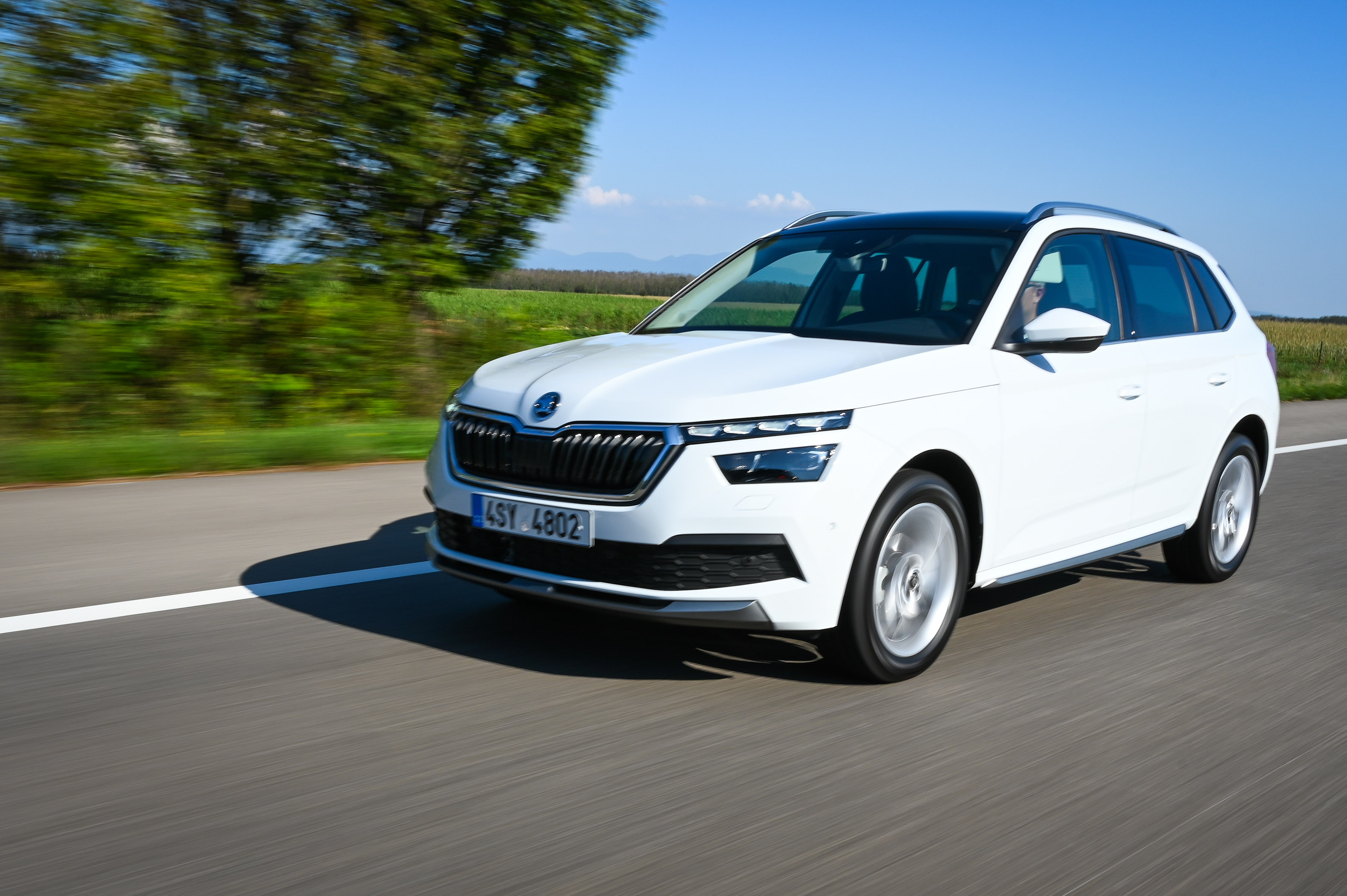 Med ovinki avto postreže z zanesljivo lego na cesti in dovolj natančno vodljivostjo, da je vožnja lahkotna in nenaporna. Asistenčni sistemi delujejo zanesljivo, avto pa se dobro počuti tako v mestu kot na odprti cesti. Zaledje koncernske tehnologije mu zagotavlja izdatno varnostno opremo - vključno s pametnimi lučmi, nadzorom mrtvih kotov in aktivnim radarskim tempomatom, ki promet pred seboj spremlja vse do hitrosti 210 km/h. V serijski opremi je sistem za ohranjanje smeri in radarsko podprt sistem za preprečevanje naleta, ki zaznava tudi pešce in kolesarje. Koncernsko uniformirana je tudi motorna paleta: kamiqa lahko poganjajo litrski bencinski trivaljnik TSI (70 in 85 kW), 1,5-litrski bencinski TSI (110 kW) ali 1,6-litrski dizelski TDI (85 kW). Pozneje bo na voljo še litrski trivaljnik (66 kW) s pogonom na zemeljski plin (CNG). Je pa kamiq edini Škodin cestni terenec brez štirikolesnega pogona.