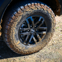 | Raptor na terenu zmore preplezati marsikaj, saj je od tal oddaljen dobrih 28 cm, ima 10-stopenjski samodejni menjalnik z reduktorjem in elektronsko nadzorovano zaporo zadnjega diferenciala. Ima tudi 6 voznih programov za vožnjo po cesti in terenu: normalni, športi, trava/makadam, snežni, blato/pesek, baja, skale. |