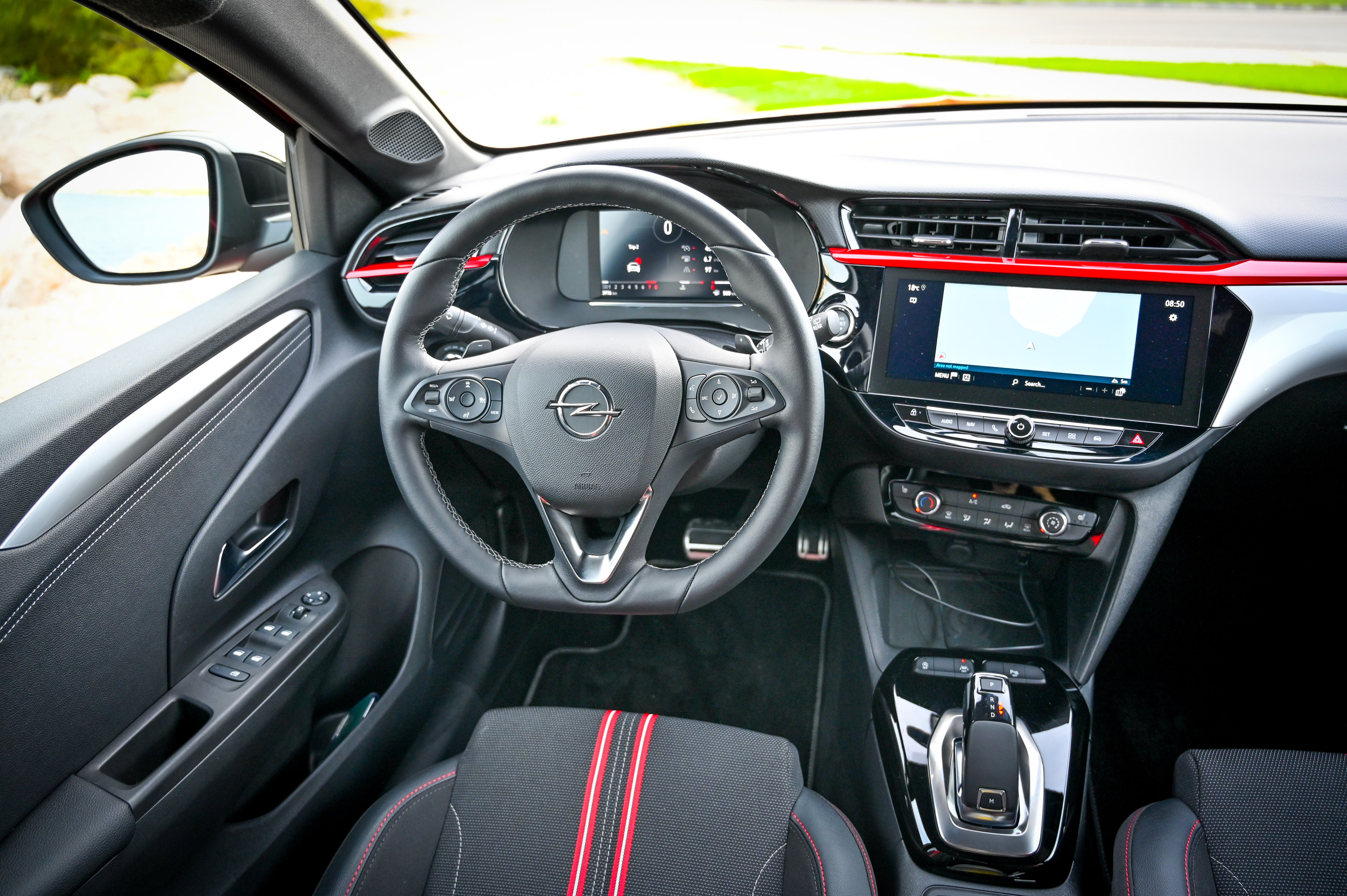 Pri Oplu še naprej izpolnjujejo obljubo zagotavljanja naprednih tehnologij za čim širši krog ljudi. Corsa ima sodobno armaturno ploščo s prilagodljivimi elektronskimi merilniki, ki pa z ločljivostjo in odzivnostjo niso na ravni najboljših. S povezljivostjo in tudi velikostjo komunikacijskega vmesnika (7 ali 10 palcev) sledi sodobnim trendom, ponuja pa še ogrevan volanski obroč in masažna sedeža. Vozniku zna na cesti pomagati s kamero in radarjem, kar pomeni, da aktivno nadzira varnostno razdaljo, preprečuje nalet, bere prometne znake, nadzira smer in mrtve kote. Je prvi majhen avtomobil, ki za dostopno ceno (600 evrov) ponuja prilagodljiva matrična LED žarometa. Preizkusili smo jih v temi in kljub svoji preprosti zasnovi delujejo presenetljivo učinkovito. Vsekakor jih priporočamo.