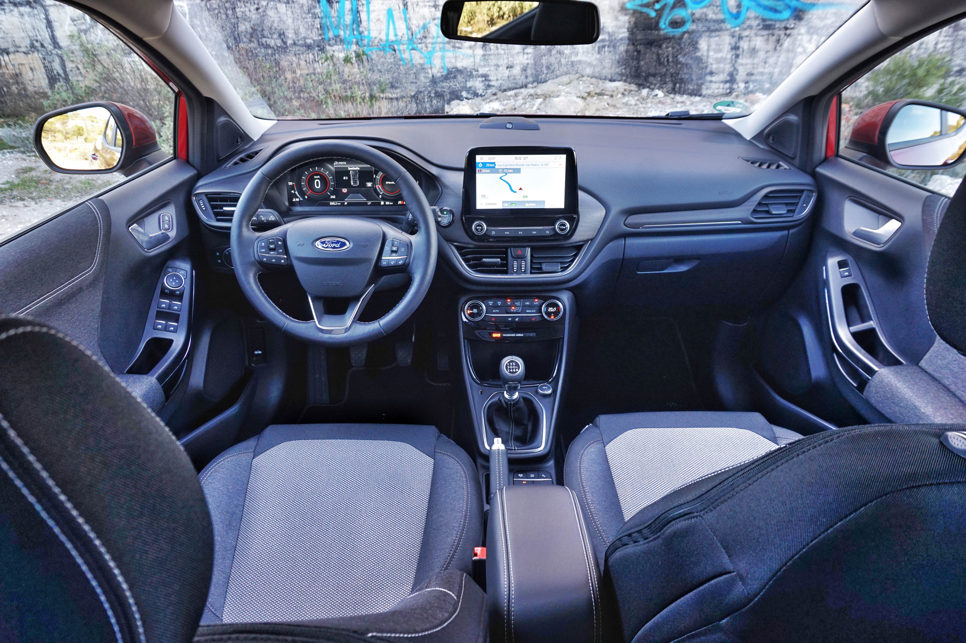 Preostalo v notranjosti je zelo podobno fiesti; na armaturni plošči kraljuje štrleč zaslon multimedijske naprave, ergonomiji ni kaj očitati, za doplačilo pa ima lahko puma digitalne merilnike. V pumi se sedi 3 cm višje kot v fiesti (za toliko avto tudi stoji dlje od tal) in za odtenek bolj pokončno, vidljivost iz avta pa kazijo kupejevsko prirezani zadnji bočni okni in majhne zadnje okno.