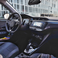 Je to slabo? Menimo, da ne: všečna, kompaktna in skladna kombilimuzinska oblika corse ne rabi “električnih” dodatkov, da bi bila privlačna. Tudi v notranjosti električna corsa ni nič drugačna od običajnih različic: sedi se dokaj nizko, položaj za volanom je udoben in naraven, voznik informacije spremlja prek digitalne armaturne plošče in zaslona miultimedijske naprave. Kar šteje, je bogata oprema; tudi corsa-e je na voljo z matričnima LED žarometoma in bogatim naborom asistenčnih sistemov.