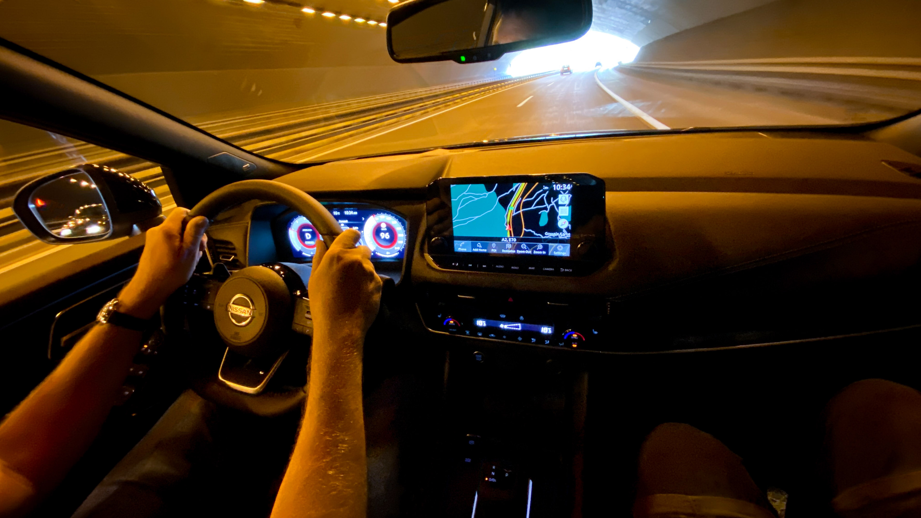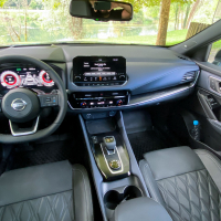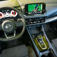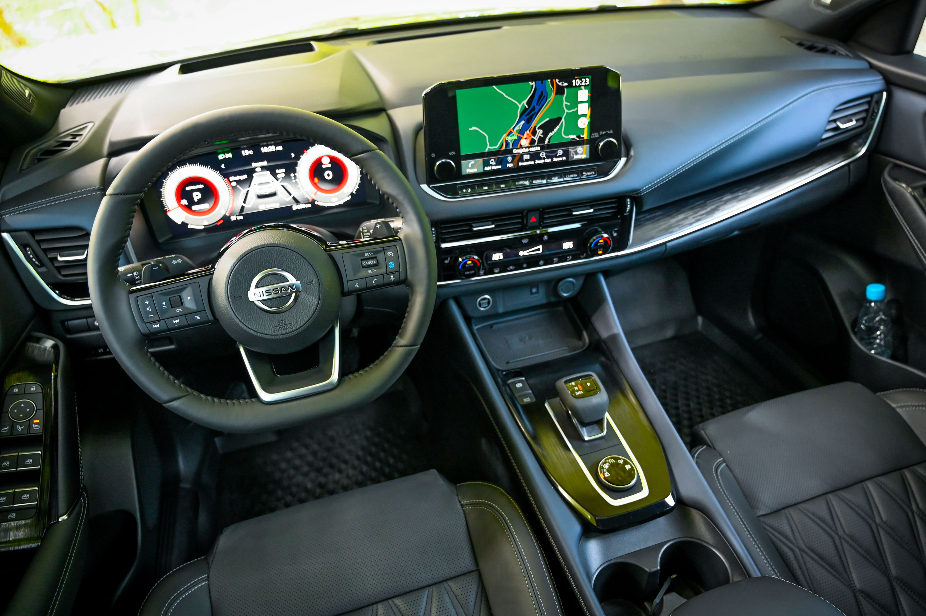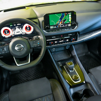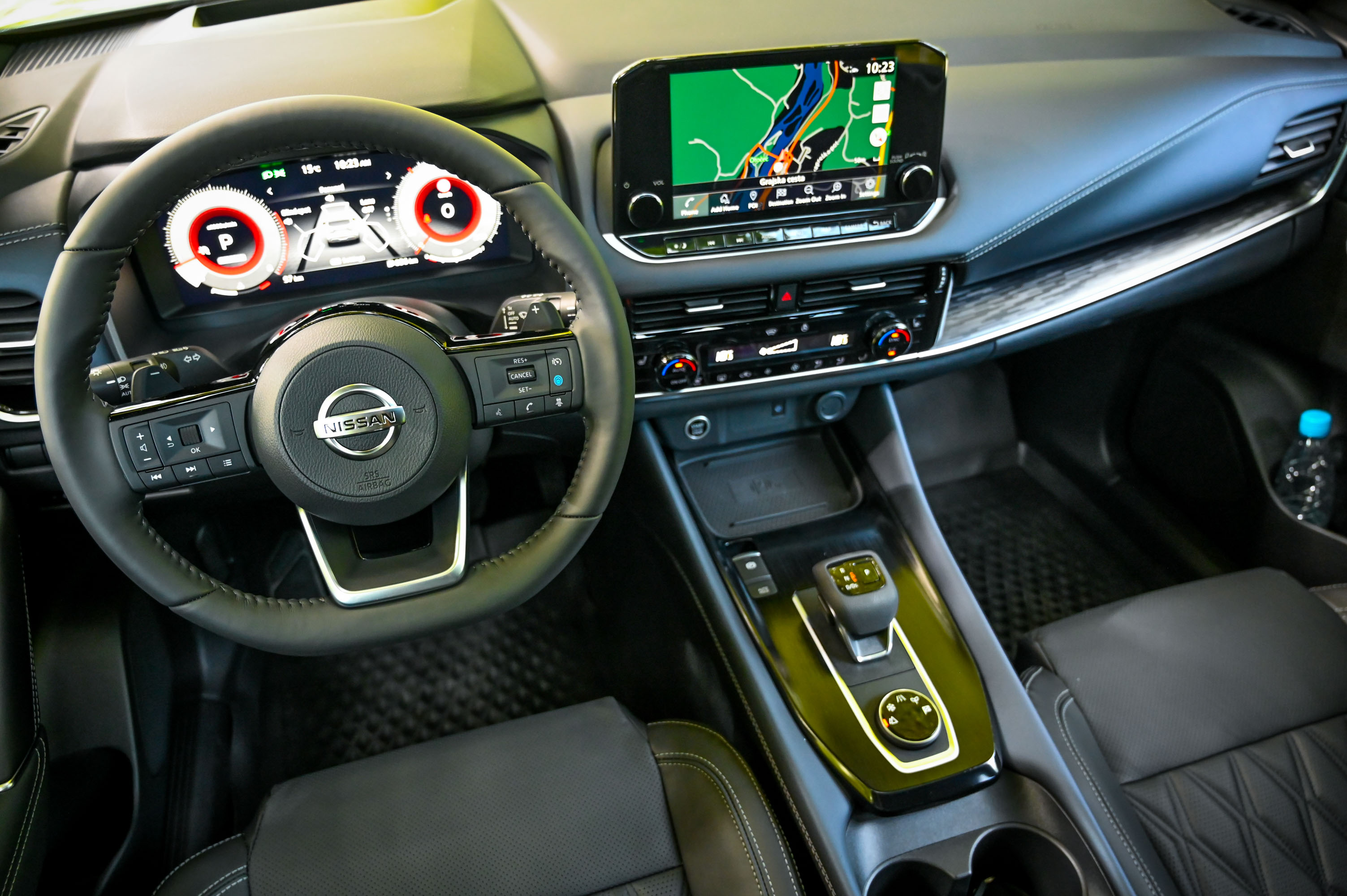 Po prvih kilometrih za volanom smo najprej zaznali občutno boljšo zvočno zatesnitev kabine, za volanom pa tudi občutno kakovostnejšo izdelavo in izbor materialov. Kabina daje precej prostoren občutek, sedežni položaj je boljši, armaturna plošča s prilagodljivimi 12,3-palčnimi digitalnimi merilniki in novim 9-palčnim zaslonom sistema nissanconnect pa postreže z vsemi sodobnimi komunikacijskimi veščinami ter dobro odzivnostjo. Za volanom ima voznik občutek, da sedi v večjem in dražjem avtomobilu. Pri tem velja izpostaviti, da ima voznik na dosegu rok še vedno na voljo tudi vsa najnujnejša stikala, s katerimi upravlja vse ključne vozniške pripomočke in samodejno klimatsko napravo. Vozniška varnost je nadgrajena ob celoviti pomoči umetne inteligence, ki vozniku pomaga na odprti cesti, v mestu in na parkirišču. Precej udobno je vstopanje v avto, sploh ker se zadnja bočna vrata odpirajo skoraj pod pravim kotom (85 stopinj). Zadaj se pri prostoru za kolena poznata dodatna dva centimetra, pridobljena med osema.