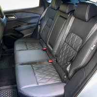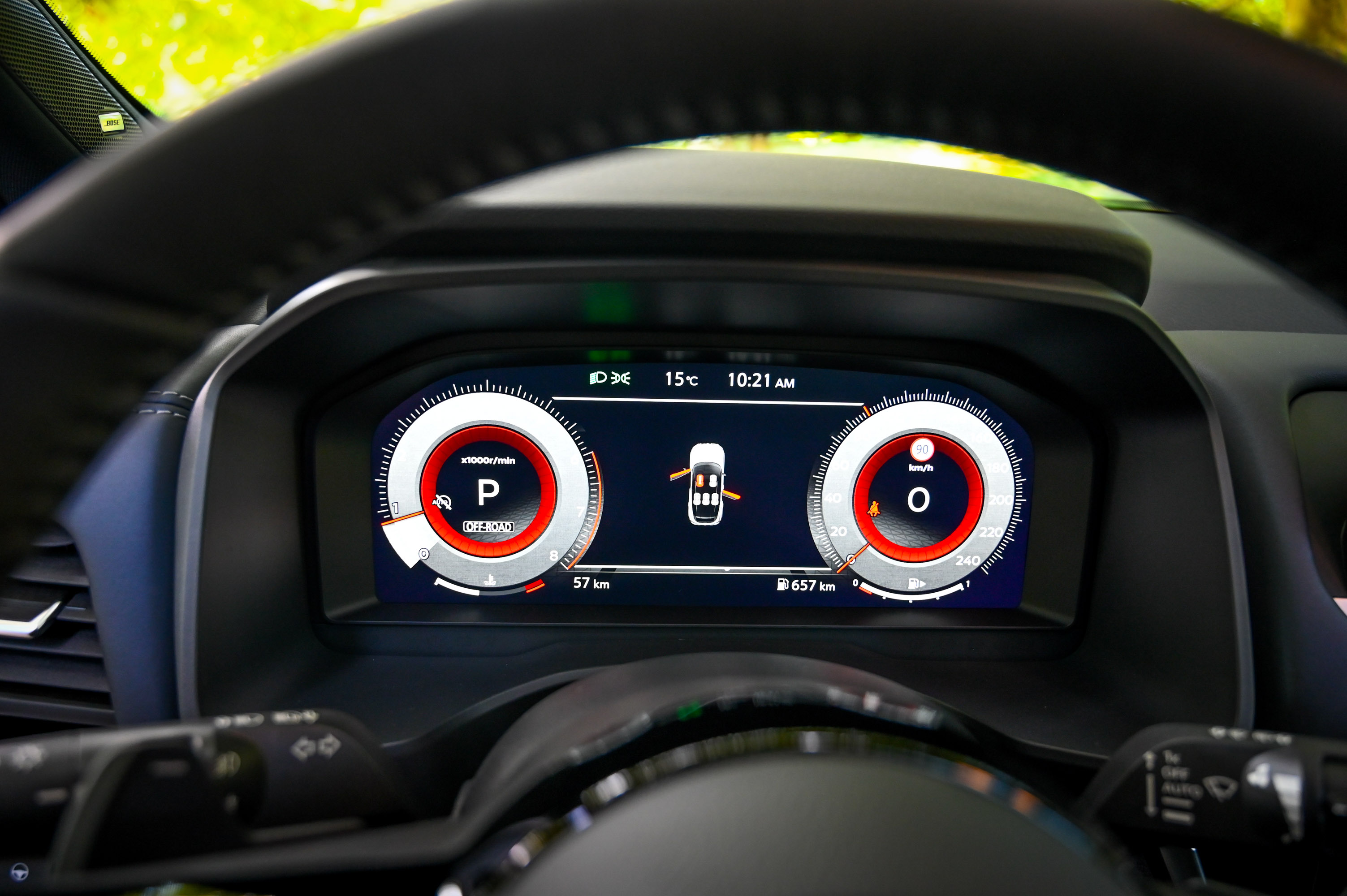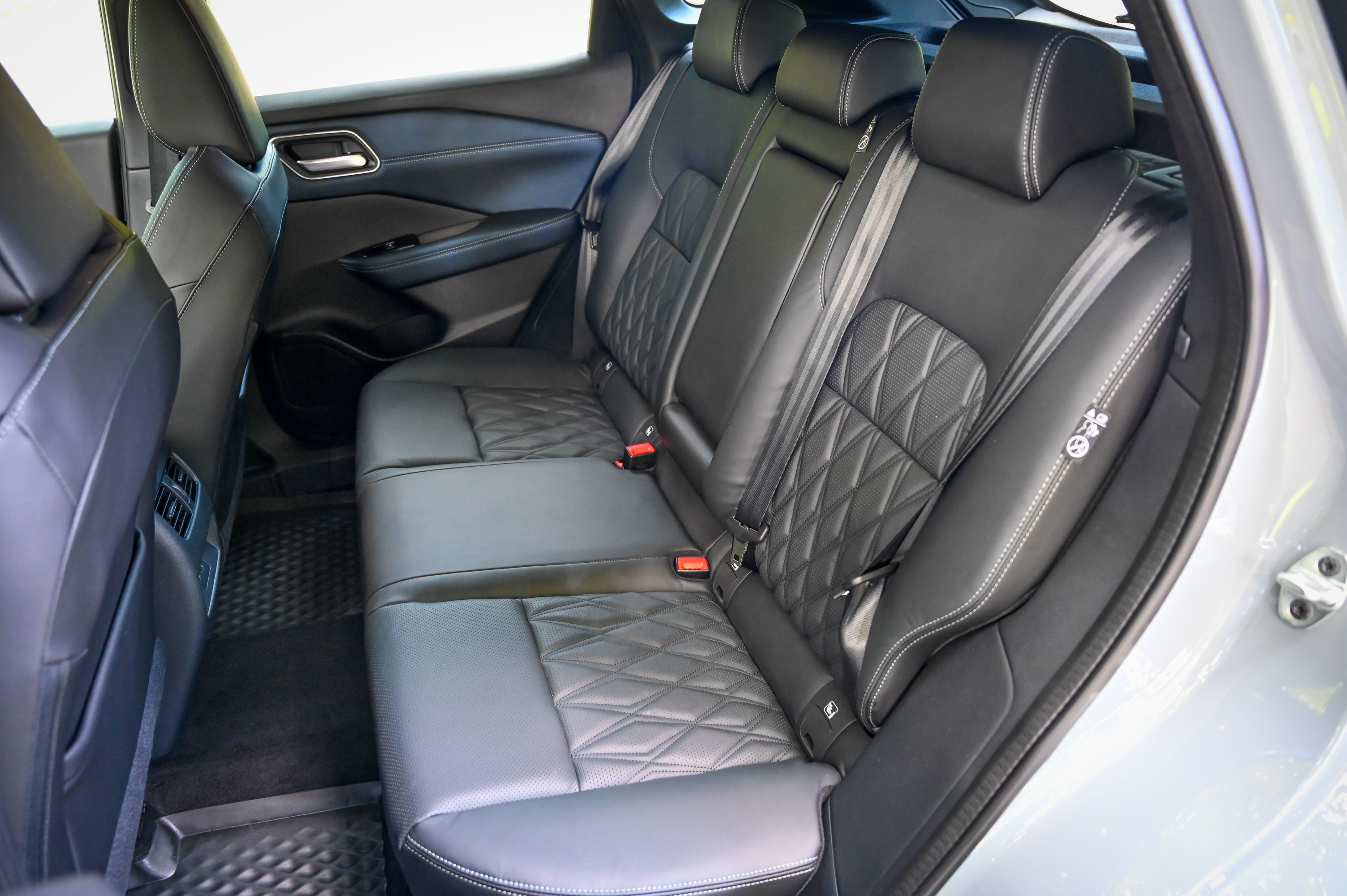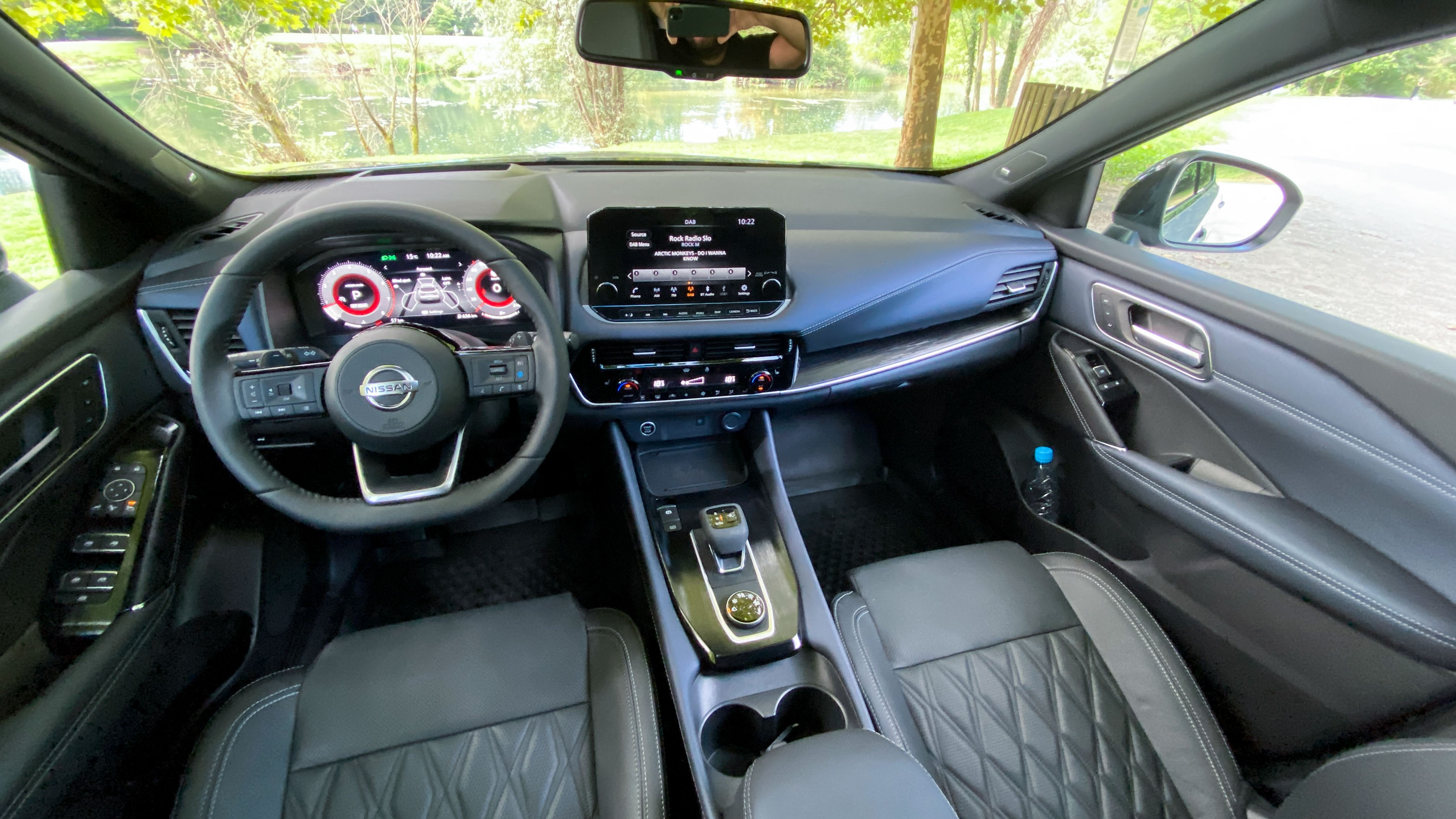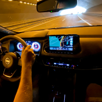 Po prvih kilometrih za volanom smo najprej zaznali občutno boljšo zvočno zatesnitev kabine, za volanom pa tudi občutno kakovostnejšo izdelavo in izbor materialov. Kabina daje precej prostoren občutek, sedežni položaj je boljši, armaturna plošča s prilagodljivimi 12,3-palčnimi digitalnimi merilniki in novim 9-palčnim zaslonom sistema nissanconnect pa postreže z vsemi sodobnimi komunikacijskimi veščinami ter dobro odzivnostjo. Za volanom ima voznik občutek, da sedi v večjem in dražjem avtomobilu. Pri tem velja izpostaviti, da ima voznik na dosegu rok še vedno na voljo tudi vsa najnujnejša stikala, s katerimi upravlja vse ključne vozniške pripomočke in samodejno klimatsko napravo. Vozniška varnost je nadgrajena ob celoviti pomoči umetne inteligence, ki vozniku pomaga na odprti cesti, v mestu in na parkirišču. Precej udobno je vstopanje v avto, sploh ker se zadnja bočna vrata odpirajo skoraj pod pravim kotom (85 stopinj). Zadaj se pri prostoru za kolena poznata dodatna dva centimetra, pridobljena med osema.