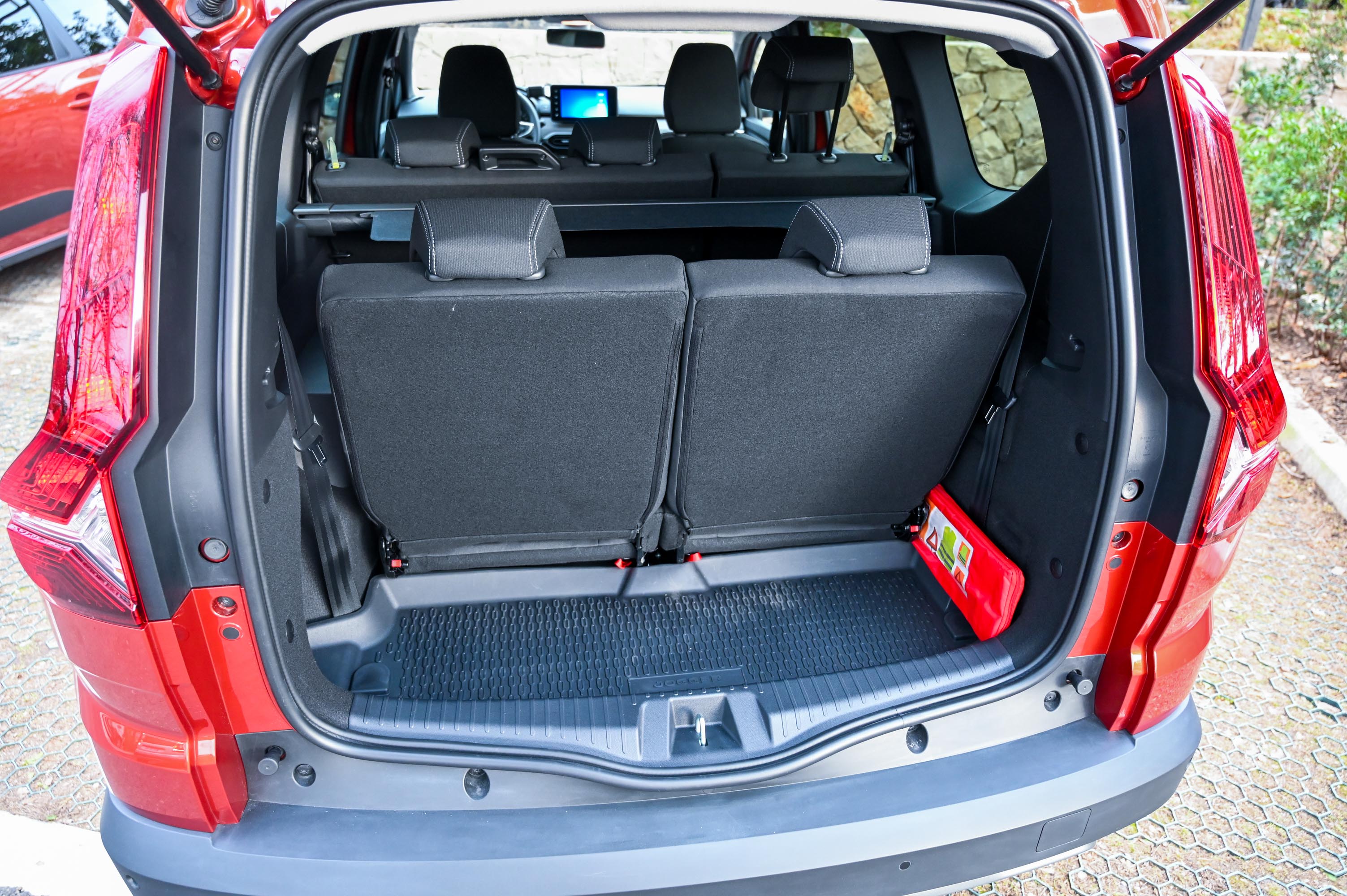 Prtljažnik je ob 5-sedežnem tlorisu ogromen, primerljiv z berlingom, rifterjem, caddyjem … Če v avtu ni tretje vrste, srednji sedeži pa so položeni v tla, v joggerju nastane dva metra dolga in meter široka ploščad, nad njo pa za več kot dva kubična metra prostora. Pohvalimo tudi pregledne merilnike, uporabniško precej enostaven 8-palčni digitalni zaslon in dobro ergonomijo z analognimi stikali za upravljanje klimatske naprave in prezračevanja. Plastika je trda, a ne deluje ceneno in je precej odporna na obrabo.