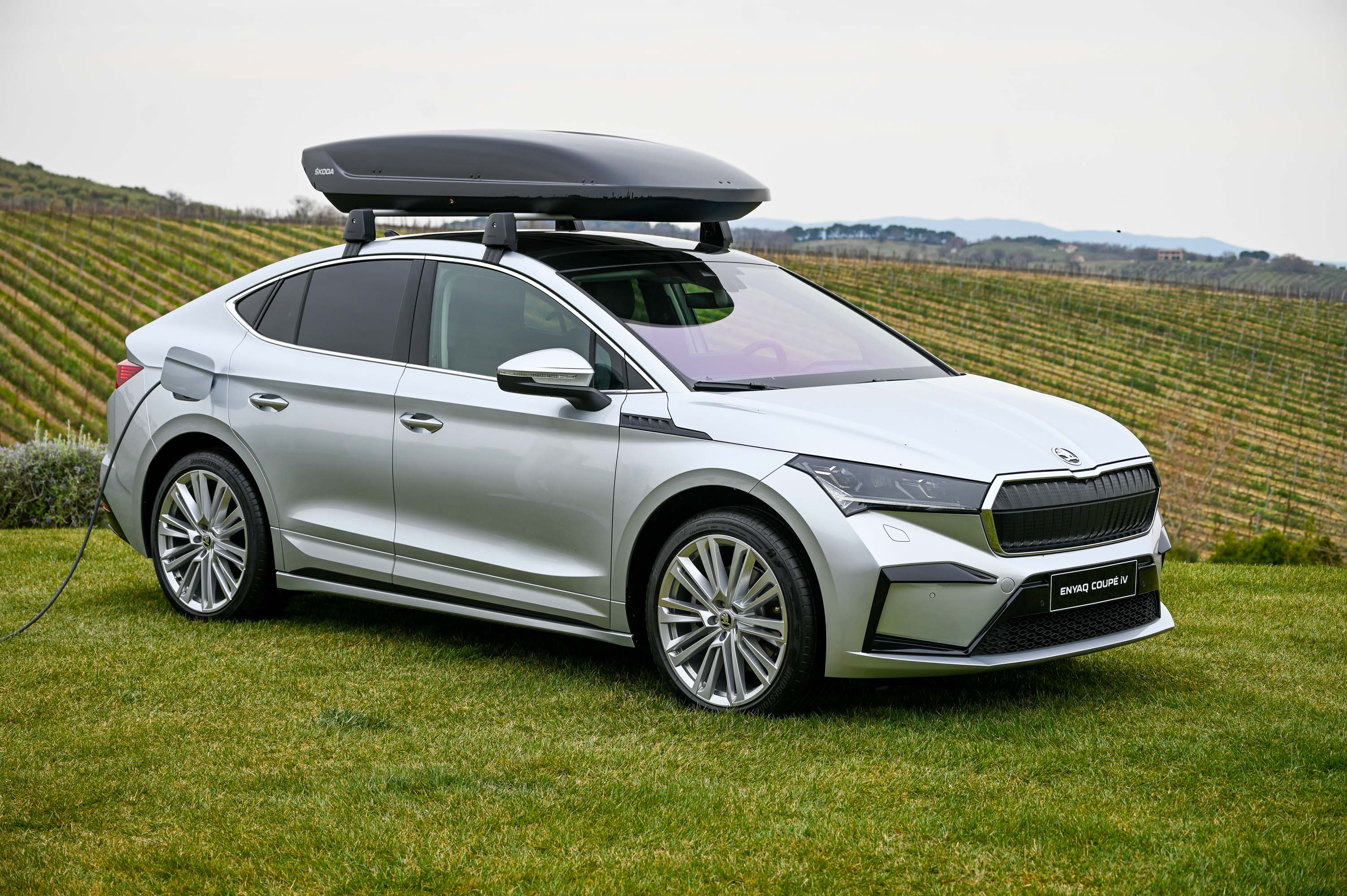 Škoda enyaq coupe iV dopolnjuje modelsko ponudbo tudi brez športne oznake RS. V primerjavi z običajnim enyaqom ima zaradi izboljšane aerodinamike v povprečju od 10 do 15 km večji doseg, ki ob najzmogljivejšem akumulatorskem sklopu (77 kWh) omogoča do 545 km dosega. Enyaq coupe je izdelan na Volkswagnovi prilagodljiv platformi za električne avtomobile MEB in po merah ter prostornosti povzema izvirnik. Vsi modeli so serijsko opremljeni s stekleno panoramsko streho, ki poskrbi, da kabina ob dobrega 2,7 metra dolgi medosni razdalji daje še večji občutek prostornosti. Zaradi tanjše panoramske strehe potniki na zadnji klopi v kupeju nimajo nič manj prostora za glave.