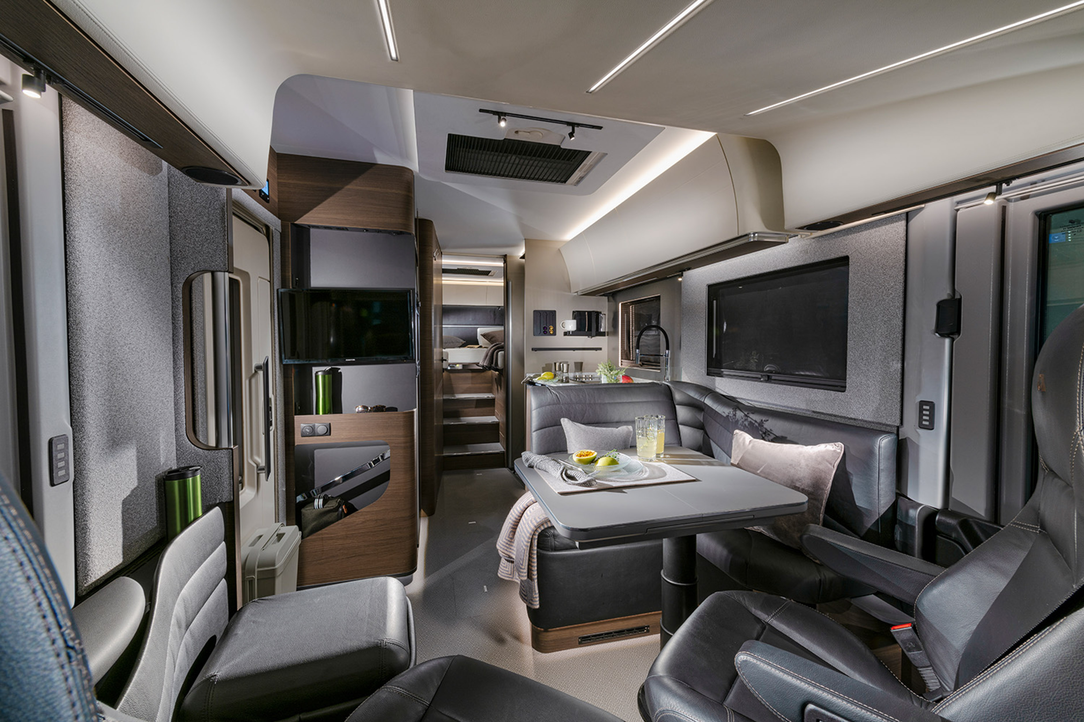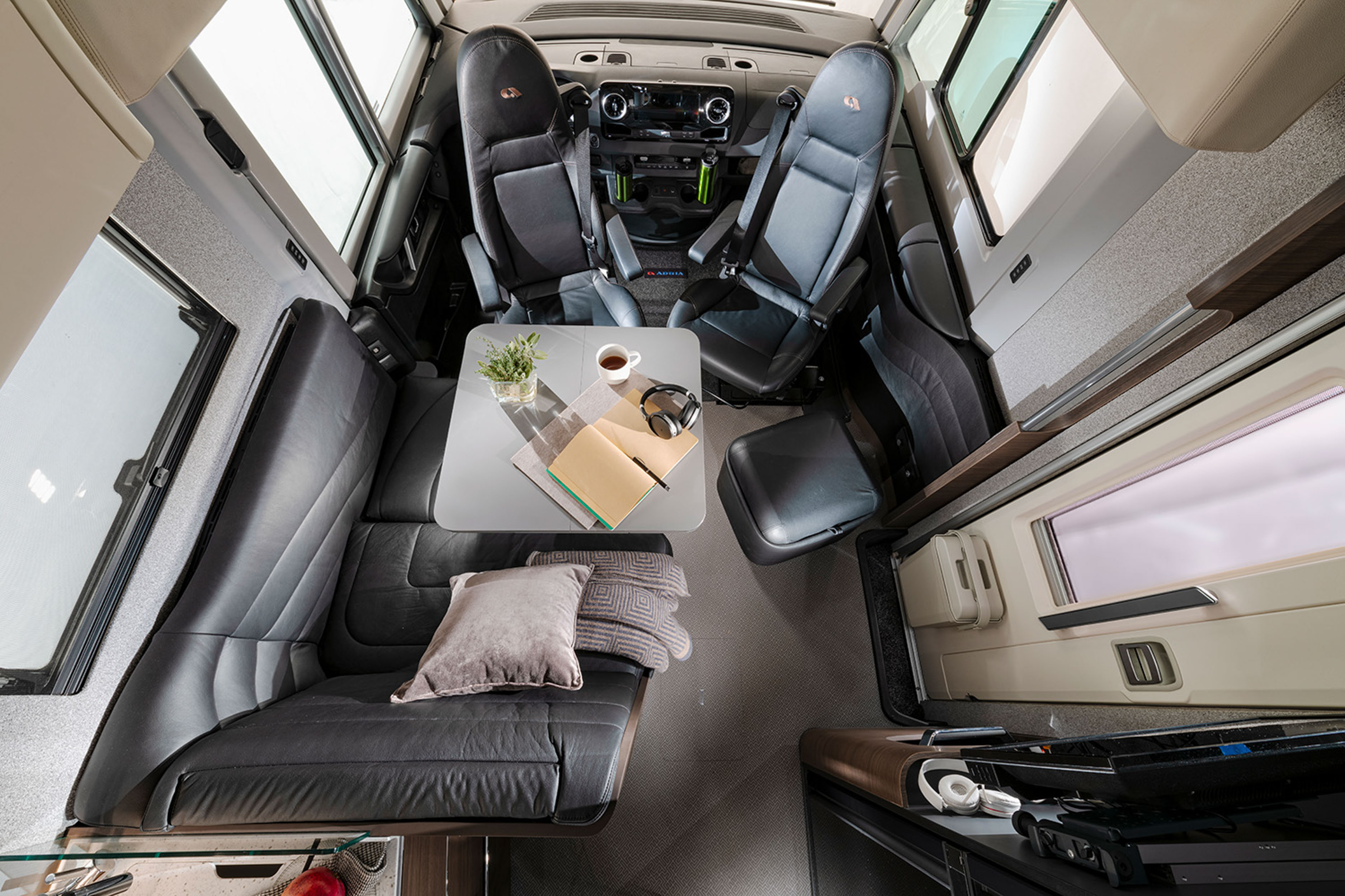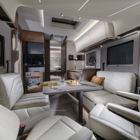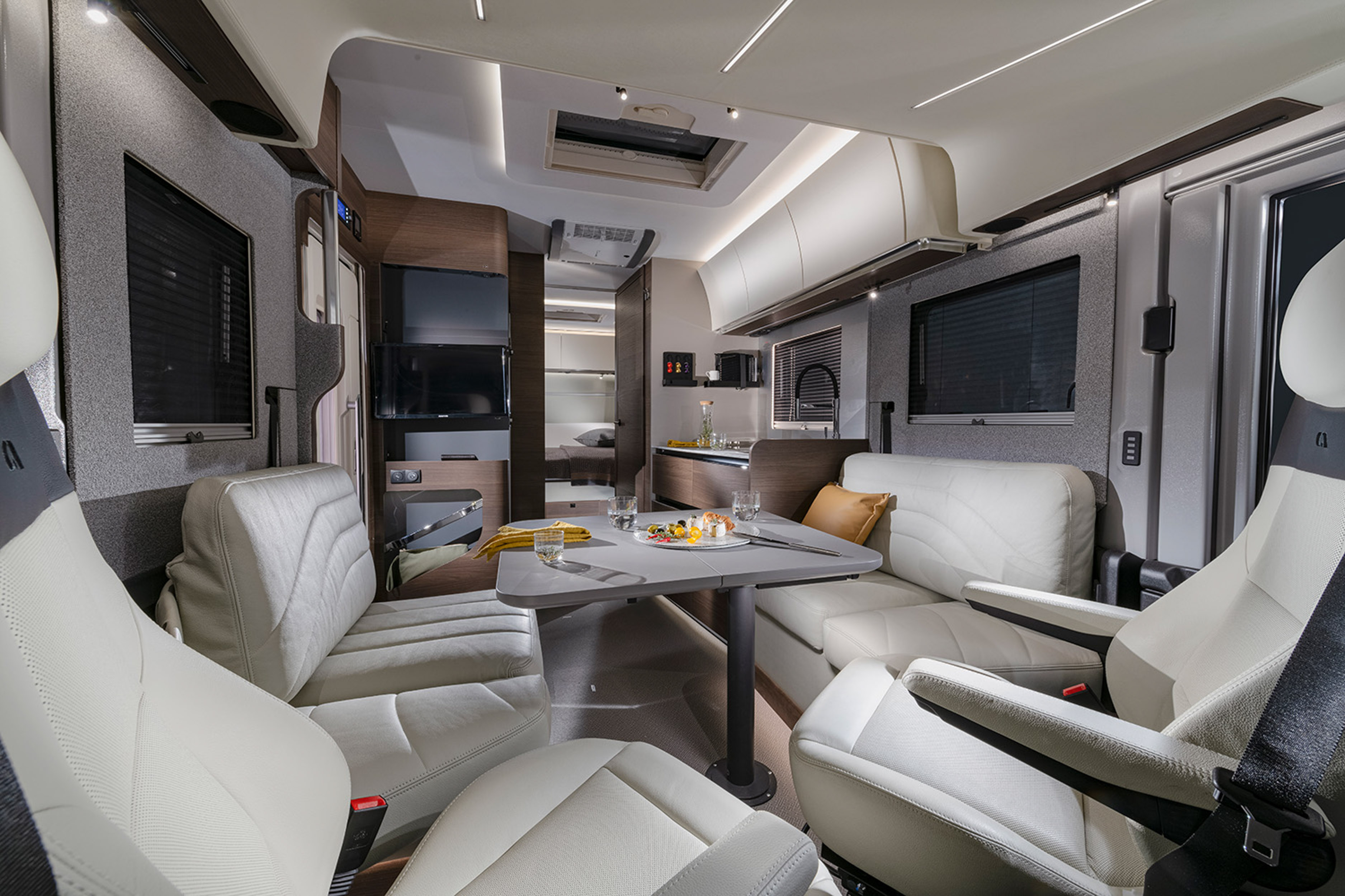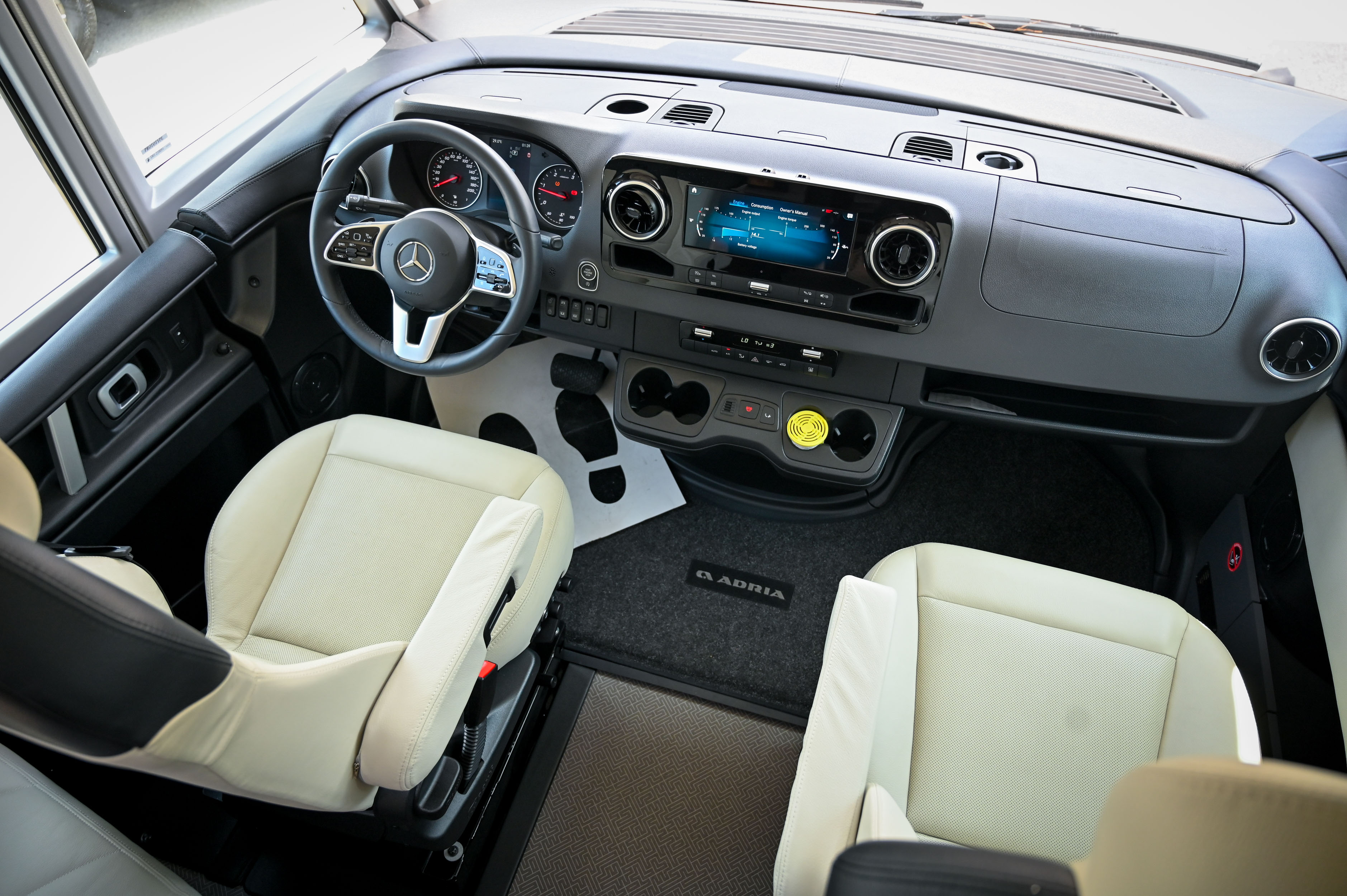 | Mercedesovemu baznemu vozilu so v Adrii namenili nadgradnjo z vrhunsko oblikovanimi tlorisi, kjer izstopajo razkošje uporabljenih materialov, pametna napeljava, talno ogrevanje, velika kopalnica, bogato opremljena kuhinja s 177-litrskim hladilnikom in zamrzovalnikom ter pečico. Pri bivalnem udobju izstopa še svetla jedilnica z sedežno garnituro, ki ima pri daljših različicah še zofo. |