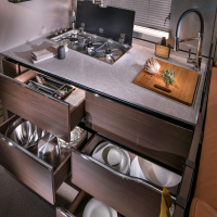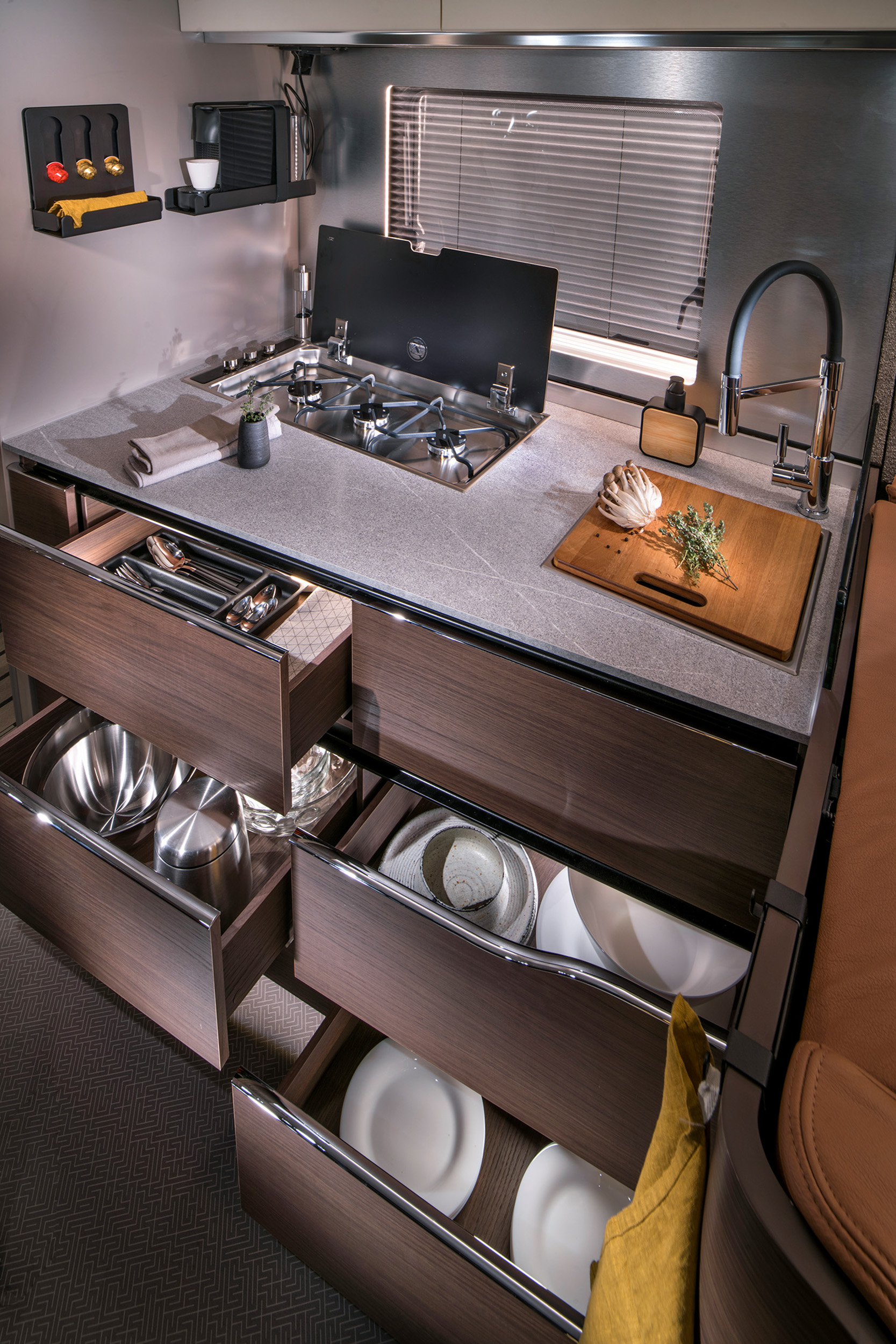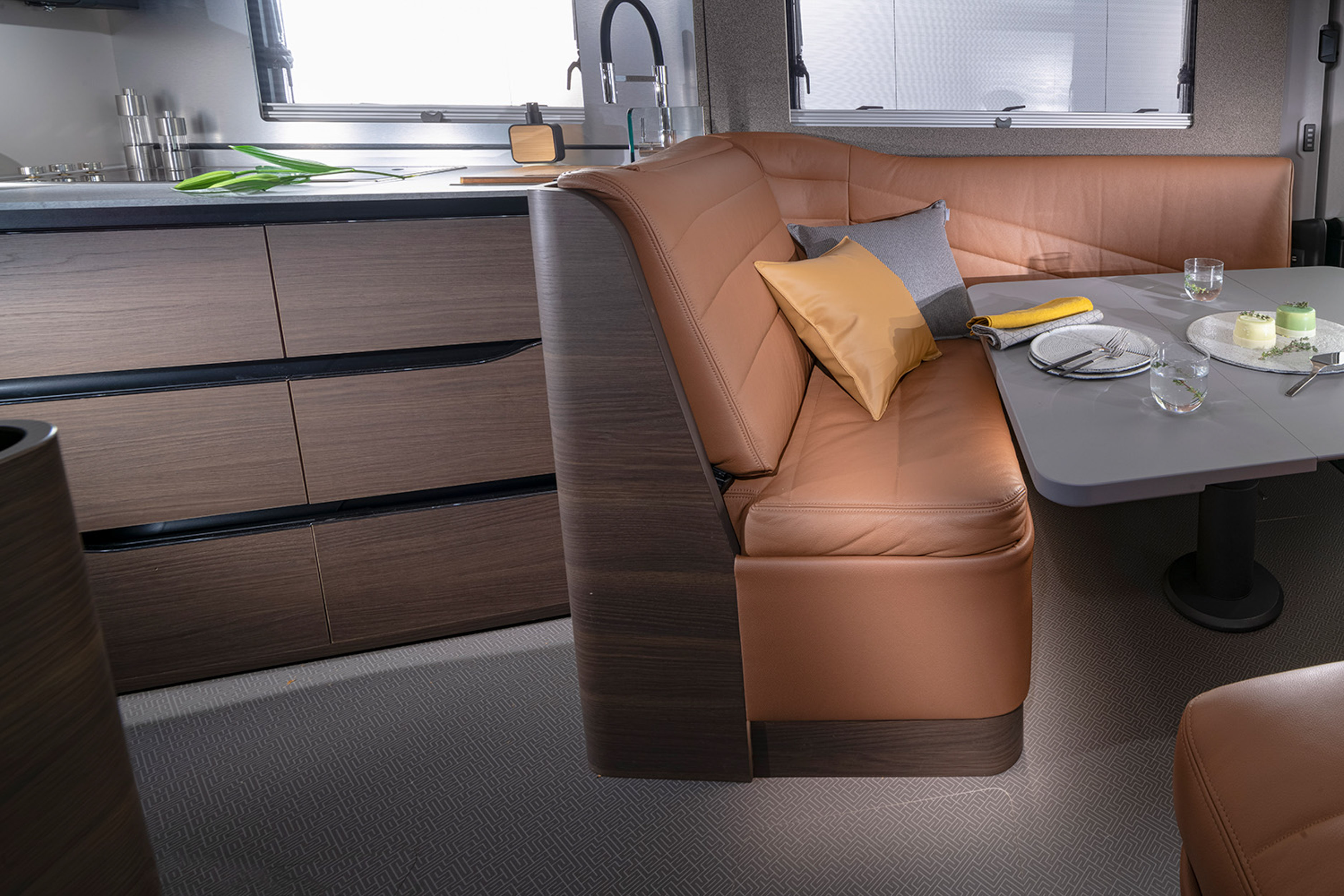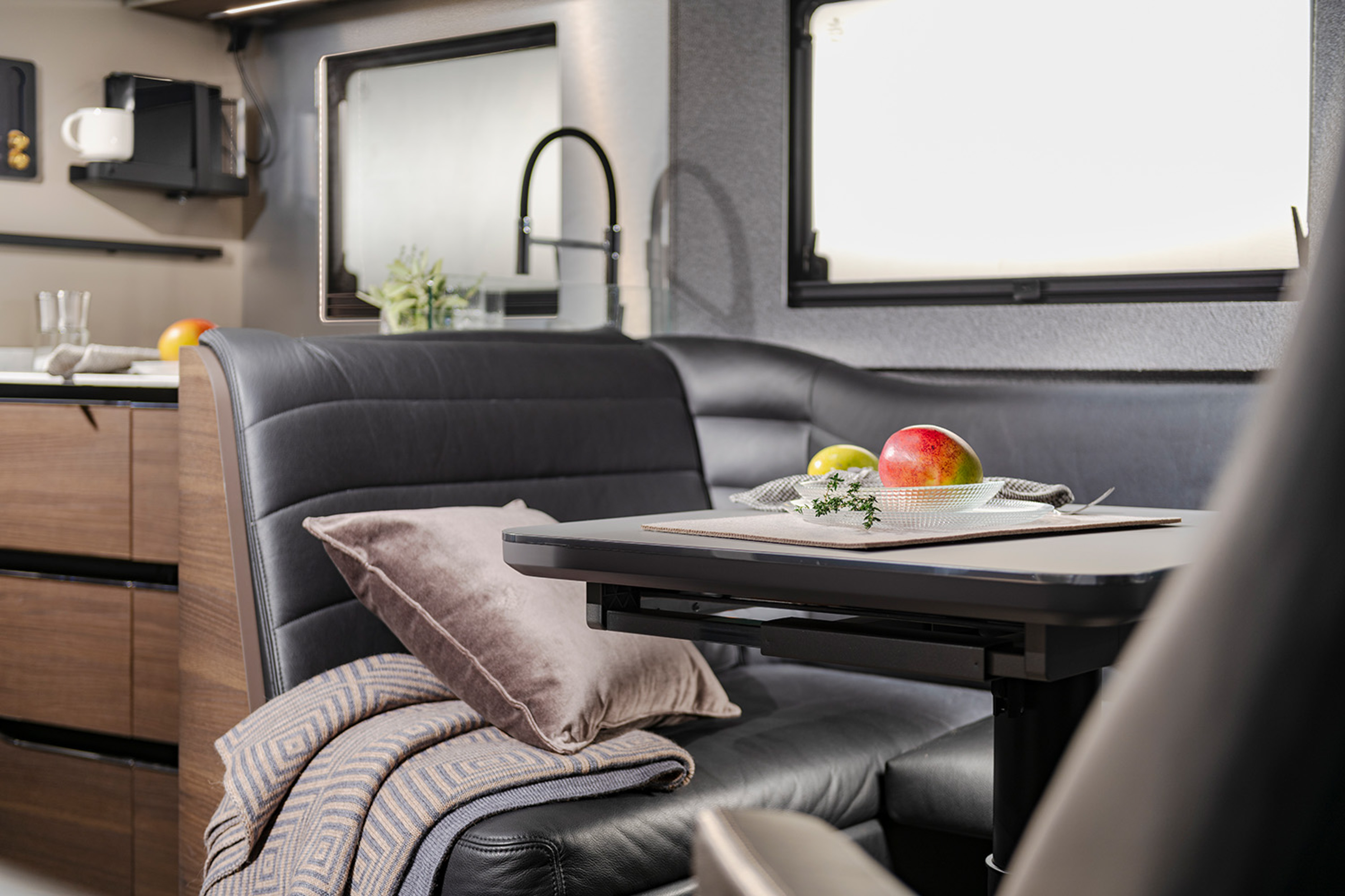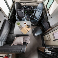 | Mercedesovemu baznemu vozilu so v Adrii namenili nadgradnjo z vrhunsko oblikovanimi tlorisi, kjer izstopajo razkošje uporabljenih materialov, pametna napeljava, talno ogrevanje, velika kopalnica, bogato opremljena kuhinja s 177-litrskim hladilnikom in zamrzovalnikom ter pečico. Pri bivalnem udobju izstopa še svetla jedilnica z sedežno garnituro, ki ima pri daljših različicah še zofo. |
