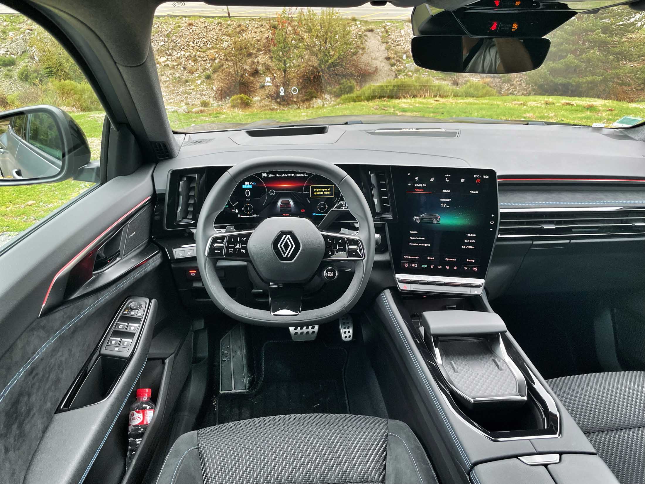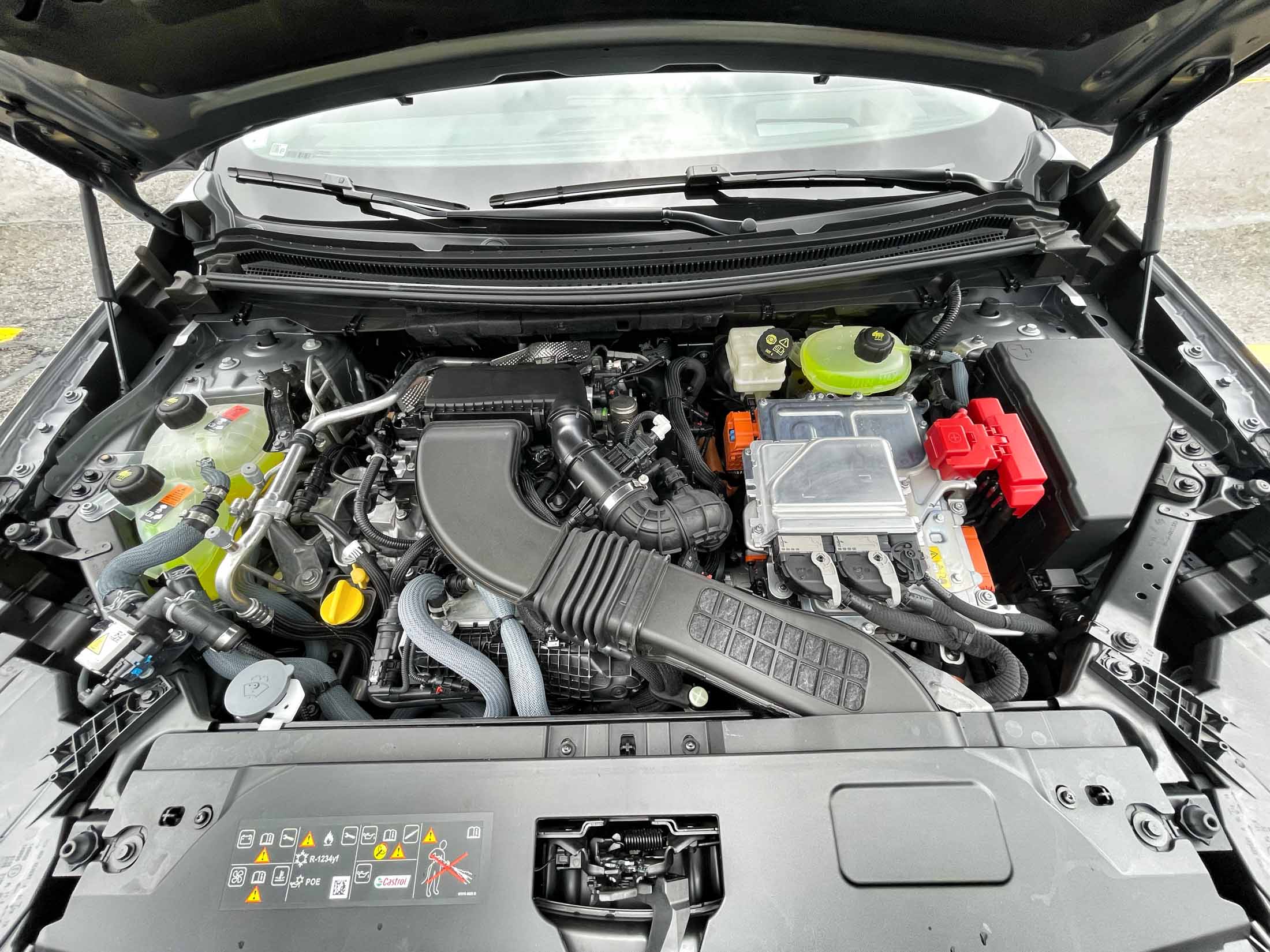 Na krstni vožnji smo imeli priložnost zapeljati le najmočnejšo hibridno različico podobne zasnove kot v hibridnem cliu, capturju in meganu conquestu e-tech, a s precejšnjo razliko: namesto 1,6-litrskega bencinskega štirivaljnika hibridni sklop sestavljajo nov 1,2-litrski bencinski turbo trivaljnik, manjši električni motor, ki deluje kot generator in izenačevalnik vrtljajev, večji pogonski električni motor in menjalniški sklop brez sklopke, v katerem so štiri prestave namenjene bencinskemu motorju, dve pa električnemu. Krmilna elektronika krmari med 15 različnimi pogonskimi kombinacijami menjalnika (eni več kot pri starejšem hibridnem e-tech sklopu), skupaj z večjim 2 kWh akumulatorjem (napetosti 400 V) zagotavlja več časa v električnem režimu, pa tudi manjšo porabo goriva - pri Renaultu obljubljajo porabo med 4 in 5 l/100 km, med našo vožnjo po gorski cesti pa je bila nekaj višja. Novi hibridni sklop bo na voljo v dveh zmogljivostnih različicah - s 146 in 116 kW -, na voljo pa bodo še tri druge, prav tako hibridne različice; blagi hibrid z 1,2-litrskim turbo trivaljnikom in 48-voltnim litij-ionskim akumulatorjem zmore 96 kW in prednji kolesi poganja prek ročnega šeststopenjskega menjalnika, poznani blago-hibridni 1,3-litrski turbo štirivaljnik s 118 in s 103 kW pa bo na voljo s CVT ali z ročnim menjalnikom. Dizelskega motorja ni več v ponudbi.