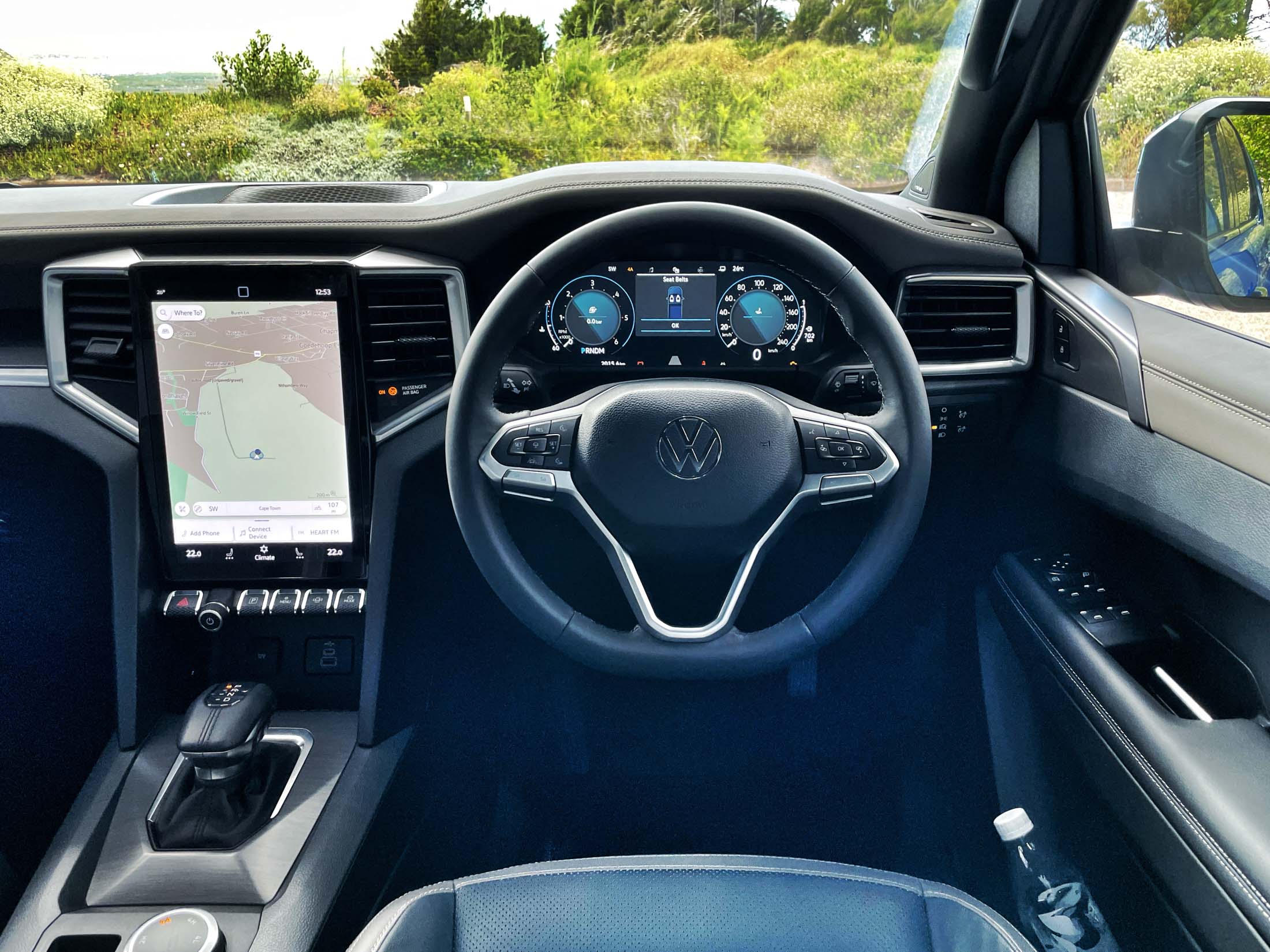 Pick-upi že dolgo niso več le delovna in tovorna vozila; amarok sicer zmore vse tovorne naloge, a zelo dobro lahko služi tudi kot mogočen, a zelo udoben avto za osebno uporabo. Kako udoben in avtomobilski je postal amarok, priča seznam opreme in dodatkov, ki sega od odličnih električno pomičnih prednjih sedežev do zelo dobrega zvočnega sistema Harman & Kardon. Njegov gornji del armaturne plošče je oblečen v umetno usnje s poudarjenimi šivi, korak s časom pa je ujel tudi z multimedijsko in komunikacijsko opremo - z na dotik občutljivim zaslonom na sredini armaturne plošče, z digitalnimi merilniki in veliko opreme, kakršne smo vajeni iz (dražjih) avtomobilov. Kot zanimivost velja omeniti, da ima amarok kot prvi in edini volkswagen pokonci postavljen zaslon multimedijske naprave, ki na Fordovo poreklo opozarja tudi z za VW netipično zasnovo uporabniškega vmesnika, ki deluje odzivno in je bogat z informacijami.
