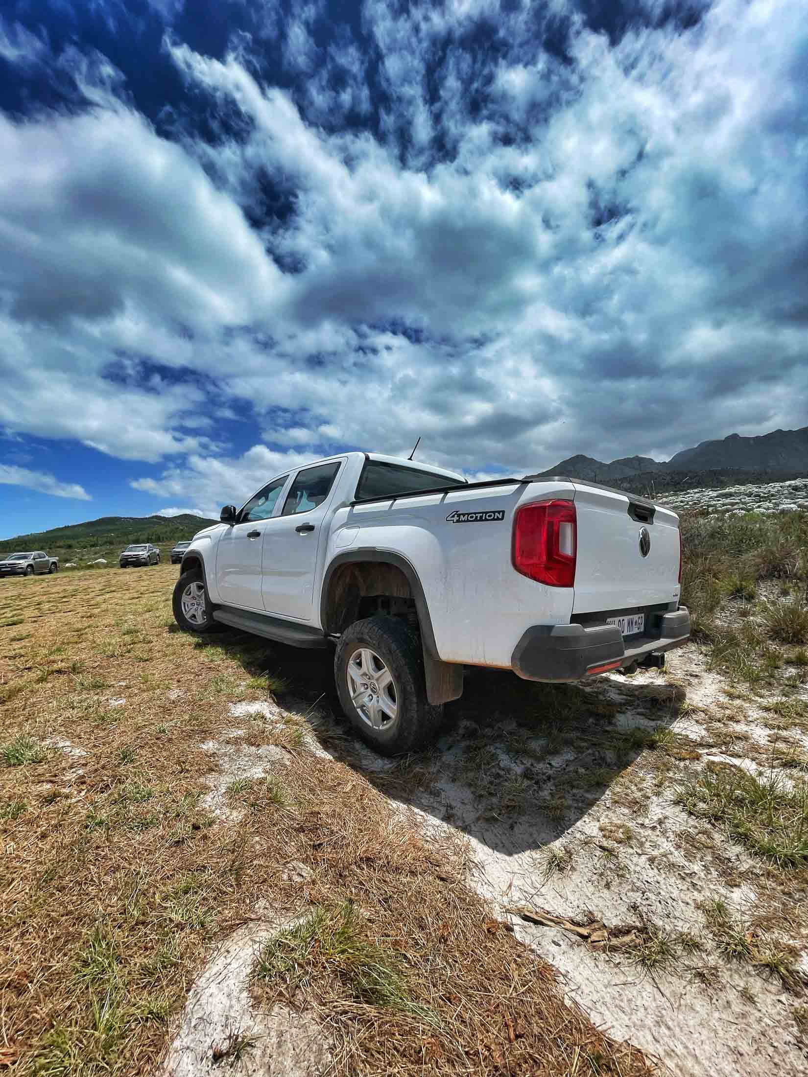 | Na krstni vožnji smo večino kilometrov prevozili za volanom najmočnejšega amaroka z dizelskim V6, 10-stopenjskim menjalnikom in najzmogljivejšim štirikolesnim pogonom, ki se mu na kolikor toliko dobrih cestah ni treba prav nič naprezati. Z ogromno motornega navora in 10 prestavami samodejnega menjalnika se amarok na vsak vozniški izziv odzove suvereno in odločno; razlike med obteženim in praznim avtom se ne čuti, s klanci pa opravi povsem brez naprezanja. Na zahtevni terenski vožnji po skalnati in peščeni podlagi na strmih vzponih in spustih se je odlično znašel tudi amarok s štirivaljnikom in preprostejšim od obeh štirikolesnih pogonov; z ostrejšima vstopnima kotoma se avto brez težav povzpne tudi na zelo visoke skalnate stopnice. |
