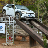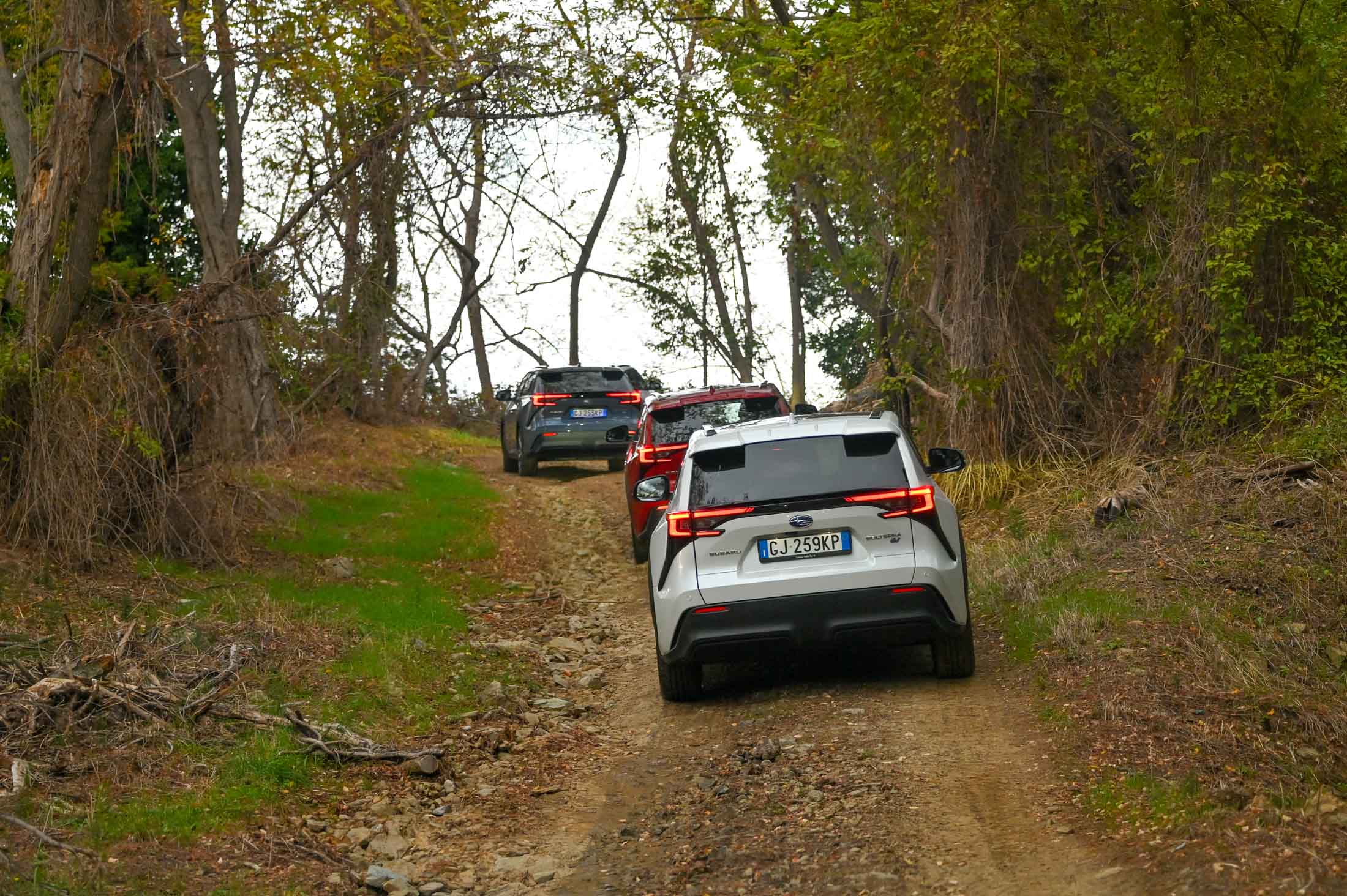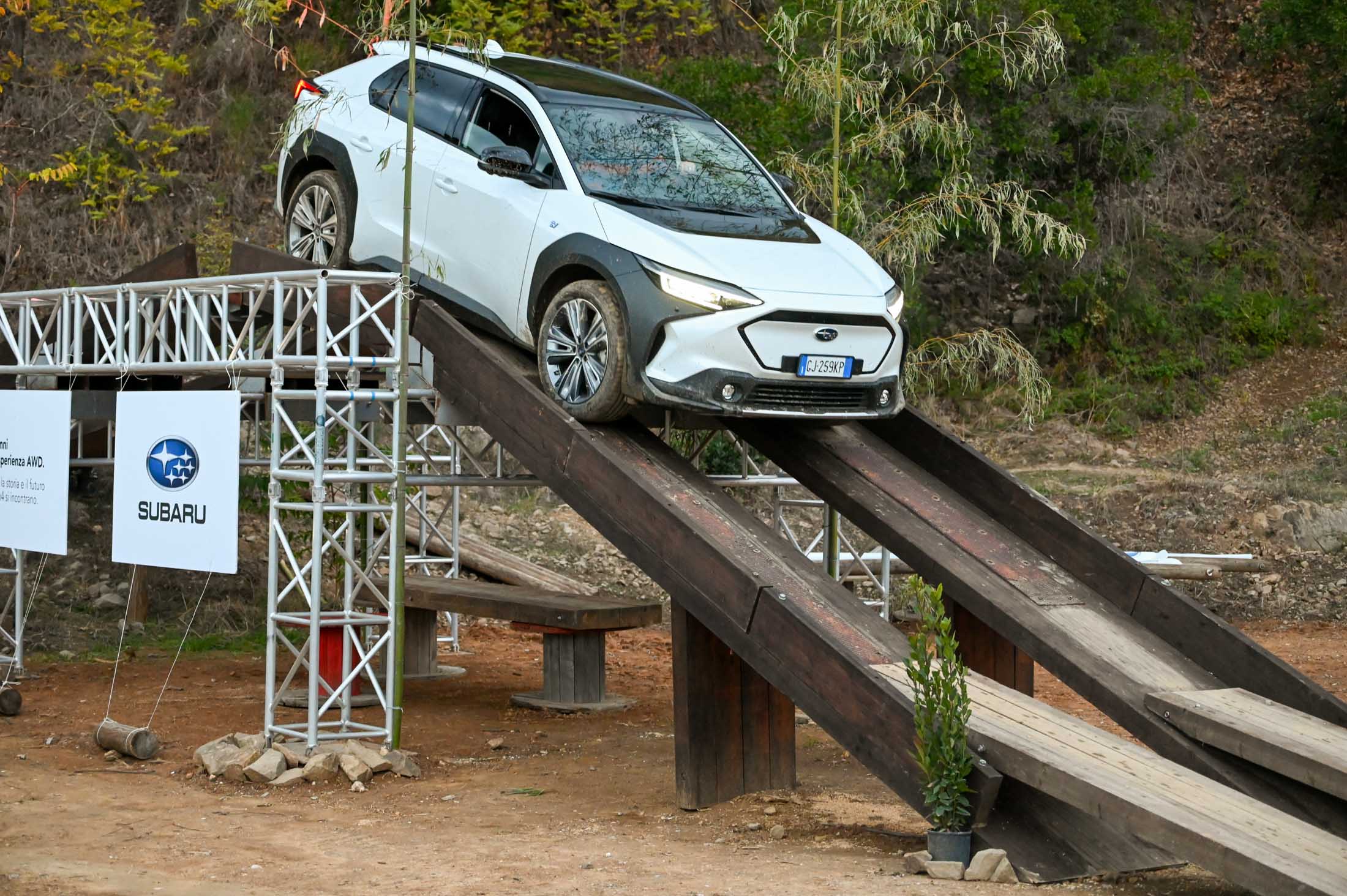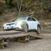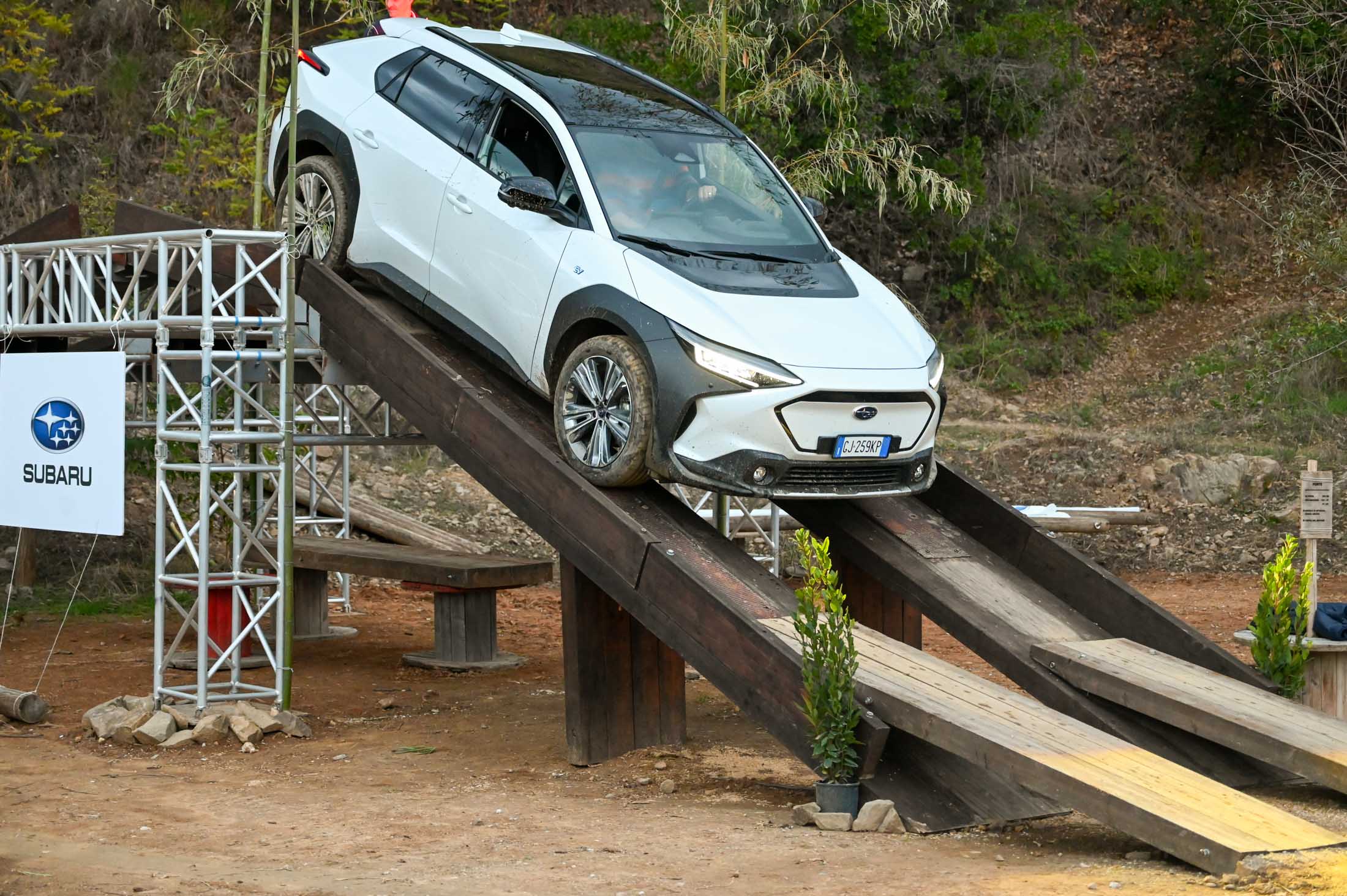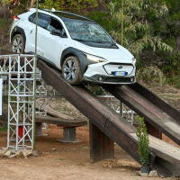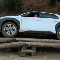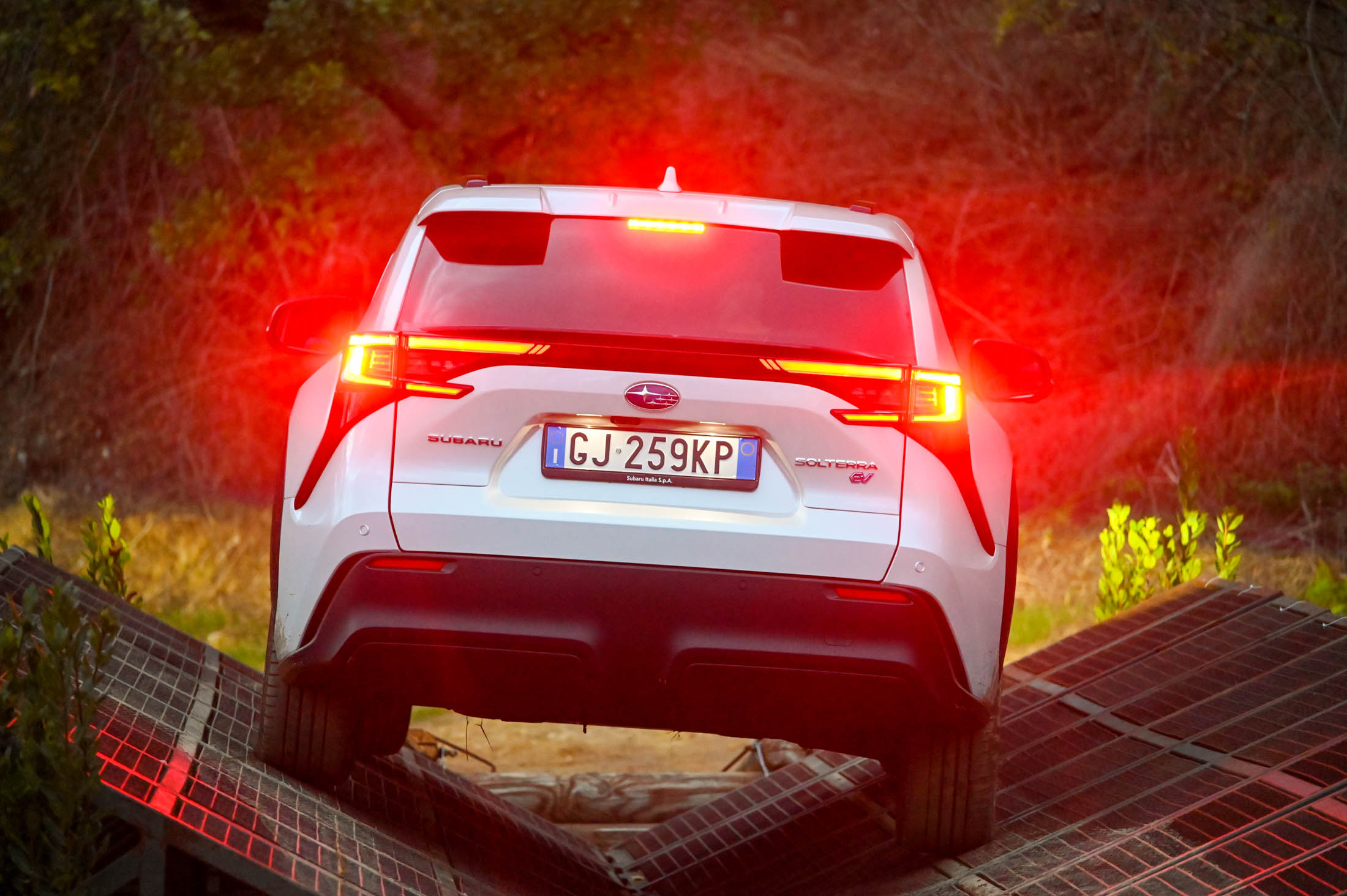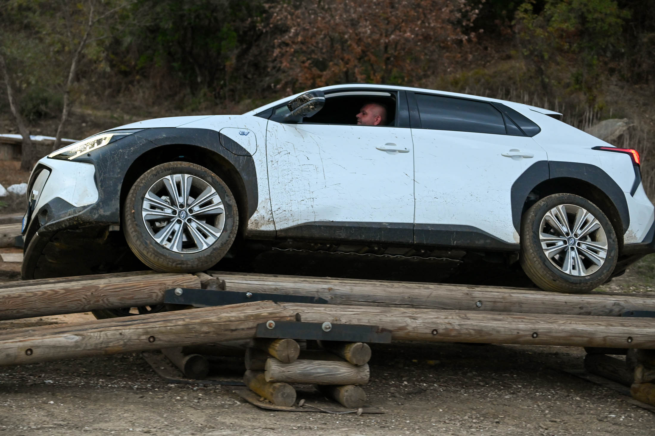 Glede na dejstvo, da z nobenim električnim avtomobilom doslej nismo prevozili tako zahtevnih tehničnih ovir in strmih blatnih grap, lahko zapišemo, da novi električni križanec res ni “le” toyota, ampak tudi pravi subaru. Solterra je na razmeroma zahtevnem poligonu Subarujeve vozniške akademije z znanim X-mode sistemom za nadzor oprijema v blatu, pesku, snegu in strmini brez težav zagotavljala oprijem in zanesljivo plezala preko tehničnih ovir, ki so vključevale tudi plazenje, pri katerih samo dve kolesi diagonalno spredaj in zadaj obdržita stik s podlago. Nadzorna enota odlično krmili oba električna motorja in brez mehanske povezave med prednjim ter zadnjim kolesnim parom suvereno poskrbi za simetrično razporejanje navora oziroma do 160 kilovatov moči. Zelo dobro so na terenu izkoristili tudi prednosti rekuperacijskega zaviranja, saj so avtu dodali stikalo, s katerim pri vklopljenem sistemu za spust po strmini voznik določa stopnjo pomoči pri zagotavljanju oprijema. Da ne gre za povsem običajen električni avtomobil, solterra dokazuje tudi s svojo terensko 21-centimetrsko oddaljenostjo od tal.