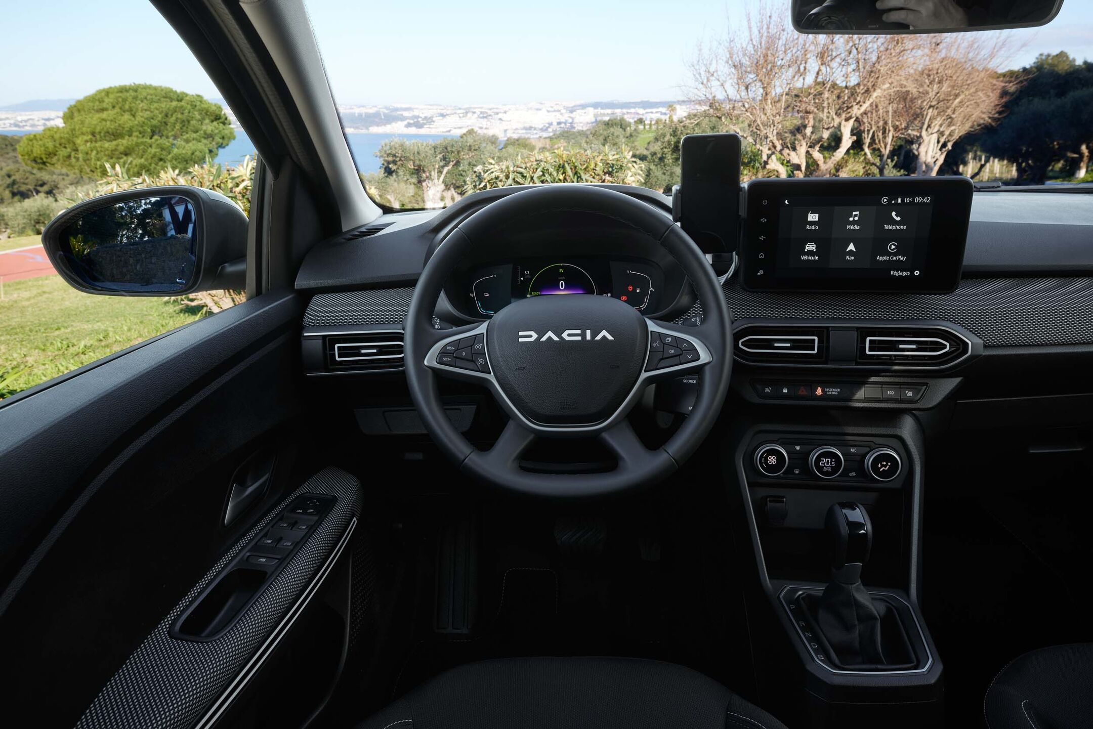 Ker je hibridni pogonski sklop nekaj težji od bencinskega, so morali Daciini inženirji na novo nastaviti vzmetenje in blaženje, a jogger je tudi v hibridni različici zadržal svoj lahkoten in mehak vozniški značaj: v ovinkih se občasdno še vedno preveč nagne, zato pa zelo dobro blaži cestne luknje in neravnine. Škoda, da Daciini inženirji nove različice niso izkoristili za to, da bi na novo uravnotežili in nastavili volanski mehanizem, ki je še naprej premalo natančen in odziven.