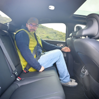 Pri tem je treba izpostaviti še eno zanimivo tehnološko rešitev: pri prednjem 74-kilovatnem električnem motorju v AWD različici so inženirji vgradili posebno sklopko, s katero motor povsem odklopijo od osi, kadar ni potrebe po štirikolesnem pogonu. S tem izničijo “naravni” upor sinhronega motorja s trajnimi magneti, kar prinese od 3- do 7-odstotni prihranek energije. Ta sklopka pri popuščenem plinu ali zaviranju poskrbi za hipni vklop, da tudi prednji kolesi energijo pojemka pretvarjata v elektriko.