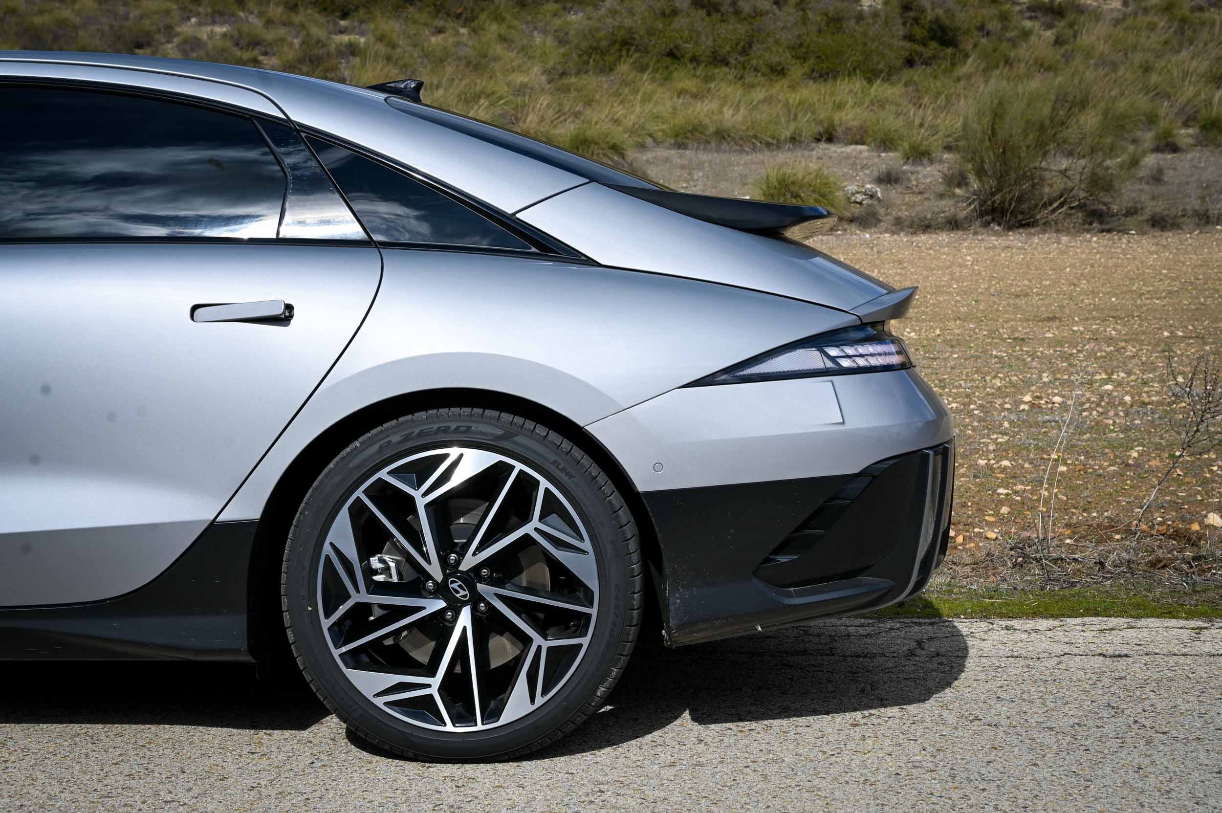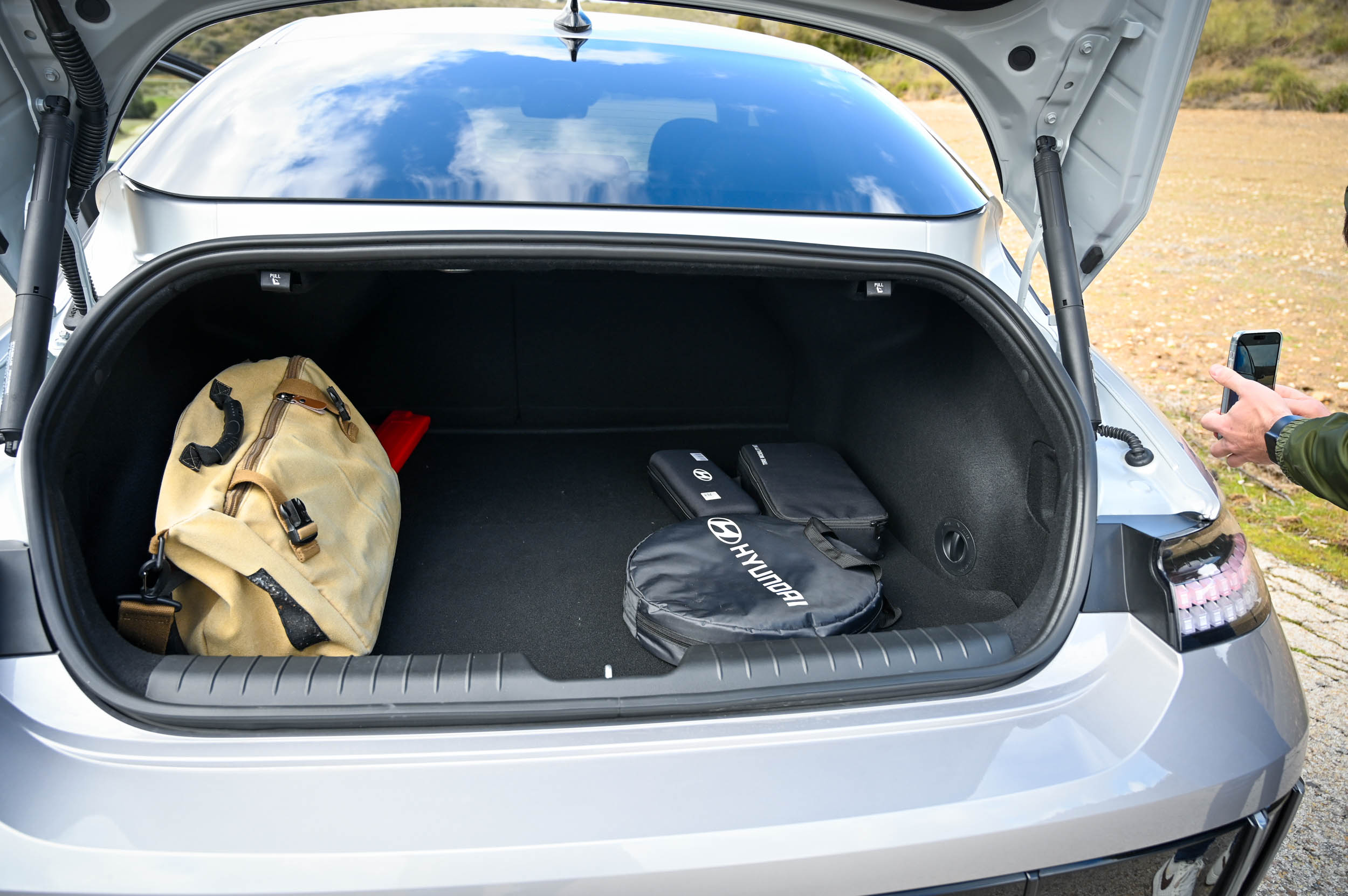 Oblikovno najbolj izstopa nizek zadnji del, ki ga krasi zračni usmerjevalnik, oblikovan v znameniti “ducktail” oziroma v obliko račjega repa, ki je značilen tudi za eno najprepoznavnejših avtomobilskih oblik - porscheja 911. So pa Korejci svoj račji rep oplemenitili s svetlobno površino in pod njega namestili prtljažna vrata. Davek atraktivne kupejevske oblike se pozna pri prtljažnih litrih: prostora ni tako malo - 405 litrov -, a dostop ni prav uporaben. To ni avto za “karavanske” tovore ali večje kose družinske športne opreme - tem potrebam bo kmalu postregel prihajajoči ioniq 7 - prvi Hyundaijev električni cestni terenec -, ki na ceste pripelje prihodnje leto.