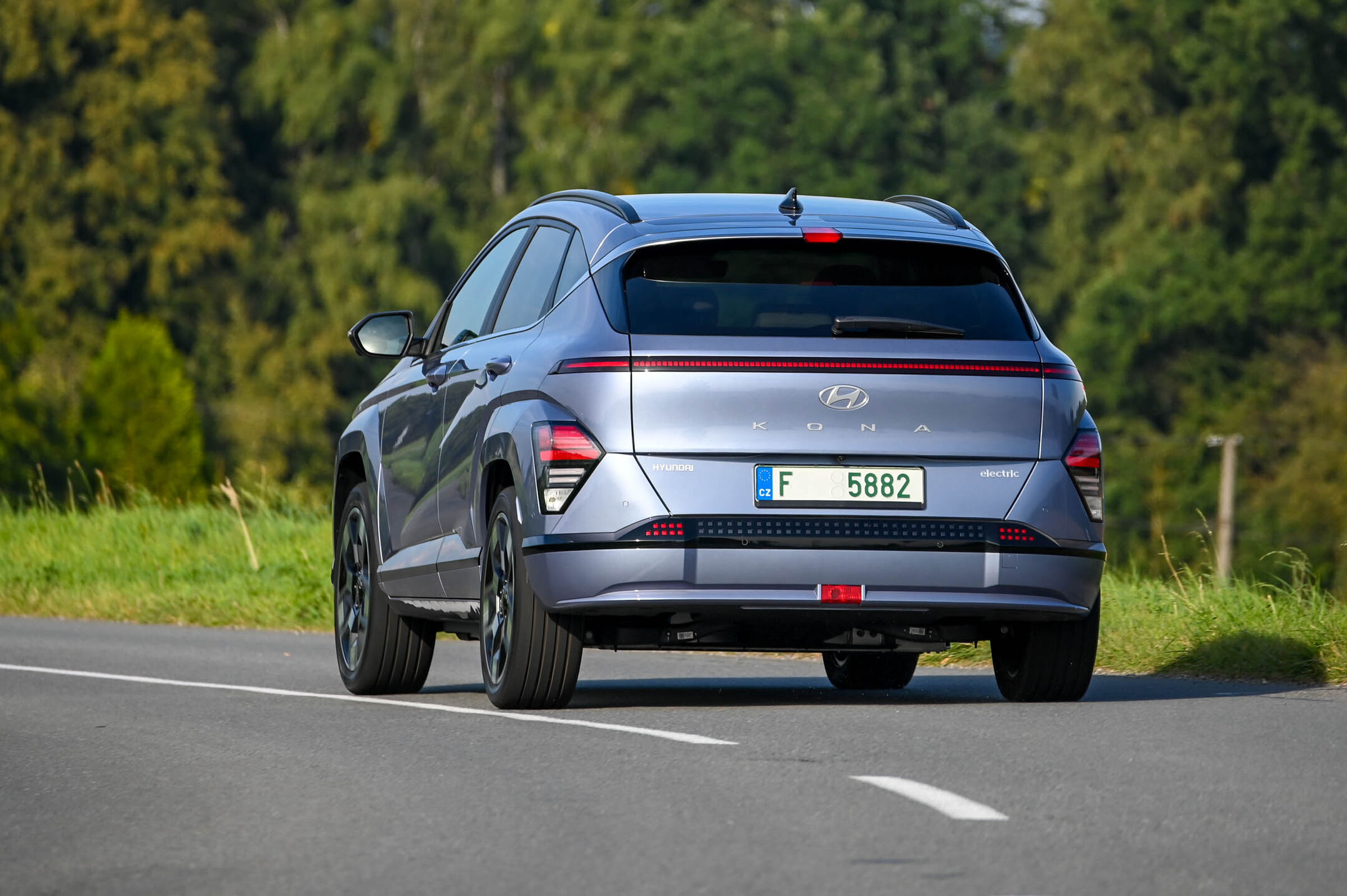 Kona se sicer zelo suvereno pelje čez ovinke, podvozje je zelo dobro uravnoteženo in vzmetenje lepo blaži cestne neravnine. Vožnja je izjemno nezahtevna in uglajena, udobje pa lepo dopolnijo dobra zvočna zatesnitev kabine in številni vozniški pomočniki. Avto med drugim spremlja voznikov pogled: če voznikov pogled postane odsoten ali voznik gleda vstran, kona opozori, da je treba gledati na cesto.