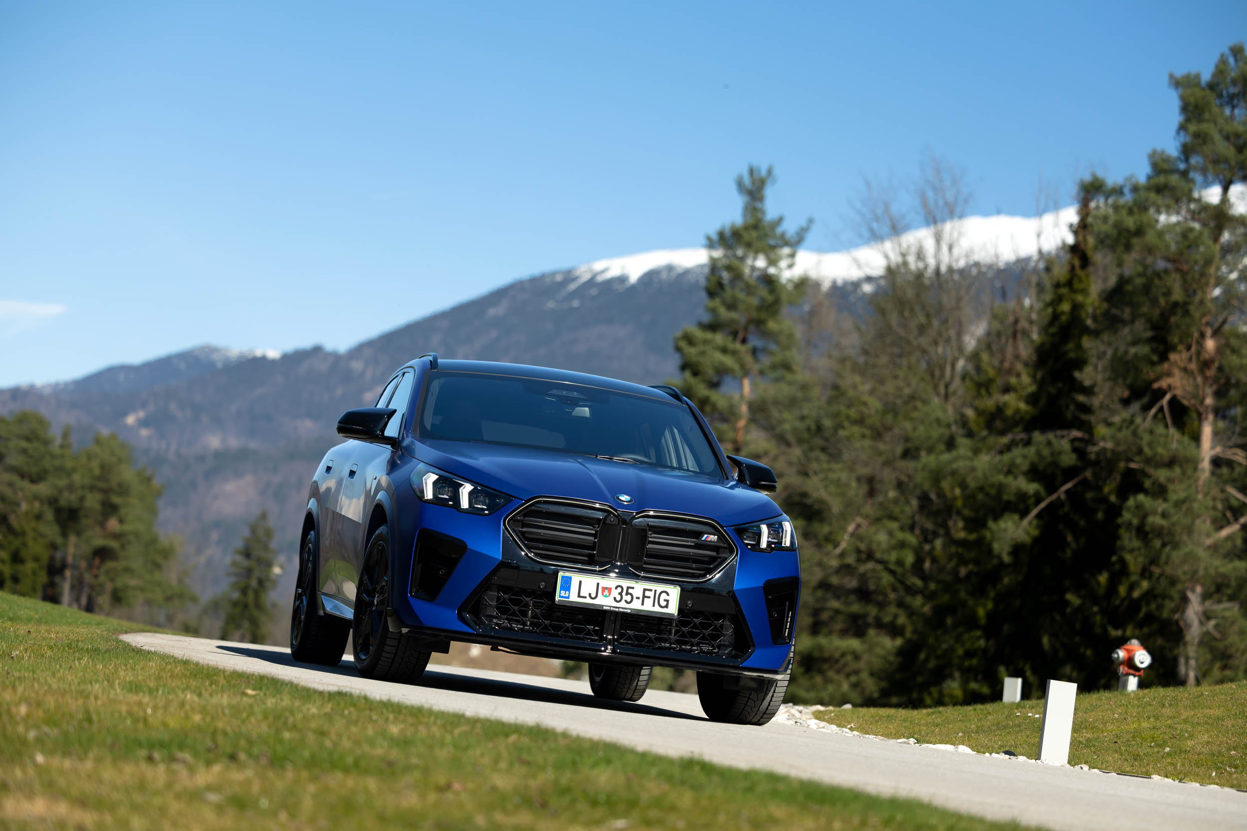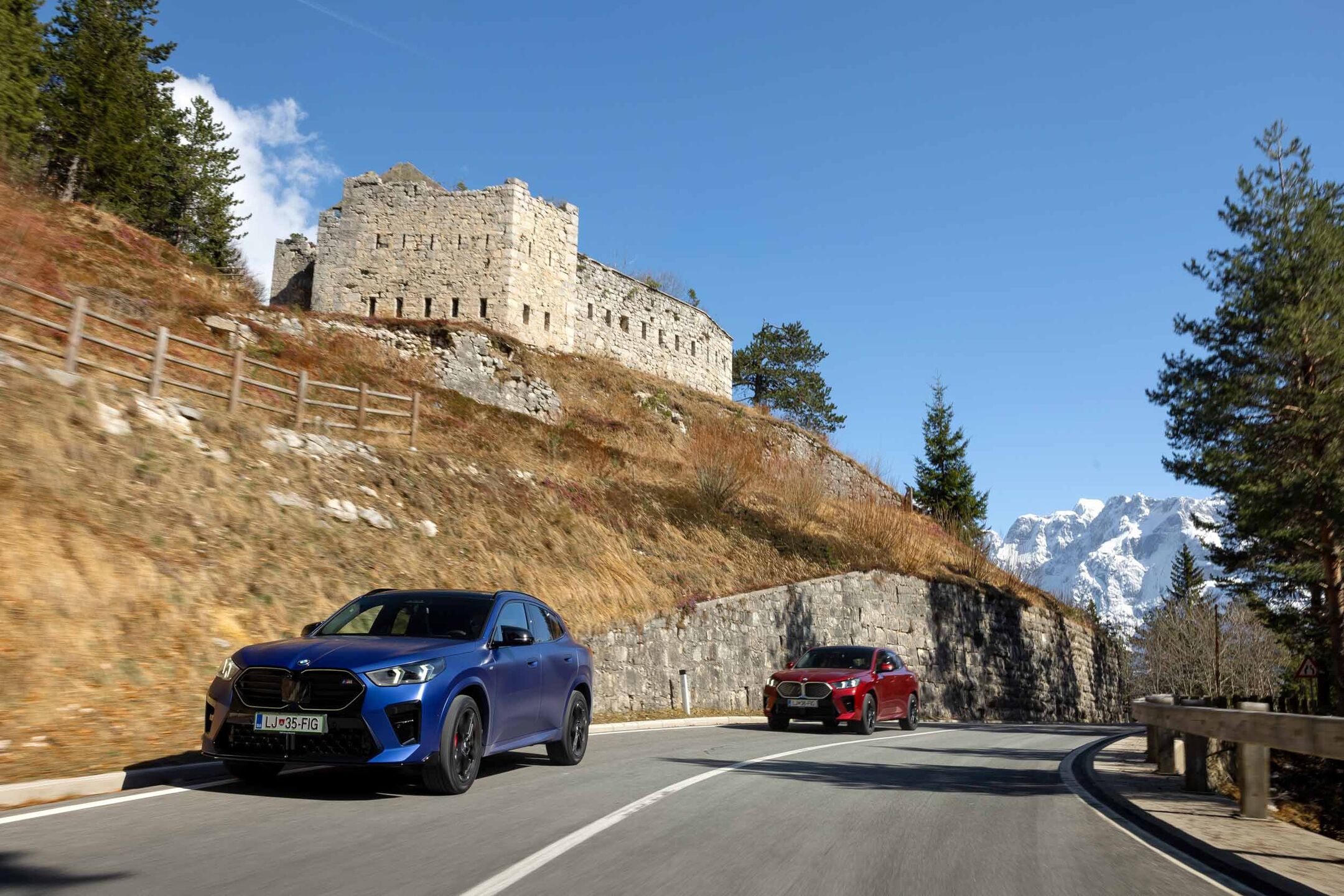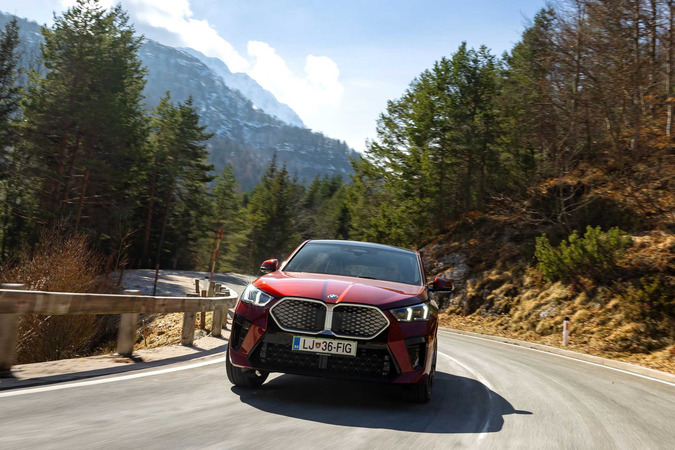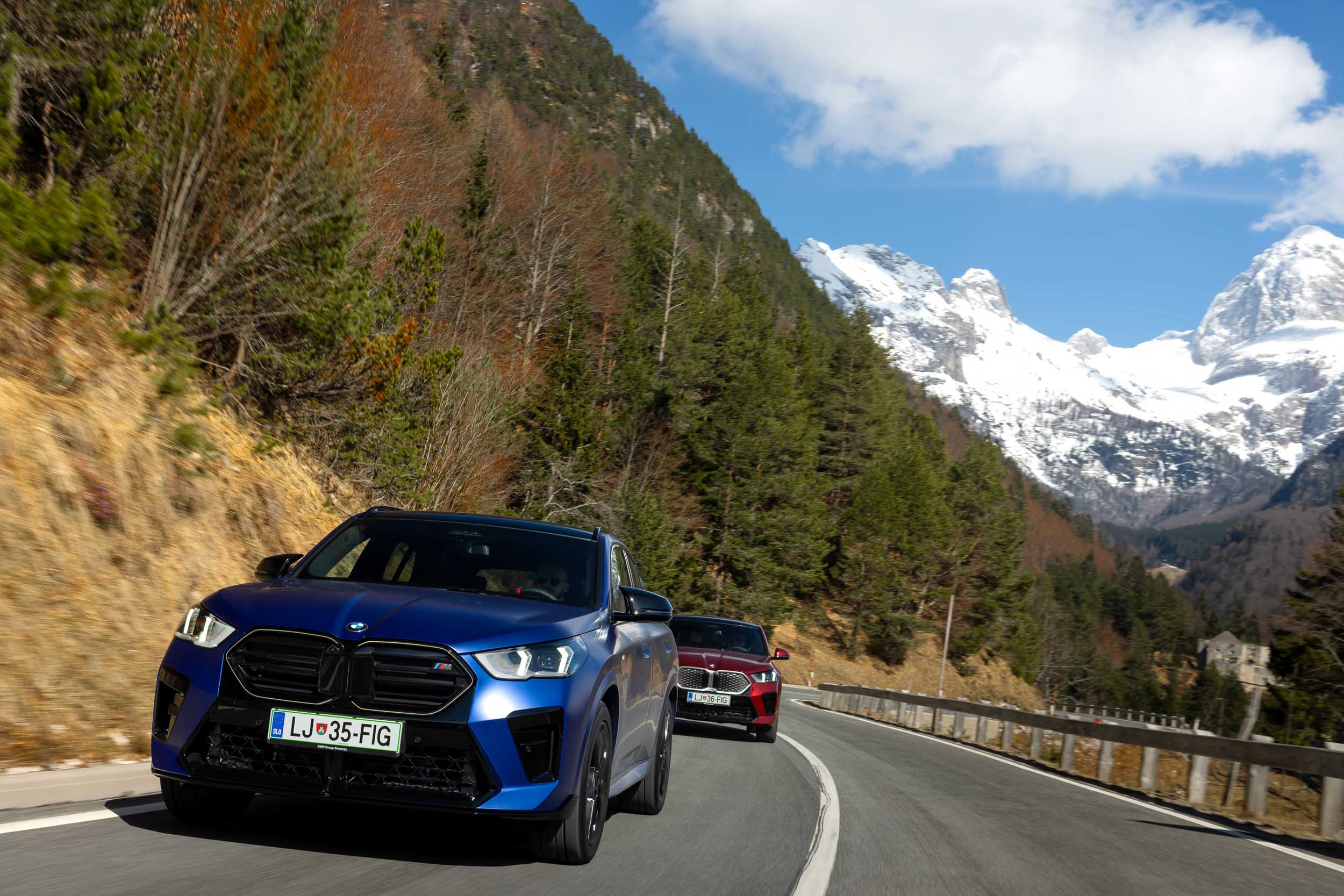 Oba smo preizkusili na čudoviti gorski cesti čez Predel in naprej po dolini Soče do Kanala ob Soči. X2 se pelje zelo natančno, brezhibno ohranja smer in se odlično drži ceste.