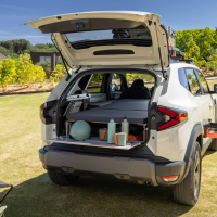 Daciini oblikovalci so nadgradili dusterjevo oblikovno podobo in ga še bolj približali novi “outdoor”filozofiji znamke, ki poudarja aktiven življenjski slogu v naravi. Tudi zato so mu po vzoru joggerja namenili lastno kamp opremo, ki vključuje integriran prtljažni boks, ki se ga preko položene zadnje klopi raztegne v letvasto 190 x 130 cm veliko ležišče. V njegovem podnožju je dodaten prostor za ostalo kamp opremo. Družinskim odpravam - na primer v Maroko - so namenili še močan strešni prtljažnik, ki omogoča 80 kg dinamične obremenitve strehe. Piko na i tovorno-bivalni logistiki dodaja vlečna moč 4x4 različice, ki za seboj lahko vleče do 1,5 tone težko prikolico - tudi bivalno za 4 osebe. Duster v kabini ponuja malce več prostora za kolena, boljše sedeže in primerno velik prtljažnik, ki ima glede na izbrano pogonsko različico od 430 do 517 litrov prostora.