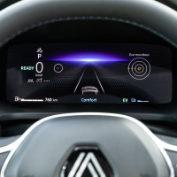 | Sedeži in obloge vrat so dobile novo blago, namesto usnja pa posebno zrnasto plastificirano tkanino - v skladu z Renaultovimi napovedmi, da do leta 2025 preneha uporabljati snovi živalskega izvora. |