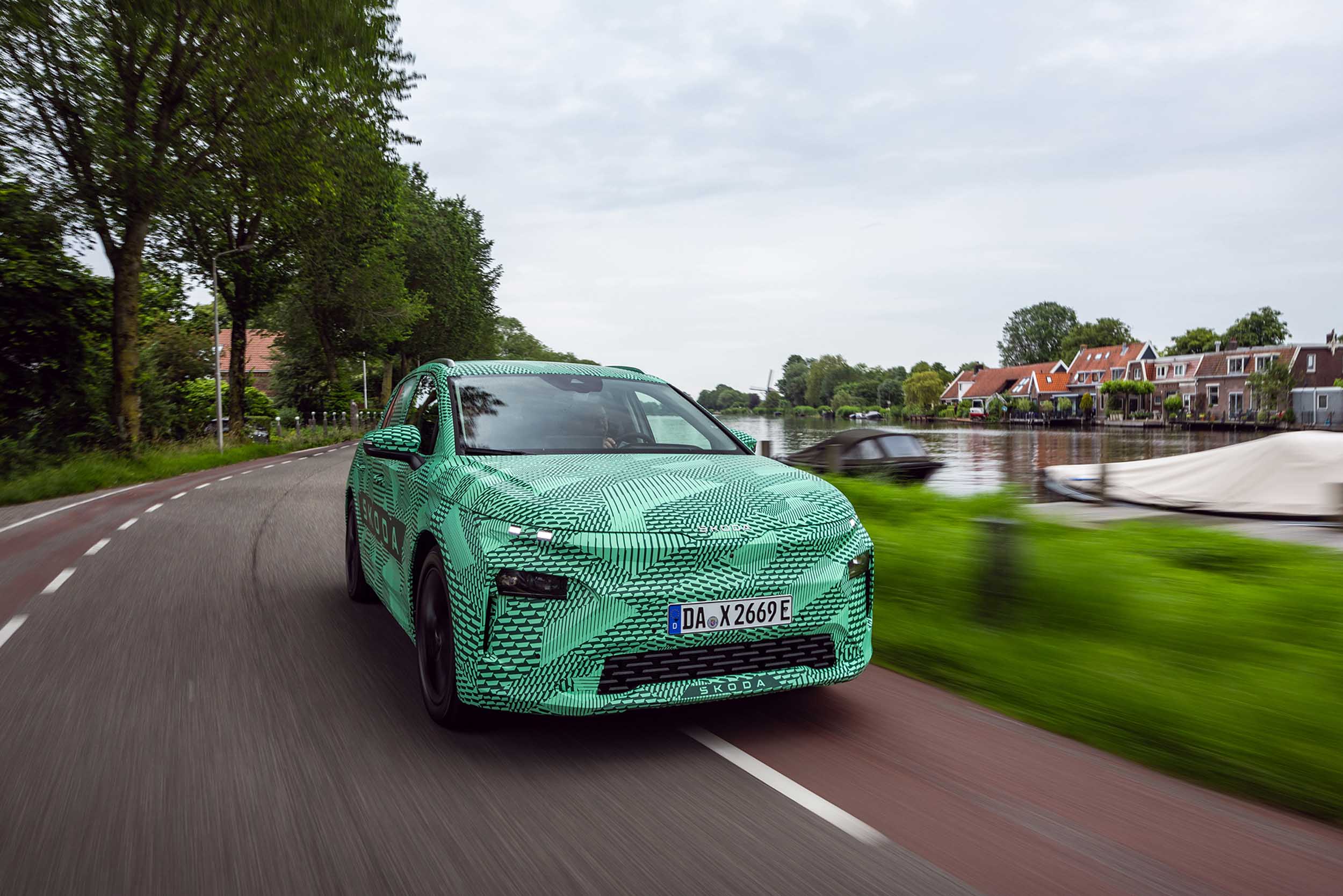 Nova električna škoda elroq, s katero smo se imeli priložnost zapeljati po Amsterdamu in njegovi okolici, je res še zakrita, a nekaj značajskih lastnosti se vendarle hitro opazi; gre za kompaktnega in ravno prav robustnega električnega križanca, ki bo v Škodini električni paleti zasedel prostor pod večjim enyaqom. Kam v Škodini modelni shemi pada elroq, izdaja že njegovo ime, ki je sestavljanka imen electric in karoq …