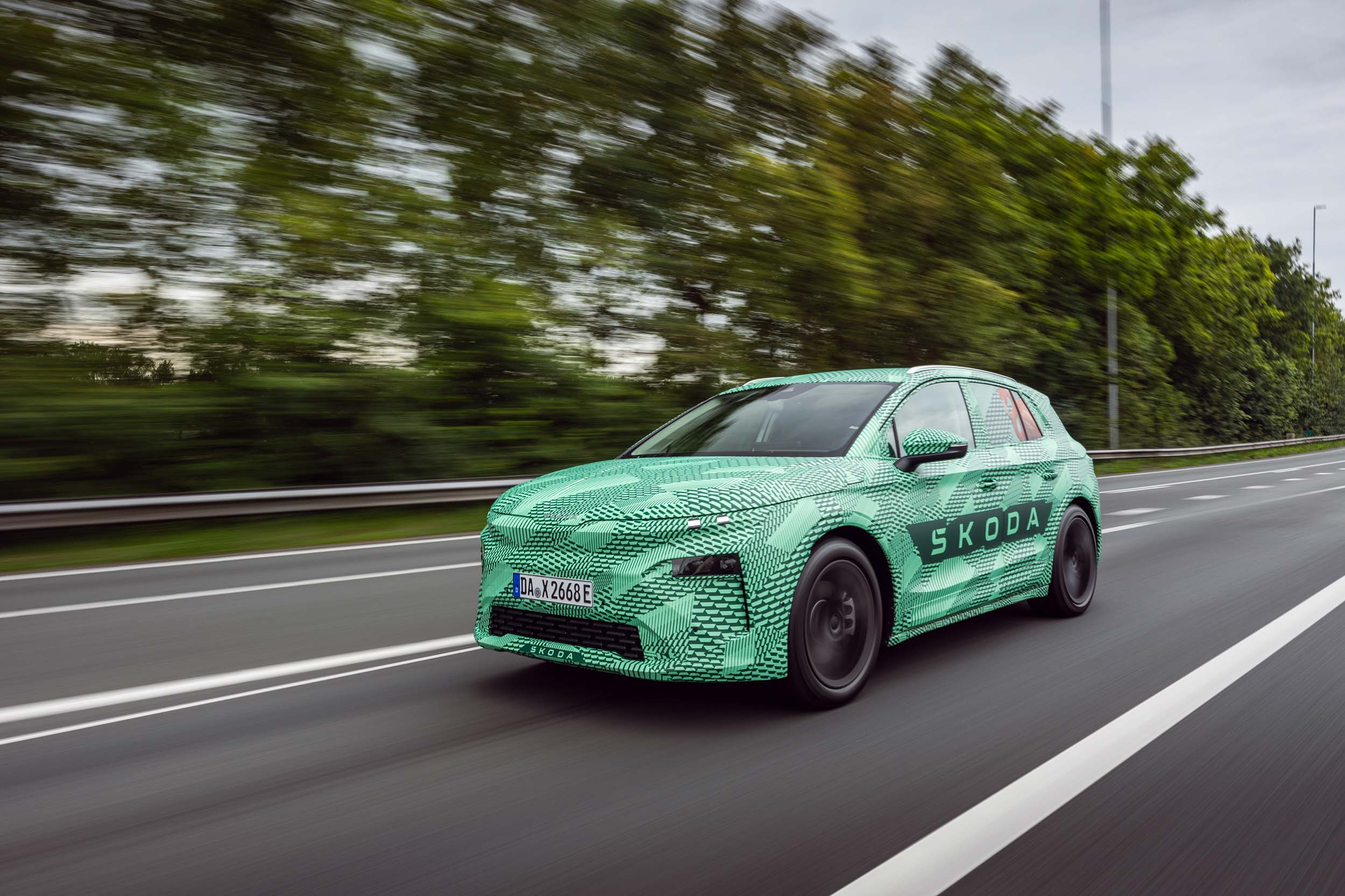Prvih nekaj kilometrov za volanom elroqa je potrdilo Škodine napovedi; motor v različici elroq 85, ki zmore 210 kW, se je na krstni testni vožnji izkazal s porabo energije 14 kWh/100 km, kar omogoča realnih 550 kilometrov dosega z enim polnjenjem. Motor je seveda zelo odziven, podajanje moči je zelo linearno, pospeški pa zelo dobri. Najvišja hitrost je pri tej različici omejena na 180 km/h, pri šibkejših različicah pa na 160 km/h. Vse različice elroqa imajo pogon na zadnji kolesi, najmočnejša pa za doplačilo tudi na vsa štiri kolesa.