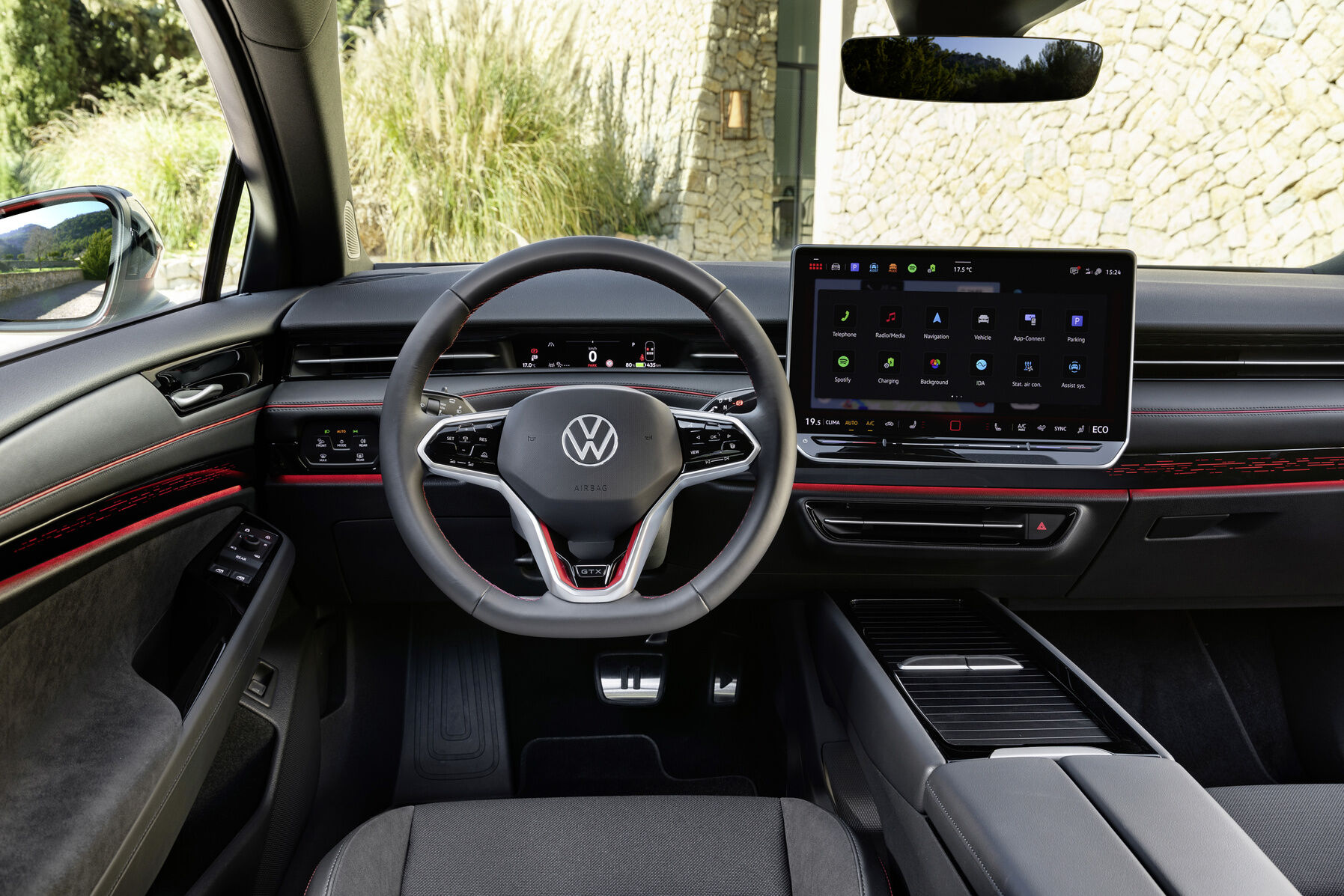 Bolj kot GTX nas je tokrat za volanom prepričal eleganten, udoben in pameten ID.7 tourer pro, ki predstavlja vse, kar od tako prostornega in kakovostno izdelanega električnega potovalnika voznik lahko pričakuje. Z njim je bilo tiho križarjenje preko čudovite pokrajine prav pomirjujoče. Avto ponuja izjemno dobro zvočno zatesnjenost, vrhunske materiale, odlične ogrevane in prezračevane masažne sedeže, popolno varnostno opremo in vse sodobne komunikacijske storitve, podprte z integriranim glasovnim vmesnikom ChatGPT. Ta ponuja vsebinsko pomoč umetne inteligence pri iskanju navigacijskih ciljev in drugih podatkov, povezanim z vožnjo, prometom, vremenom in deželo, po kateri avto potuje. Velik 15-palčni zaslon poleg ostre ločljivosti in spodobne odzivnosti po novem ponuja še natančno nastavitev vseh prametrov udobja, povezanega s tripdročno samodejno klimatsko napravo. Za piko na i pa ID.7 tako kot Teslini modeli ponuja celo videoigre, krmiljene s pametnega telefona, da večjim in manjši otrokom na polnilnih postajah ni dolgčas.