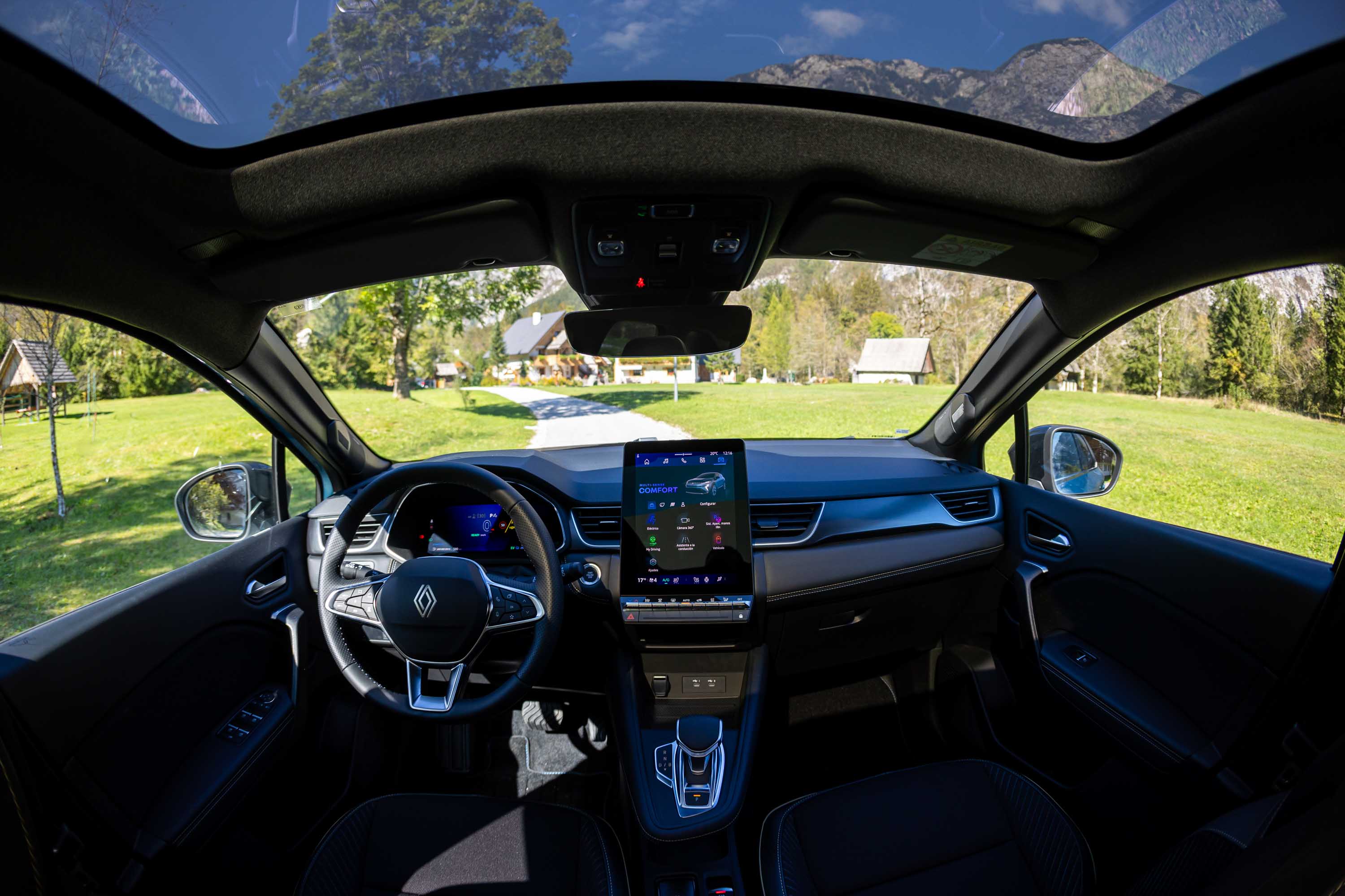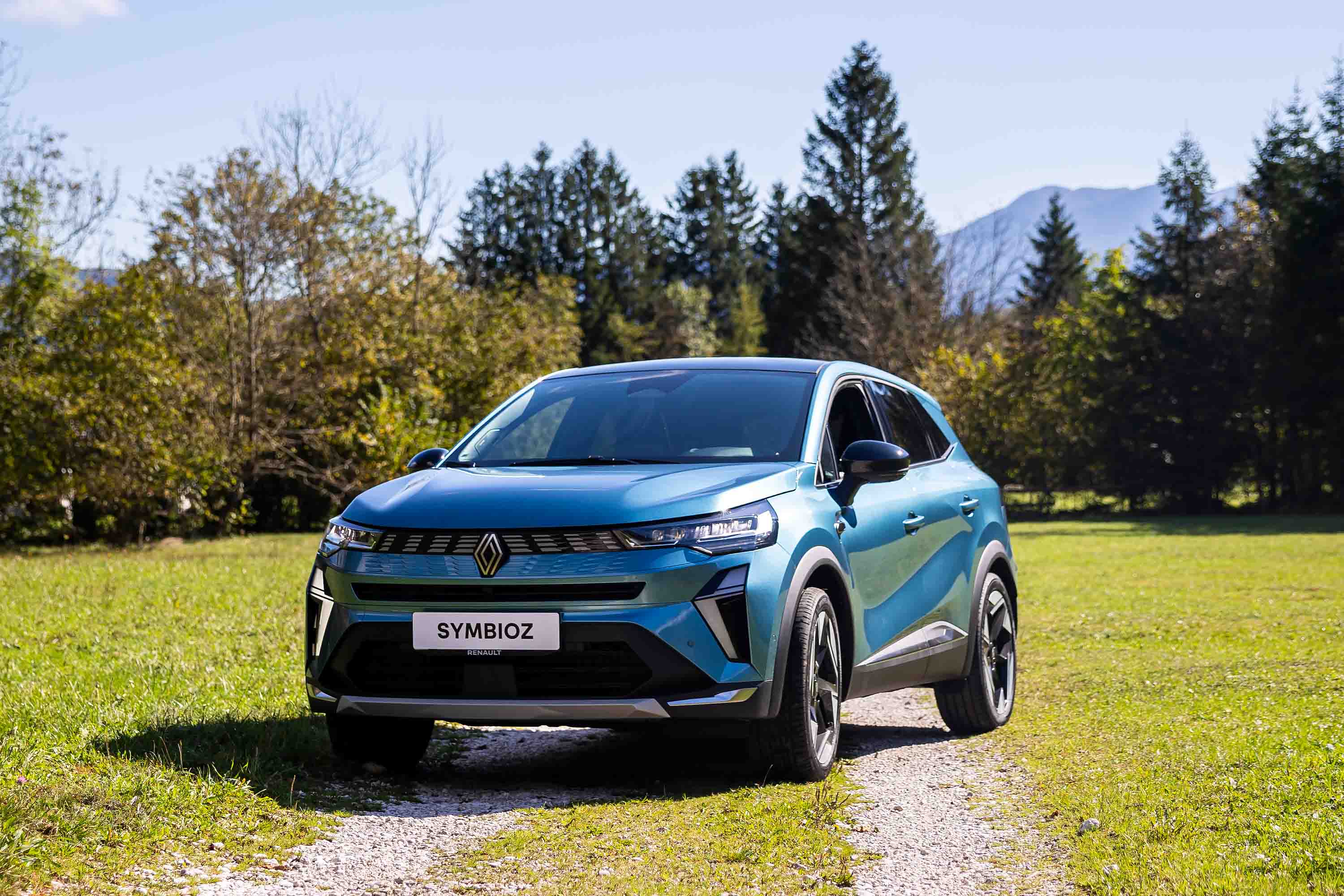 Symbioz je ob začetku prodaje na voljo le z Renaultovim uveljavljenim hibridnim pogonskim sistemom e-tech full hybrid, ki ga sestavljajo 1,6-litrski bencinski štirivaljnik, električni motor in generator, ki z rekuperacijo obnavlja zalogo elektrike v litij-ionskem akumulatorskem sklopu zmogljivosti 1,2 kWh. Vse skupaj združuje multimodalni menjalnik in upravlja krmilnik; sistemska moč je 105 kW, tako kot pri capturju pa tudi pri symbiozu Renault obljublja velik del prevoženih kilometrov zgolj na elektriko in s tem majhno porabo goriva. Na naši krstni vožnjo po španskih cestah se je poraba goriva ob visokih hitrostnih povprečjih gibala med 5 in 6 l/100 km oziroma zelo podobno kot pri malce manjšem capturju.